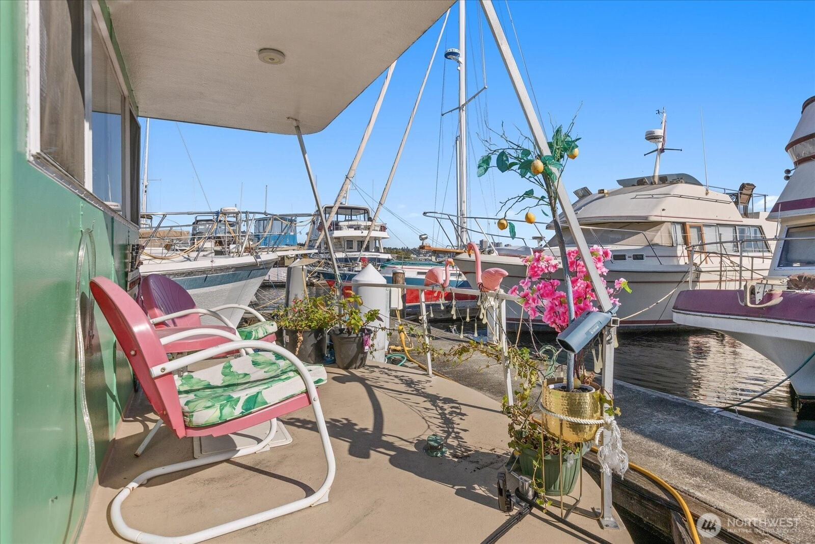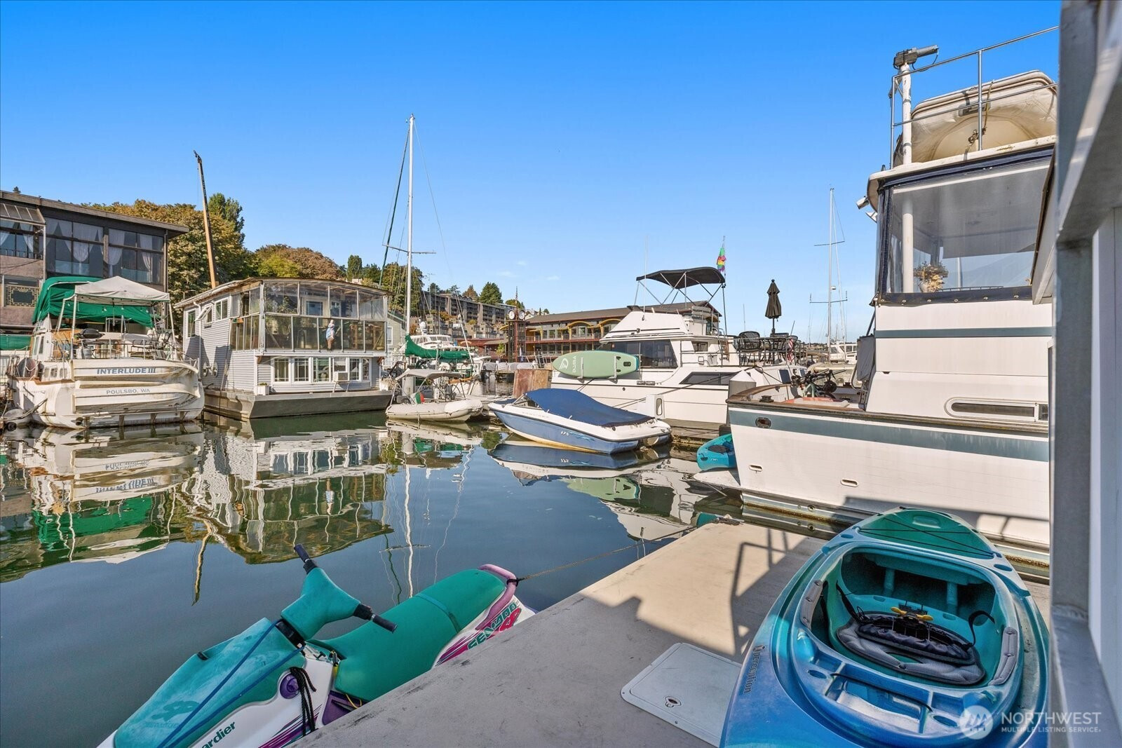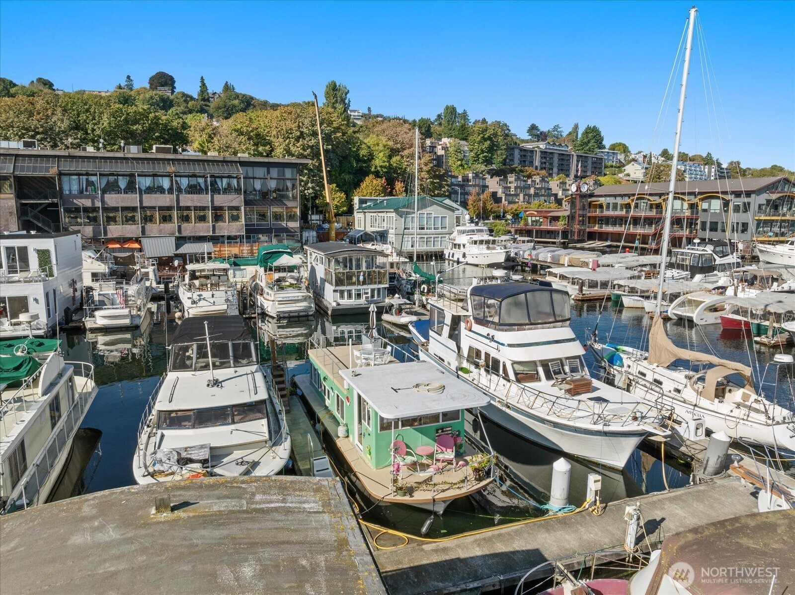 Welcome to Cubana! Completely-remodeled fully-furnished houseboat w/ every amenity & loads of natural light. All decks resurfaced recently. Enter to a lofted seating area w/ Lake & City views leading to the fully-updated kitchen w/ dining space & cozy fireplace. New efficient appliances, countertops & flooring. Bright bedroom includes new ensuite laundry & full bath w/ tasteful marble-finish & soaking tub. Plenty of outdoor space--2 lower decks & a full roof deck, all new fiberglass w/ wide views of Lake Union, Gasworks & Downtown. BG Trail outside your door takes you to 7 neighborhoods as well as many large employers. Moorage includes W/G. Easy parking. Hauled-out & bottom-painted recently. Pets & Rentals allowed, FOWR 715