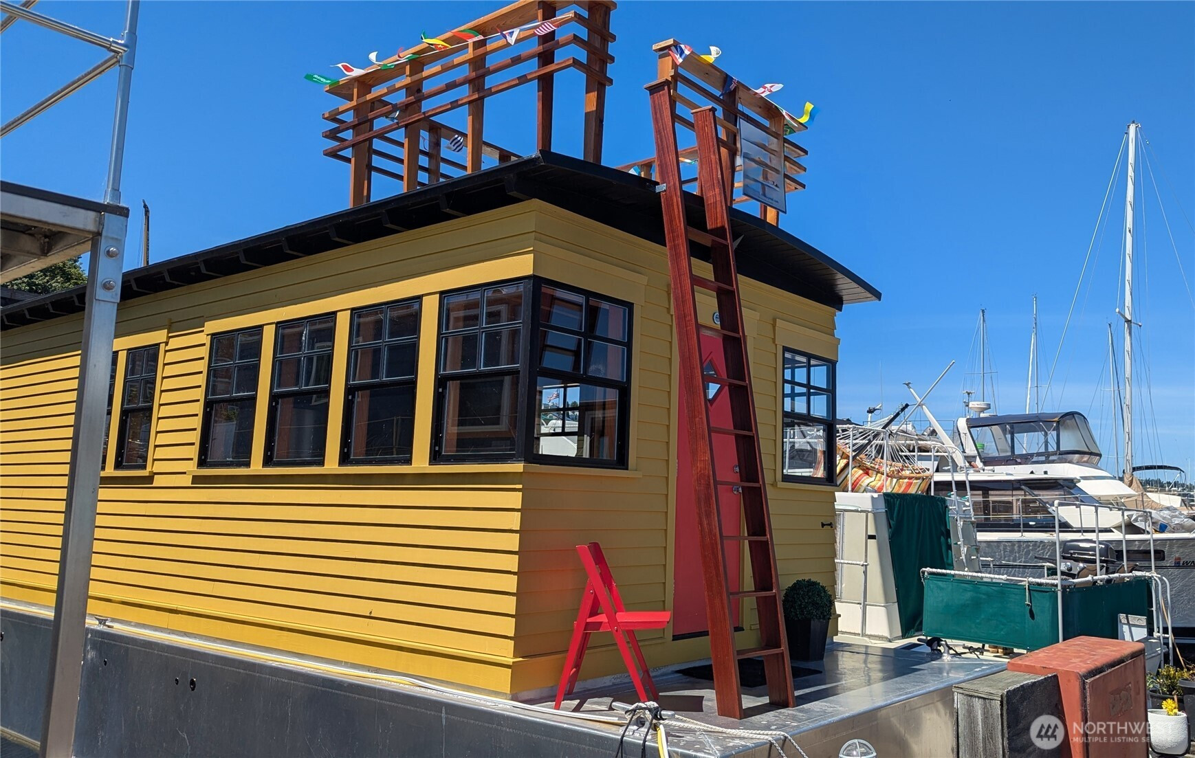 Welcome to Flightline, registered FOWR #882. New construction w/ exceptional finish work--signature coved fir ceilings, solid mahogany walls, fir floors & a surprising 4' basement in your new aluminum hull. Excellent central location on Westlake Ave close to amenities & employers in SLU. Tons of natural light welcome you to the living room w/ views of Lake Union, all new full-sized appliances, built-in galley seating & hand-pounded steel countertops. Move onto the full bath w/ soaking tub & inlaid marmoleum entry, then to the bedroom that fits a Queen & access to the basement level that is 40x12 of excellent storage or active space. Plenty of room for your accessory boat behind, & don't forget to enjoy the 360 view from your new roofdeck!