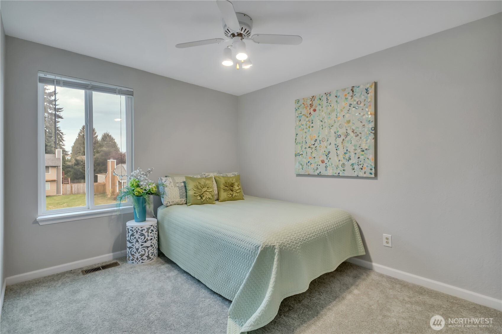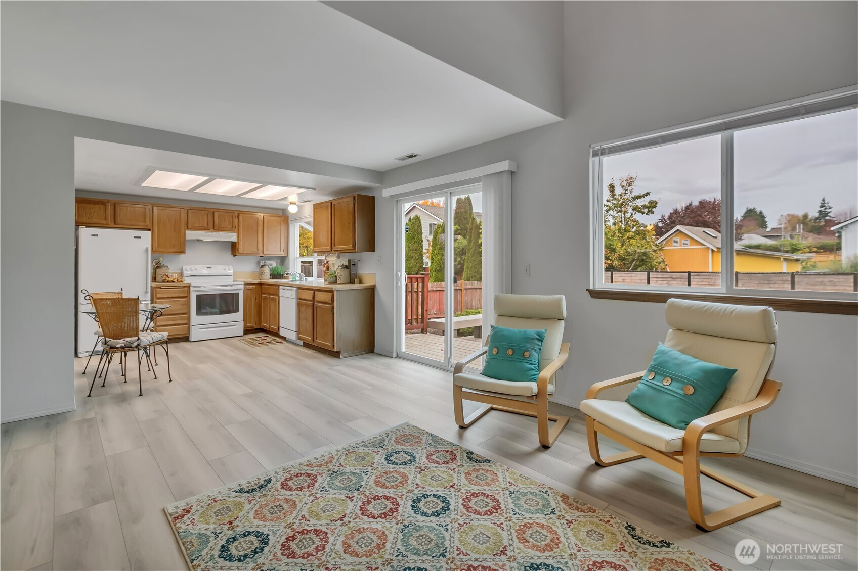 Welcome home to this charming 3-bed, 2.5-bath two-story in a peaceful Kent neighborhood! New gas furnace, fresh interior paint and new flooring throughout welcome you into a traditional floorplan offering a living and dining room, plus a family room with eating space. The open staircase leads to a light-filled second floor with an oversized primary bedroom with walk-in closet, plus two additional bedrooms. Enjoy 1,620 sq ft of comfortable living, a welcoming front porch, spacious back deck with built-in seating, and a level backyard—offering plenty of room and perhaps add an ADU or two. RV parking and no HOA. Minutes to shopping, dining, schools, and Hwy 167 for an easy commute. A wonderful blend of comfort, location, and room to thrive!