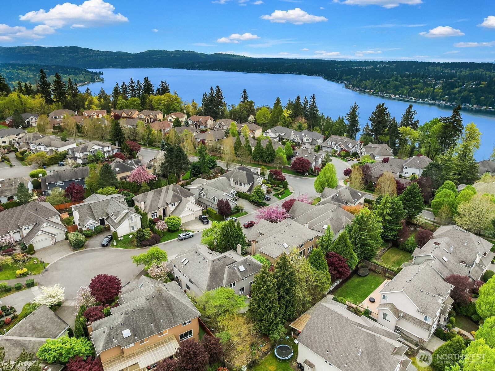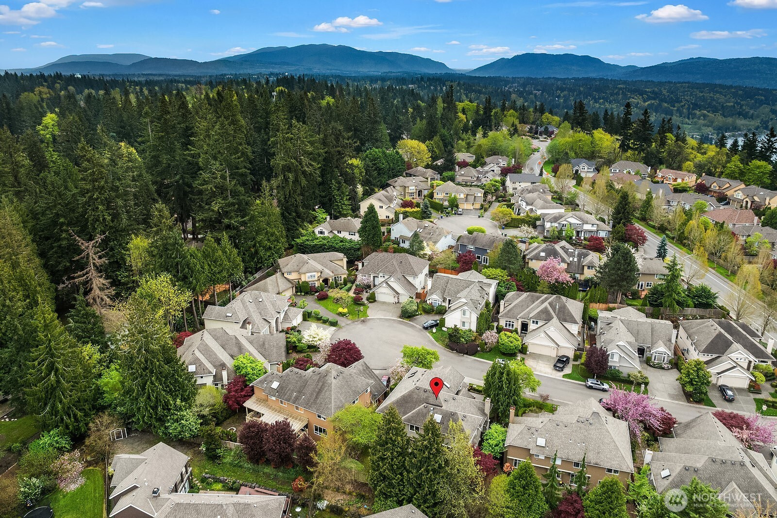 Beautiful turn key Chaffey home on a cul-de-sac in the sought after Sterling Woods community of Timberline. Featuring 4 bedrooms and 2.75 baths, this thoughtfully designed floor plan blends comfort and functionality. Vaulted ceiling and updated light fixtures create an inviting first impression while rich hardwoods span the main level and enhance the open living spaces. Living and family rooms offer surround sound hook up and seamless gathering areas for everyday living and entertaining. The kitchen showcases granite and slate counters, walk in pantry, wine storage, and abundant cabinetry. A main level bedroom with private access to a three quarter bath offers ideal flexibility for guests. The massive primary suite features a spacious bedroom, sitting area with dual sided fireplace, luxurious five piece bath with skylights, dual vanities, soaking tub, separate shower, and California Closets. Upper level also features a large bonus room with wall of windows, two additional bedrooms, and full hall bath. Dual furnaces and central AC provide year round comfort. Fully fenced backyard with patio and irrigation offers privacy for relaxing or entertaining. Pre-inspected for peace of mind. Walking distance to an award-winning elementary school and close to community parks, sports courts and trails. Award winning Lake WA schools.