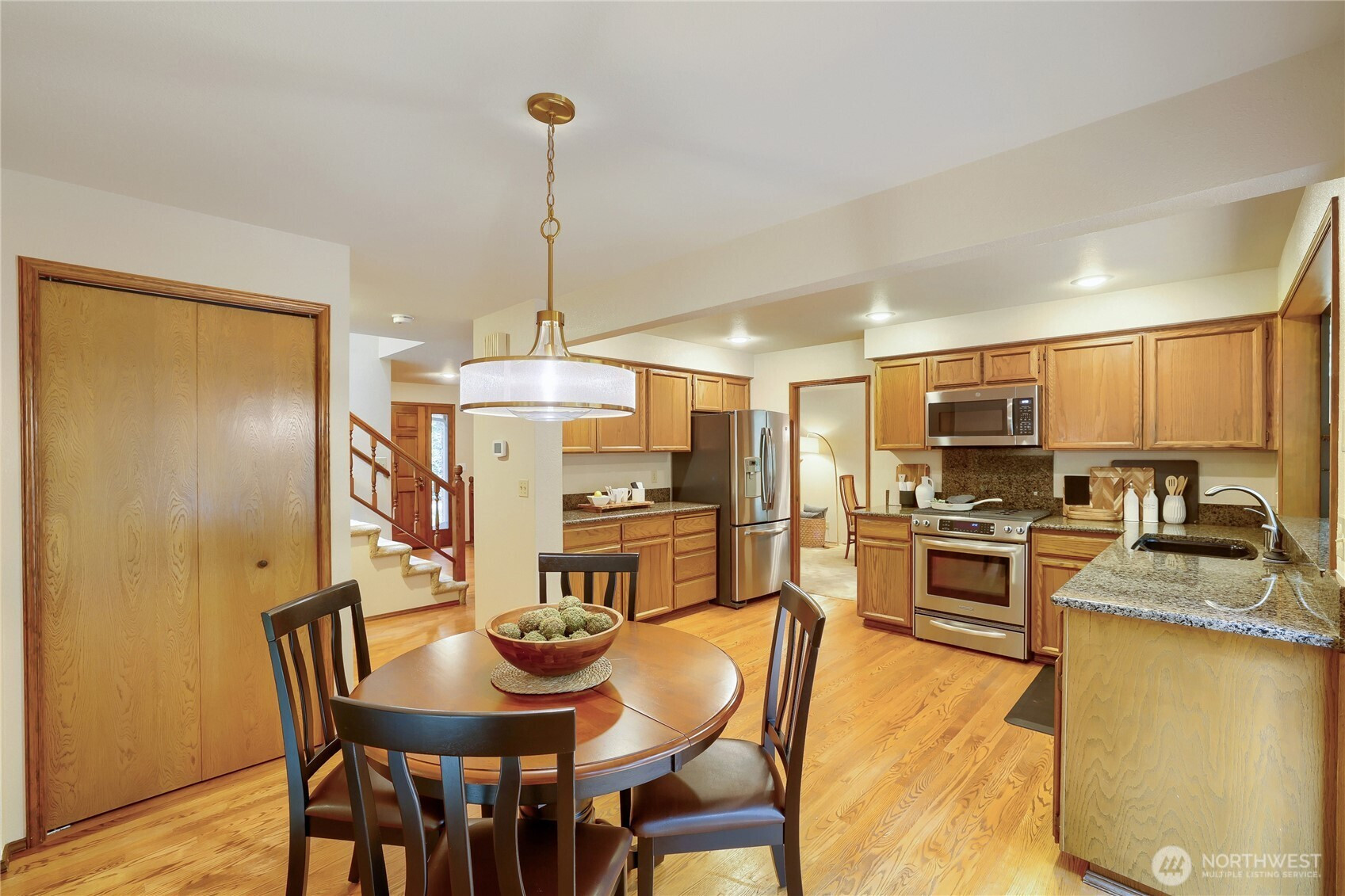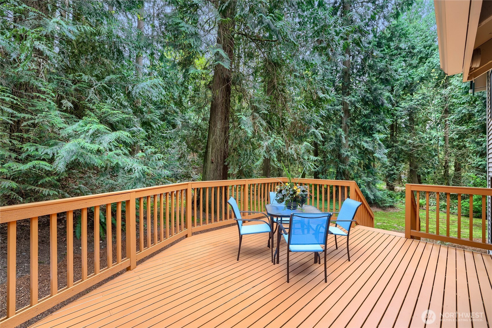 Situated on a quiet dead end street in the highly sought after neighborhood of Kelsey Estates, this very nice multi level, 4 bedroom 2.5 bath home sits on a 35,000+ sqft lot, all just a short distance to the Redmond tech hubs, shopping and the new light rail station. Large open kitchen with granite counters. Nook open to family room with gas fireplace. Big private deck off nook overlooking the tranquil backyard perfect for entertaining or enjoying a quit dinner and relaxing. Formal living room with gas fireplace, dining room. Vaulted ceilings await you in the primary bedroom with 5 fixture bath and and nice closet space. 3 other good sized rooms. Extra wide hallways and stairs. Big 3 car garage. Extra covered parking space next to garage. Front yard paver patio is perfect for evening relaxing and chatting or just sitting and reading a book. Home is in great shape as owners always kept the maintenance up. 35K sqft lot gives you a lot of privacy. Fantastic Lake Washington Schools close by. Pre inspection report available after showing