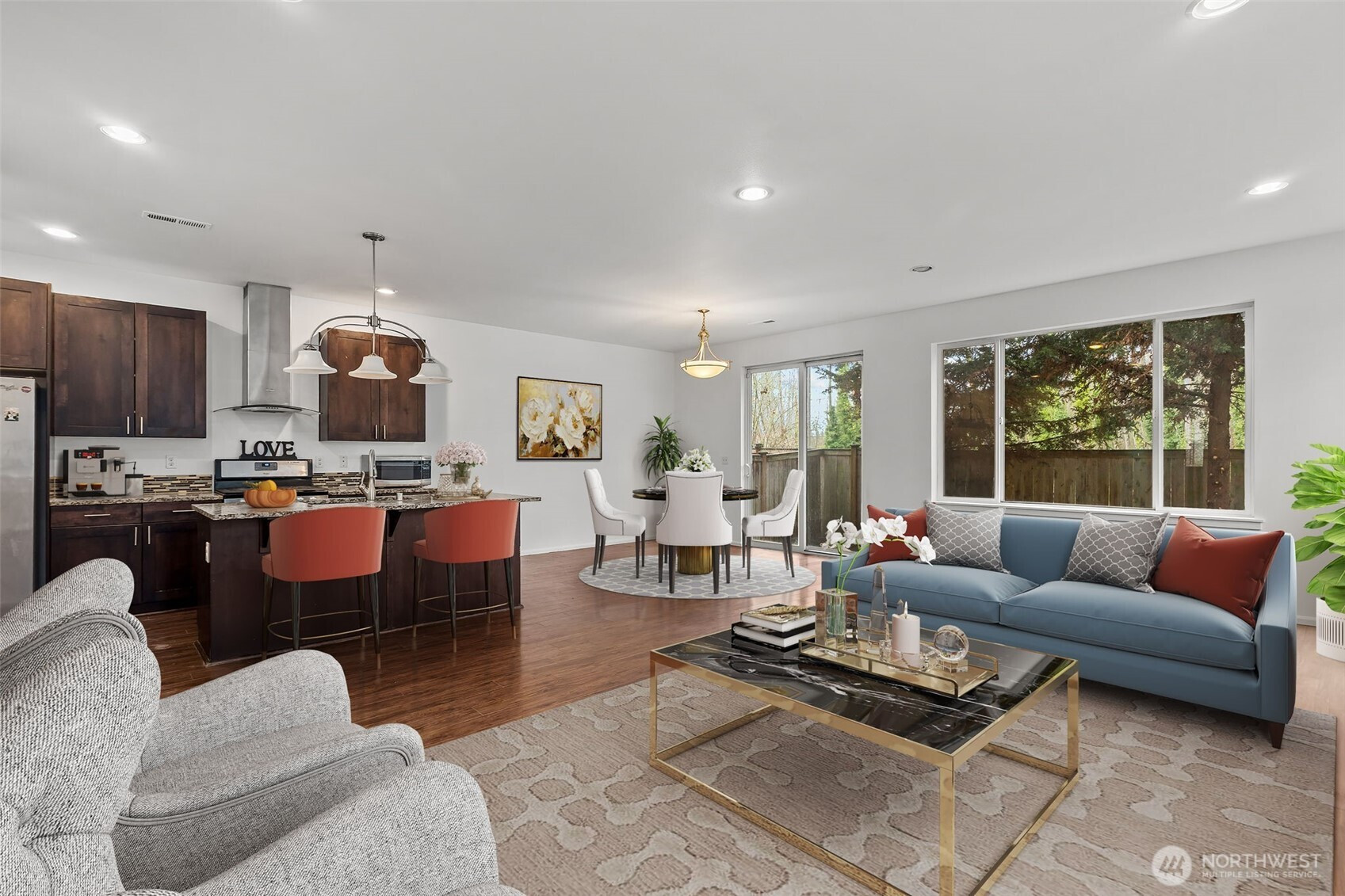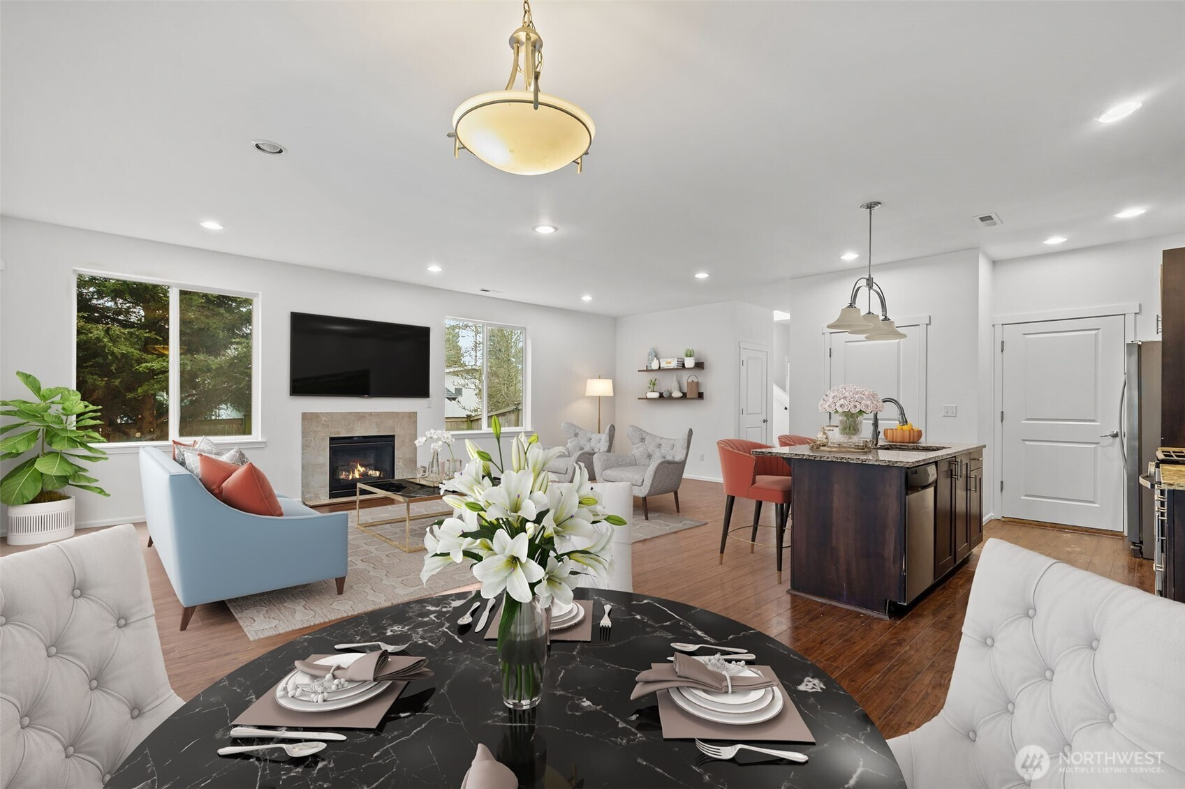 Great 4-bedroom home in Des Moines! Modern 2-story townhome featuring brand new carpet and fresh interior paint throughout, open and airy with abundant natural light streaming through oversized double-pane windows. The open-concept floor plan features a beautifully appointed kitchen with granite countertops, mosaic tile backsplash, stainless steel appliances, glass hood vent, and soft-close cabinetry.Step outside to a fully fenced backyard—perfect for entertaining, pets, or play—attached 1-car garage, plus plenty of guest parking out front. Unbeatable HOA at just $65/month—covers front lawn care.Exceptional location close to Redondo Beach, Des Moines Marina, with convenient access to Sea-Tac Airport, shopping, dining, I-5, and the light rail—making daily commutes and weekend outings a breeze. Comfort, connectivity, and convenience all in one.