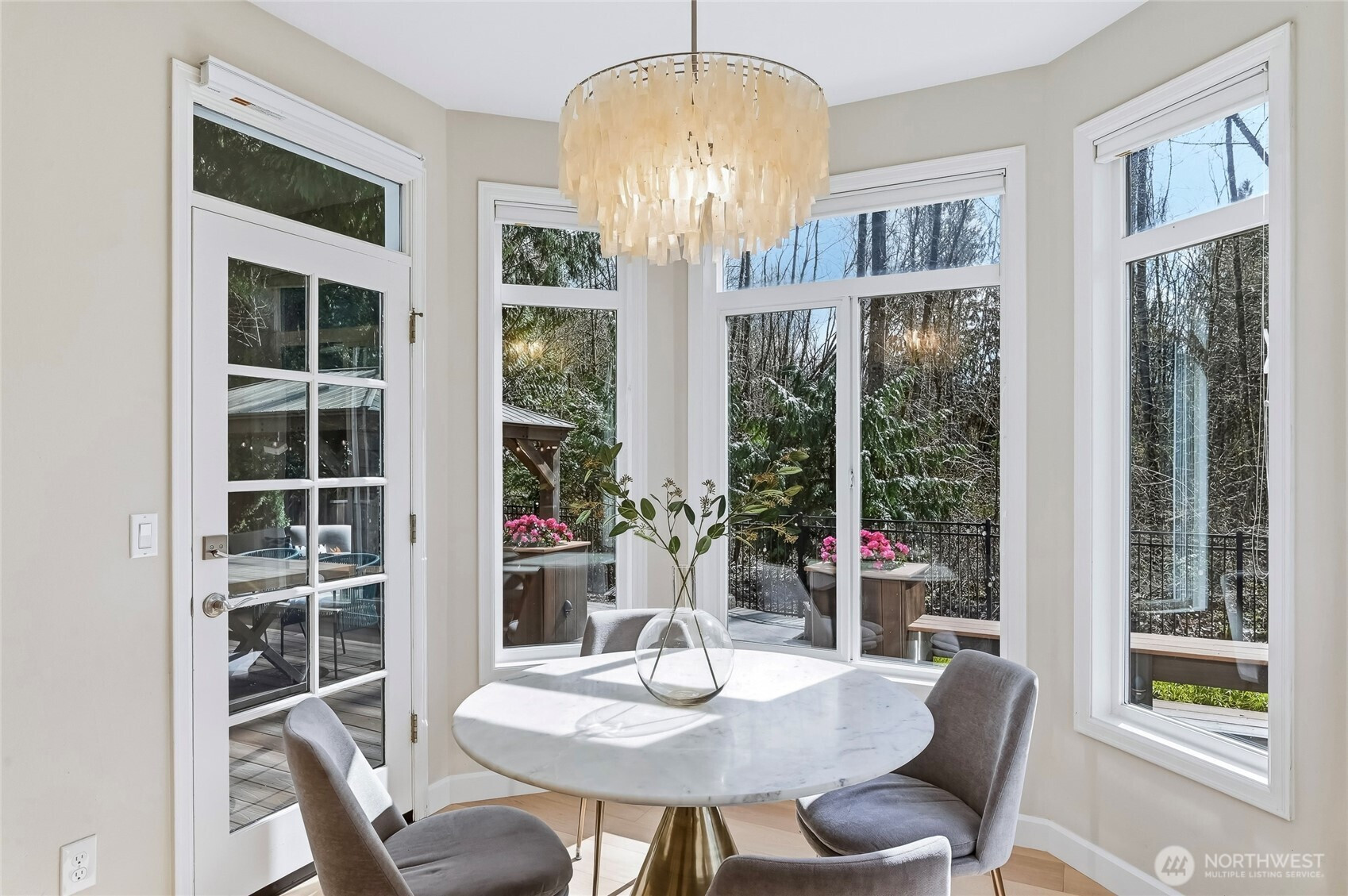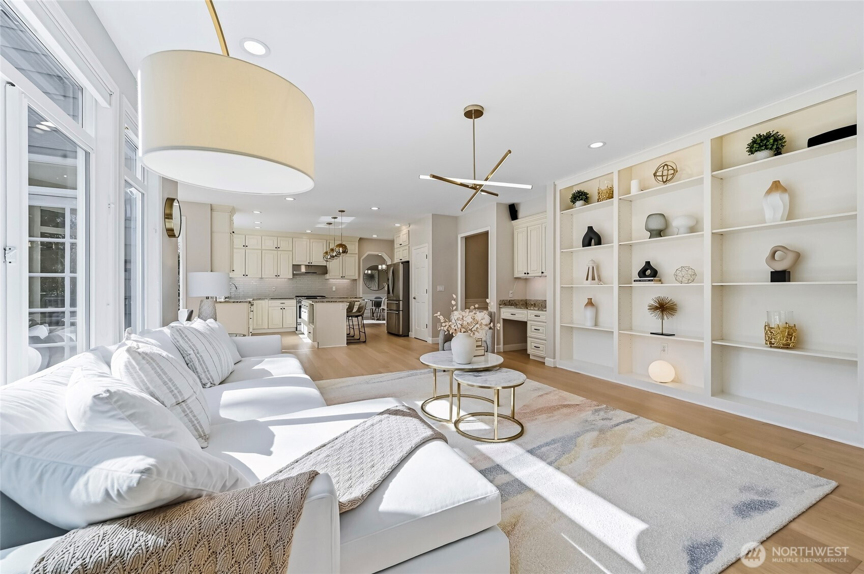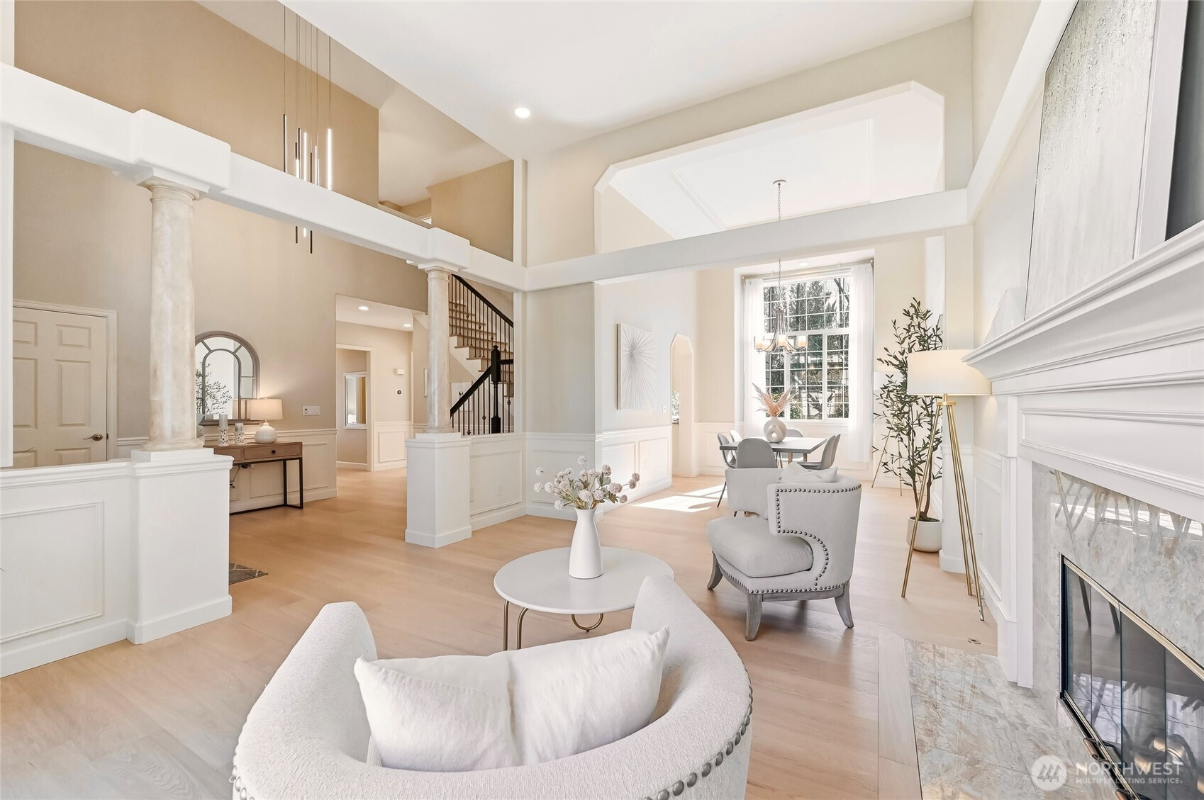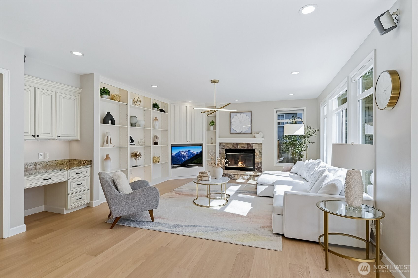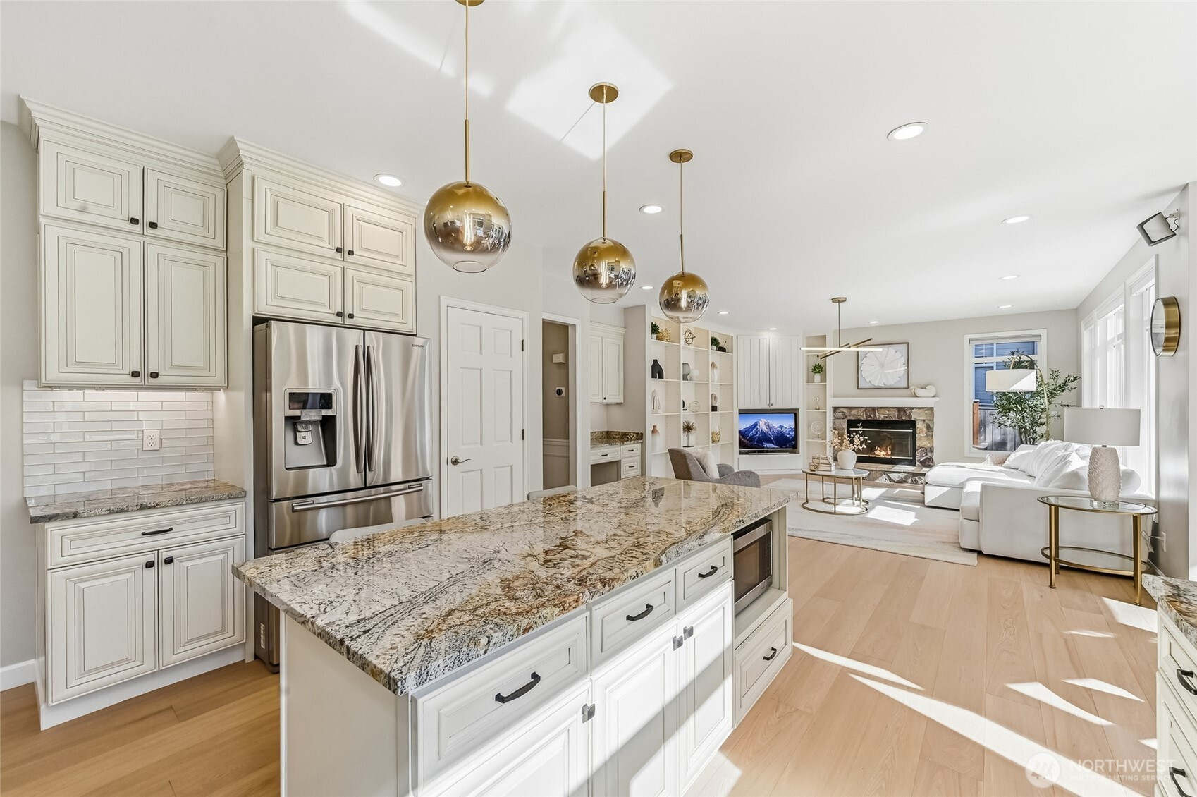 Mint-condition Burnstead resale in coveted Timberline Ridge, situated on one of the best cul-de-sac lots backing to the greenbelt.This meticulously maintained, extensively upgraded 4BR + bonus home offers an ideal circular main-floor plan, highlighted by soaring ceilings in the living and dining rooms. The gourmet kitchen features ceiling-height cabinetry, a center island, SS appliances, and a sink overlooking the gorgeous backyard. South-facing exposure fills the home with abundant natural light.New select-grade engineered wood flooring spans the main level, while two gas fireplaces add warmth and ambiance. Detailed millwork, elegant wainscoting, and custom built-ins showcase exceptional craftsmanship. A versatile main-floor bedroom also functions as an office.Upstairs, the luxurious primary suite features a bay window and a newly upgraded spa-like bath with designer finishes and premium fixtures. Custom shelving in all bedroom closets and heated bathroom floors. Large bonus room perfect for family fun. Low-maintenance yard with professional landscaping, lighting, a large Trex deck, and a fountain feature. Enjoy summer movie nights in the gazebo or relax while watching the seasons change in the peaceful greenbelt.Steps to Blackwell Elementary! Central A/C, newer furnace and water heater, newer interior and exterior paint, EV charger, sprinkler system, 2 storage sheds, three-car garage...This home truly checks all the boxes!