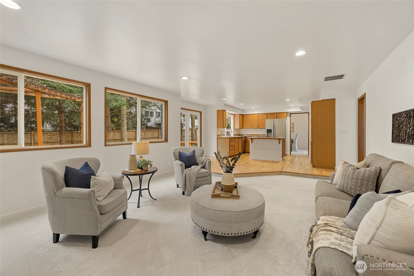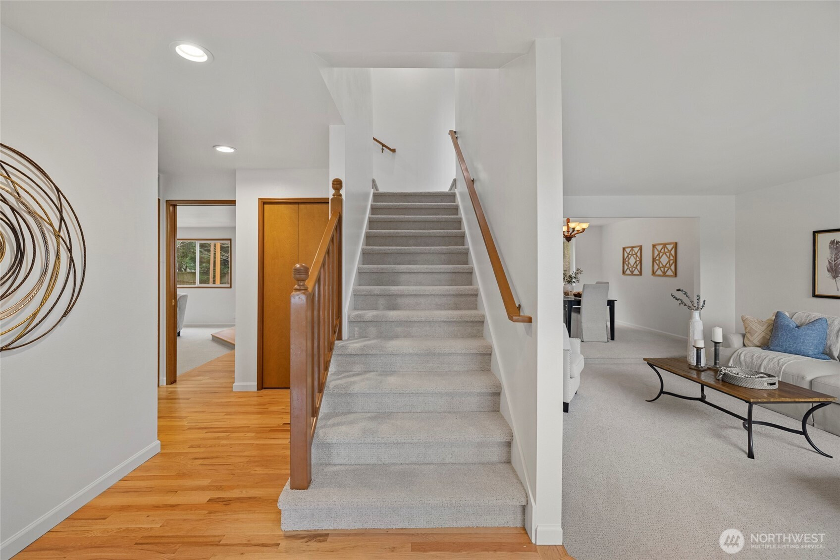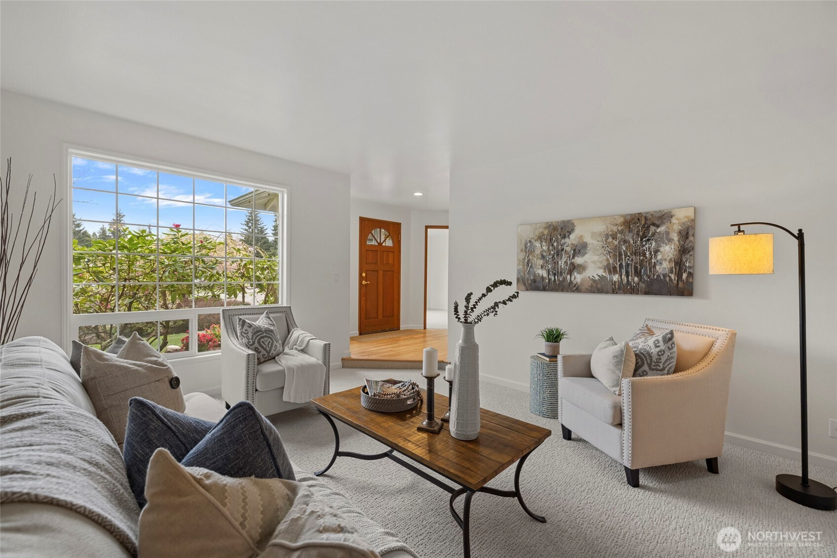 Welcome to this beautifully refreshed home in the highly sought-after Summerwind neighborhood of Renton. Offering 4 bedrooms, 2.5 bathrooms, and 2,560 square feet of well-designed living space, this residence combines functionality with thoughtful updates. Step inside to discover a freshly repainted interior, new carpet throughout the house with new base trims, and refinished hardwood floor on the main level. The kitchen has been tastefully refinished with updated cabinetry, and hardware creating a clean and modern aesthetic. The main floor features a versatile bedroom, formal living and dining rooms, and a spacious family room with an open-concept layout that flows seamlessly to the generous backyard. Enjoy direct access to a freshly painted patio deck—ideal for entertaining, summer gatherings, and relaxed outdoor living. Upstairs, you’ll find a large recreation room, spacious secondary bedrooms, a full hallway bathroom, and an inviting primary suite complete with a 5-piece en suite bath and a well-sized walk-in closet. A 2-car garage provides ample storage and convenience. Located in a serene, established neighborhood with easy access to Bellevue, I-405, I-90, Issaquah, downtown Renton, and Coulon Park on Lake Washington, this home offers exceptional connectivity. Close to shopping plazas, schools, parks, and everyday amenities, this move-in-ready property delivers comfort, space, and prime location in one complete package.