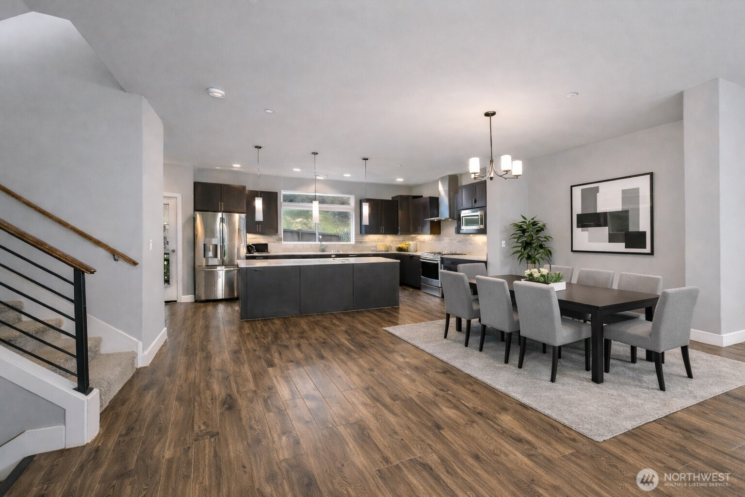Refined Living with Valley Views in a Gated Kent Enclave. Experience elevated living in this impeccably maintained 3BR | 3.5BA townhome nestled within the gated Copper Ridge community of Kent. Spanning 2,640 sq ft, the home blends thoughtful design, recent updates, and sweeping valley views — offering exceptional value just minutes from Seattle and the Eastside. The main level showcases sophisticated open-concept living, anchored by a granite chef’s kitchen, inviting fireplace, and a private balcony overlooking the valley — a serene setting for morning coffee or sunset evenings. Upstairs, retreat to the expansive primary suite featuring a spa-inspired 5-piece en suite, complemented by two additional bedrooms and a beautifully appointed full bath. The lower level offers a private bath and spacious living area, creating a versatile retreat ideal for guests, a media lounge, or refined flex space. Outdoors, discover a meticulously curated backyard oasis with lush landscaping, low-maintenance turf, and a charming gardening area beyond the fence. Backing to open space, the property delivers rare privacy and tranquility. Residents of Copper Ridge enjoy effortless, lock-and-leave living with HOA covering exterior maintenance and earthquake insurance. Community amenities include scenic trails, playground, gazebo, and sport court — all within a peaceful neighborhood offering seamless access to Sea-Tac, major freeways, and everyday conveniences.