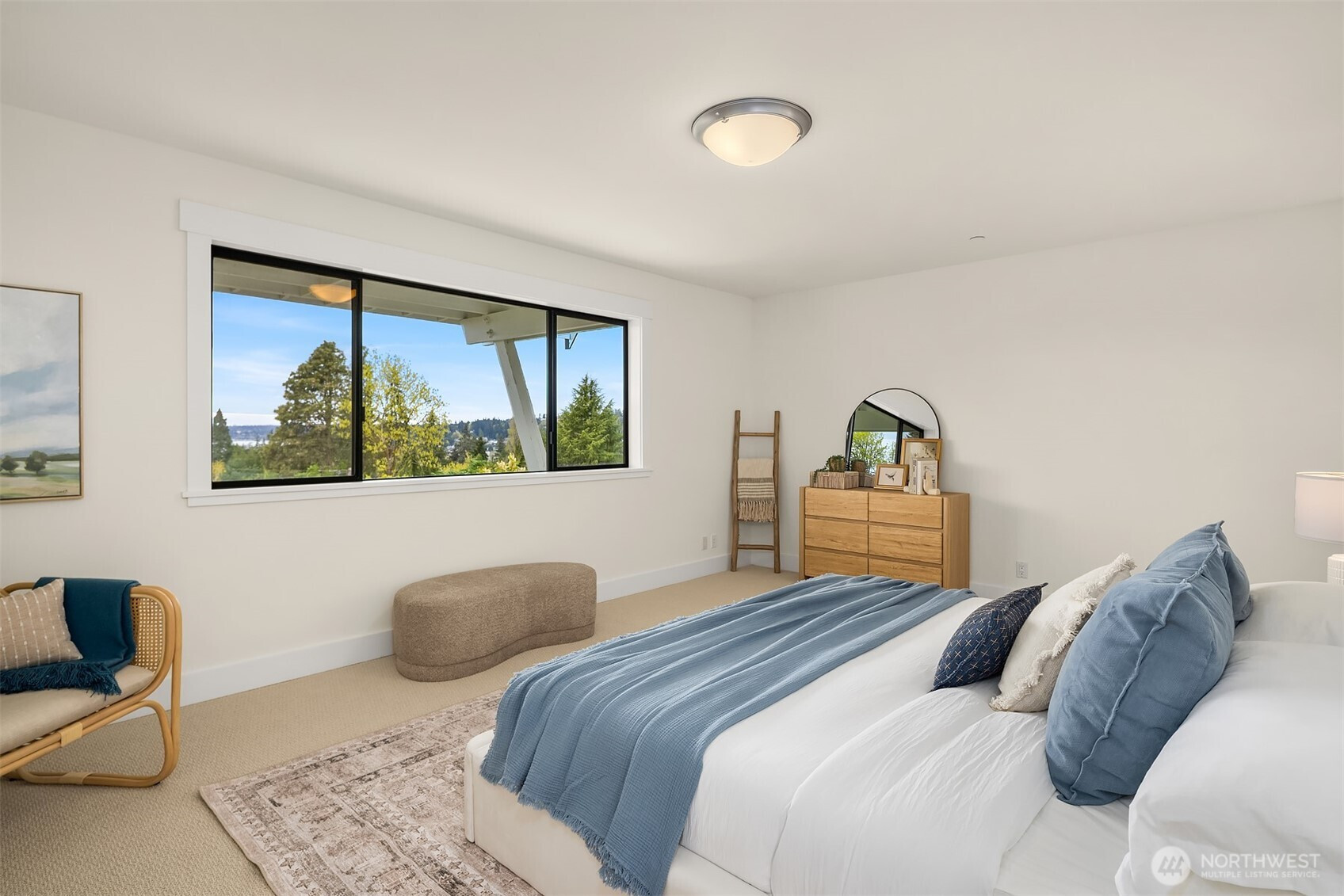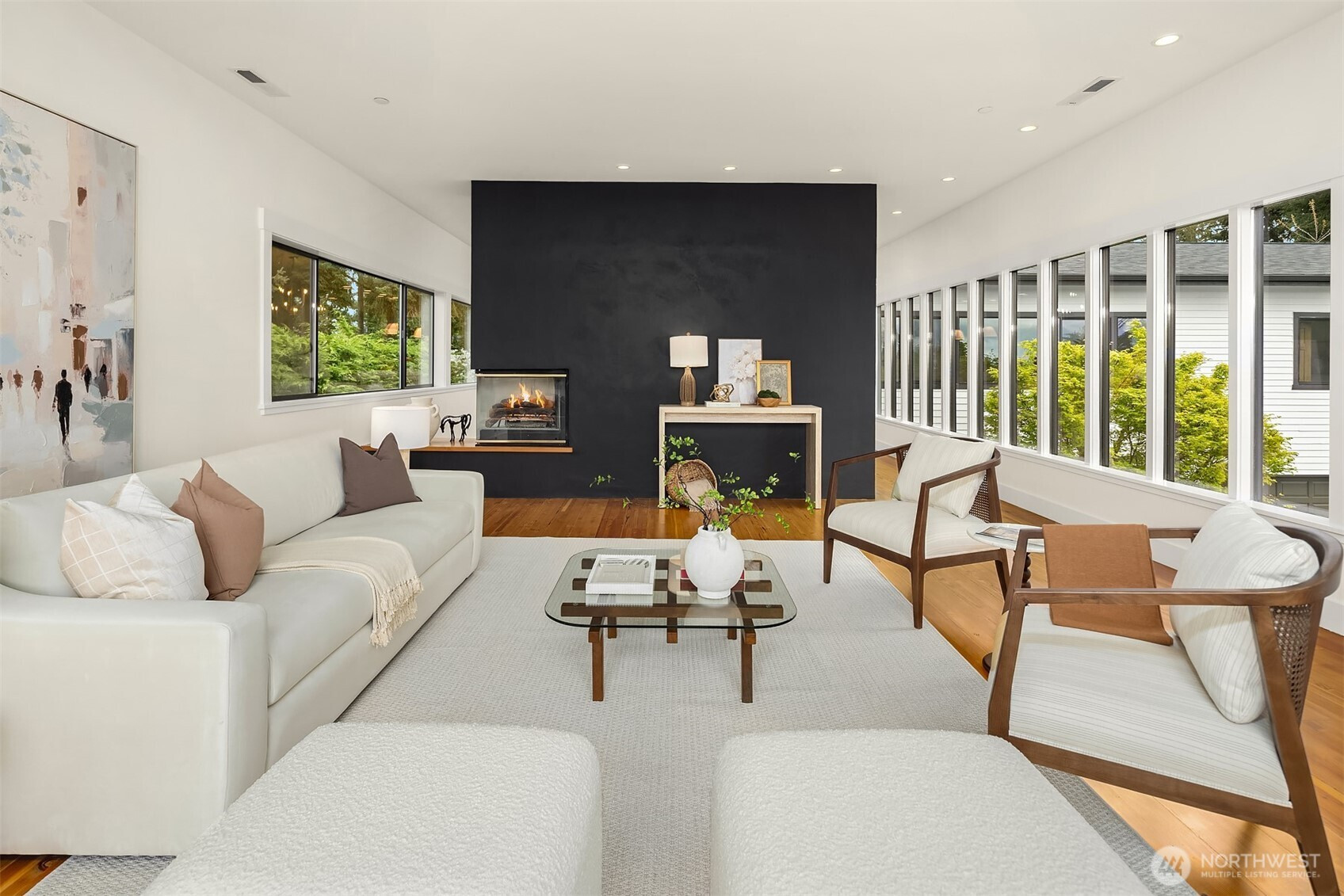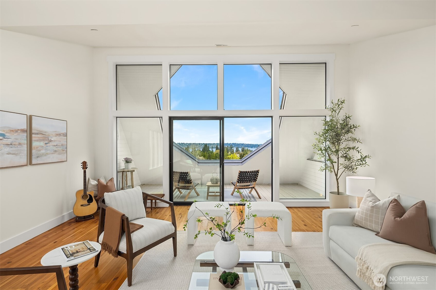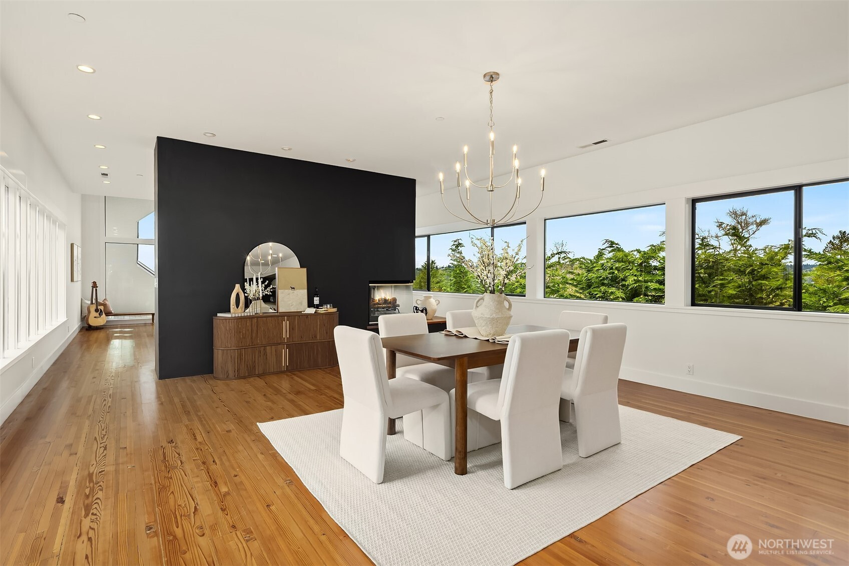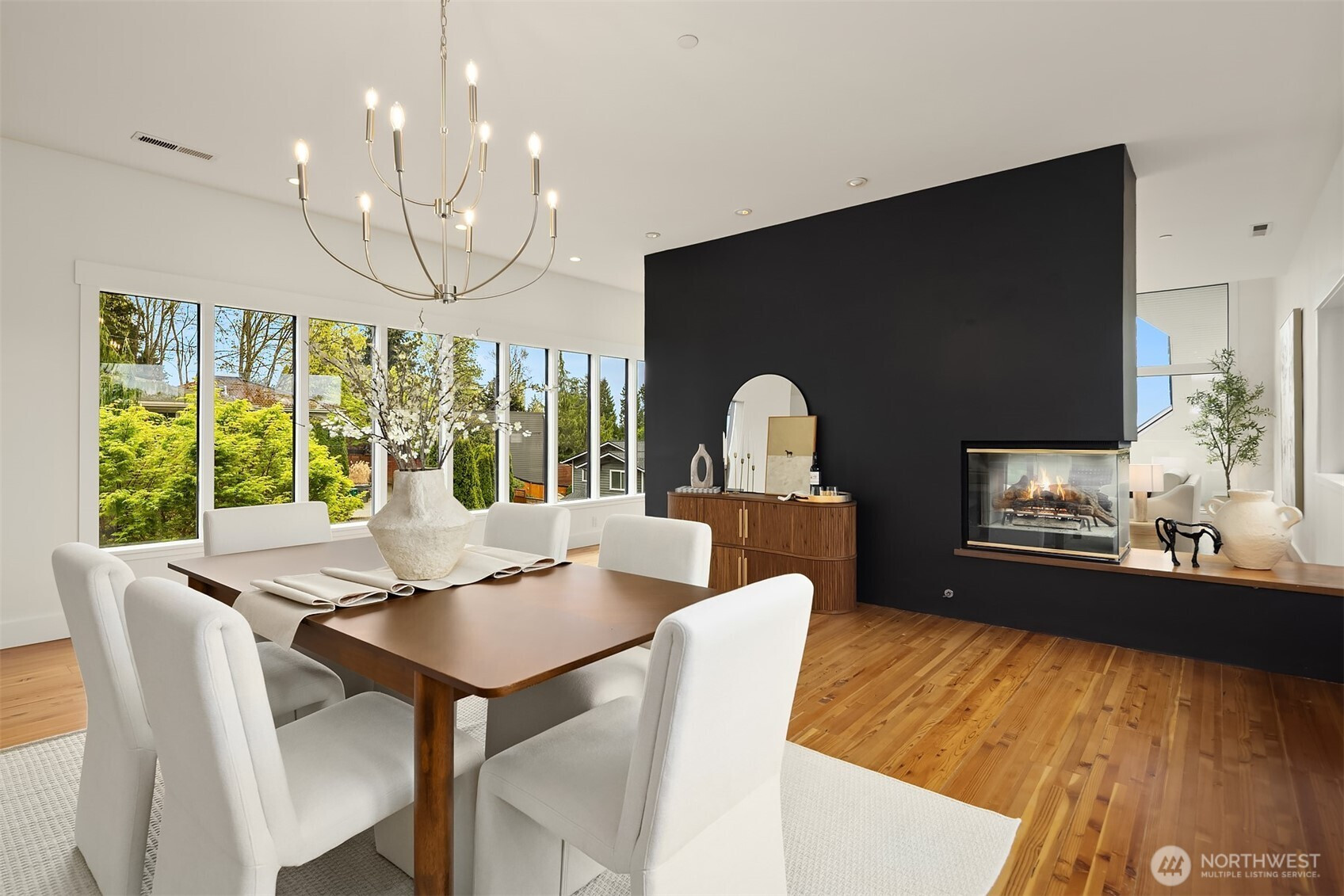 East of market home with views of Seattle & Lake Washington. Beautifully crafted home in the heart of Kirkland. 3780 sqft, 4 bedroom, 3 full bath - all bathed in natural light from expansive wall of windows. Remodeled chef's kitchen with granite counters and backsplash. Premium Wolf & Bosch SS appliances including double ovens & sinks. Large dining & living rooms with 2-sided gas fireplace. Views from deck. Warm toned hardwoods, new carpet, interior painting, new roof, new furnace and AC. Radiant heated floors on main level. Nicely sized bedrooms, one with secret cubby. Large primary with 5 piece bath and again, view of Lake Washington. Separate attached 400 sq ft bonus space for just about any use. Lower deck and yard for entertaining. 2 car garage w/EV charger. Walk to elementary and middle schools. Walk to DT Kirkland for dinner and shopping. A rare opportunity to own view-drive, design forward home in one of Kirkland's most desirable locations.