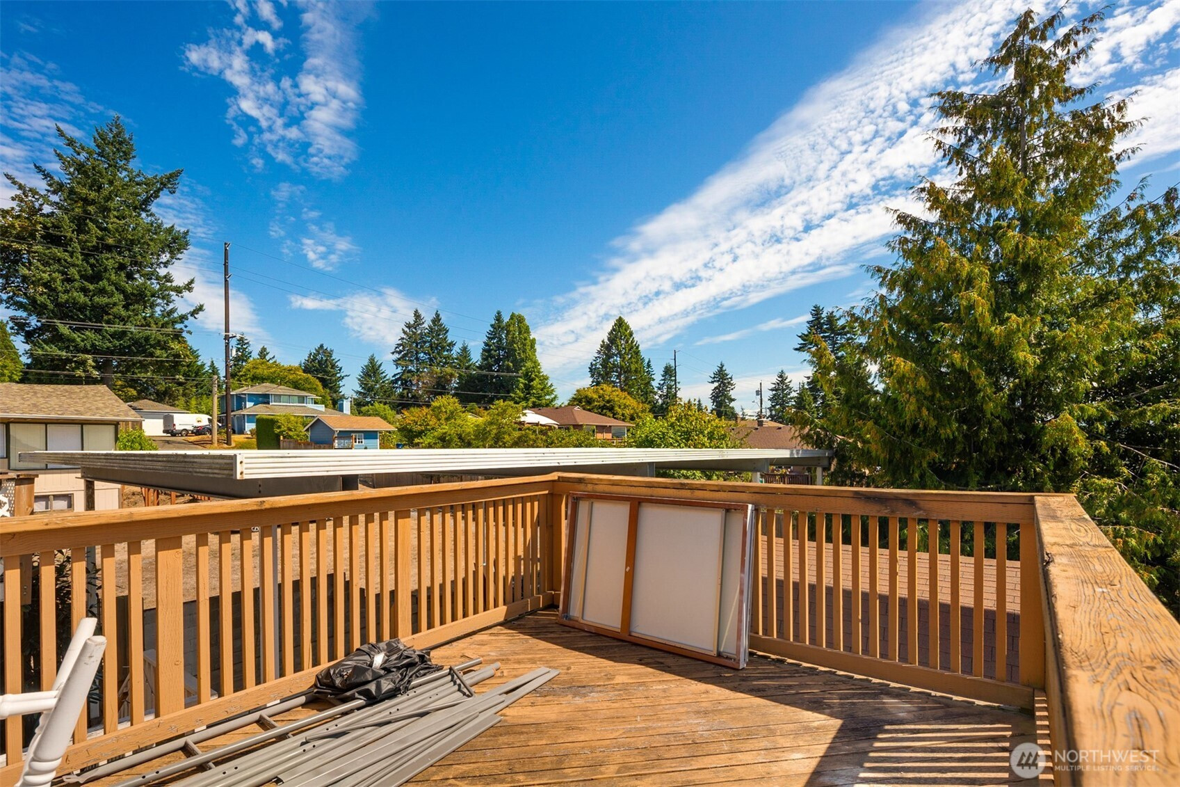 Opportunity Knocks! A true diamond in the rough in a fantastic location! This legal duplex offers incredible potential and may even be converted into a triplex for added income and value (buyer to verify). The main home features 4 bedrooms, 2 baths, vaulted ceilings, hardwood floors, 2 fireplaces, a galley kitchen, and a spacious lower-level rec room with additional rooms ready to finish. A 1-car garage, shop area, and massive 4-car carport with double RV parking are a huge plus. Need a place to live while you remodel? The bonus 2-bedroom apartment, built in 1990, provides stunning Sound and Mt. Rainier views—making the project more manageable. With multi-level decks to enjoy those views and endless possibilities for customization.