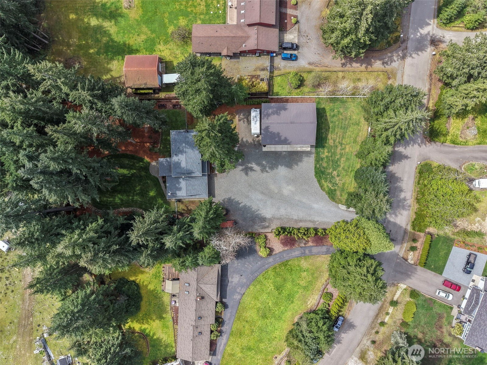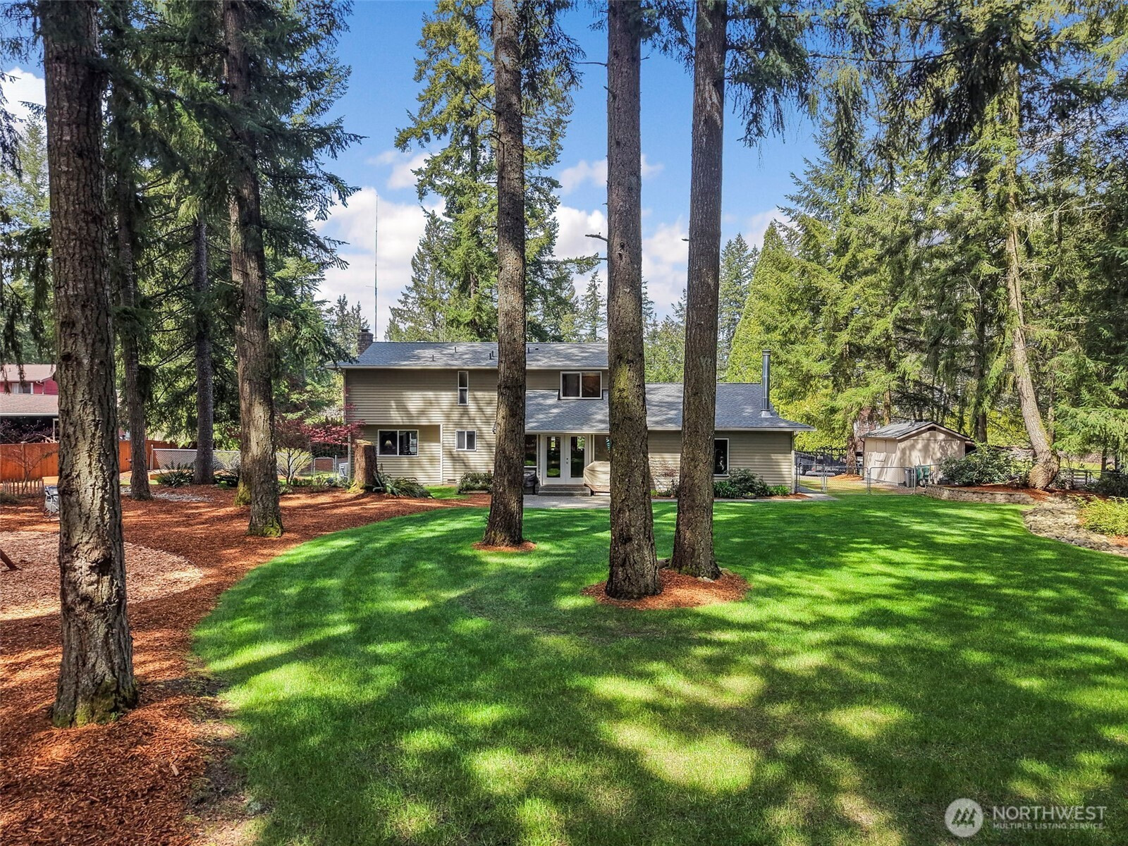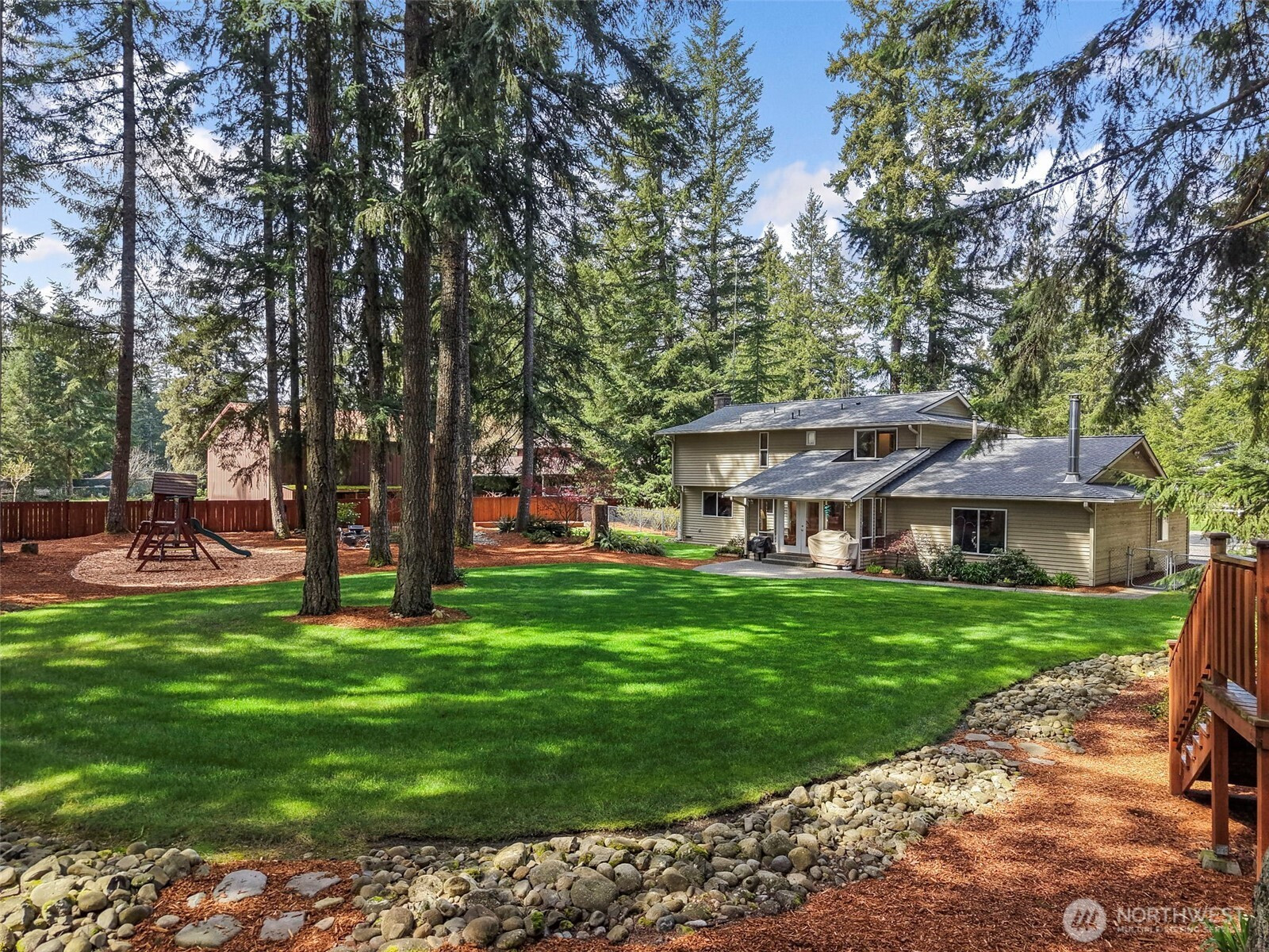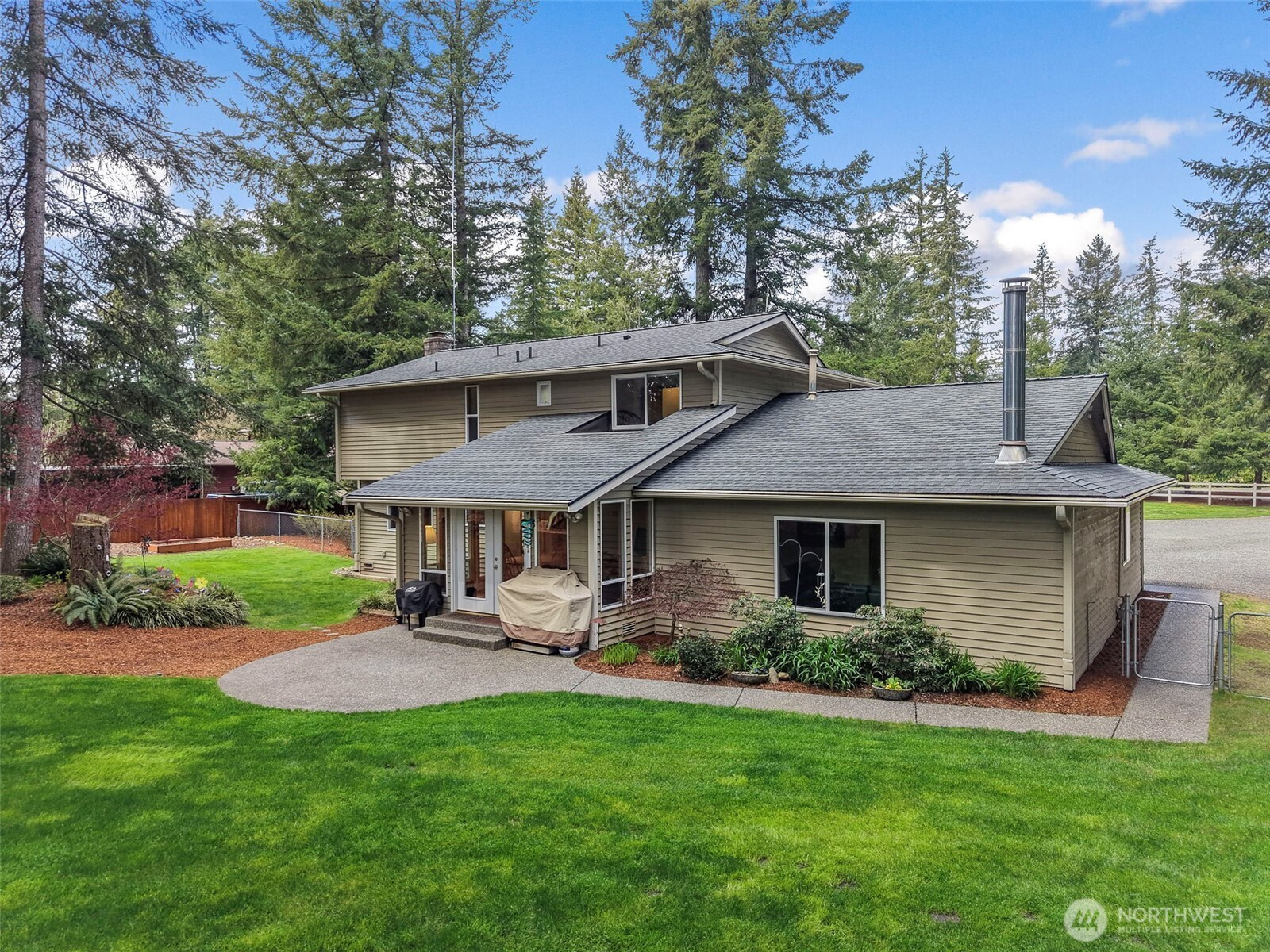Nestled on a secluded, park like acre lot in Homestead Acres, this gorgeous property offers privacy, nature, serenity & exceptional space for hobbies, storage, & outdoor living. The meticulously maintained 4-bed, 2.5-bath home (2200+ sq ft) features extensive upgrades including a new roof, refinished floors, insulated windows, new water heater, heat pump with A/C, trex patio, & wired for generator. The remodeled kitchen showcases custom oak cabinetry, Corian counters, deep pull-out drawers, gas stove, double-door pantry, appliance garage, spice/medicine pull-outs, a large island with prep sink, & a beveled-glass window overlooking gorgeous front-yard/property. A standout 1700+ sq ft pole barn offers water, electricity, a 14' RV door, mezzanine storage, and parking for 4+ vehicles. Plus additional outdoor space for multiple RVs, boats, trailers, & recreational toys. The attached 2-car garage adds even more workspace & storage. The STUNNING fully fenced park like backyard features impressive amenities including a 100' zip line, 78 sq ft tree house w/stairs, established garden, play area, three raised beds, a 10x14 Tuff Shed, and beautiful landscaping w/rhododendrons, azaleas, Japanese maples, & ferns—all overlooking neighboring horses, cattle, sheep, and goats for a peaceful rural feel. Just 3 miles to Costco, Hwy 18, Fred Meyer, Safeway, and everyday conveniences. A fabulous rare blend of privacy, convenience, and connection to nature. NO HOA! This one is special!