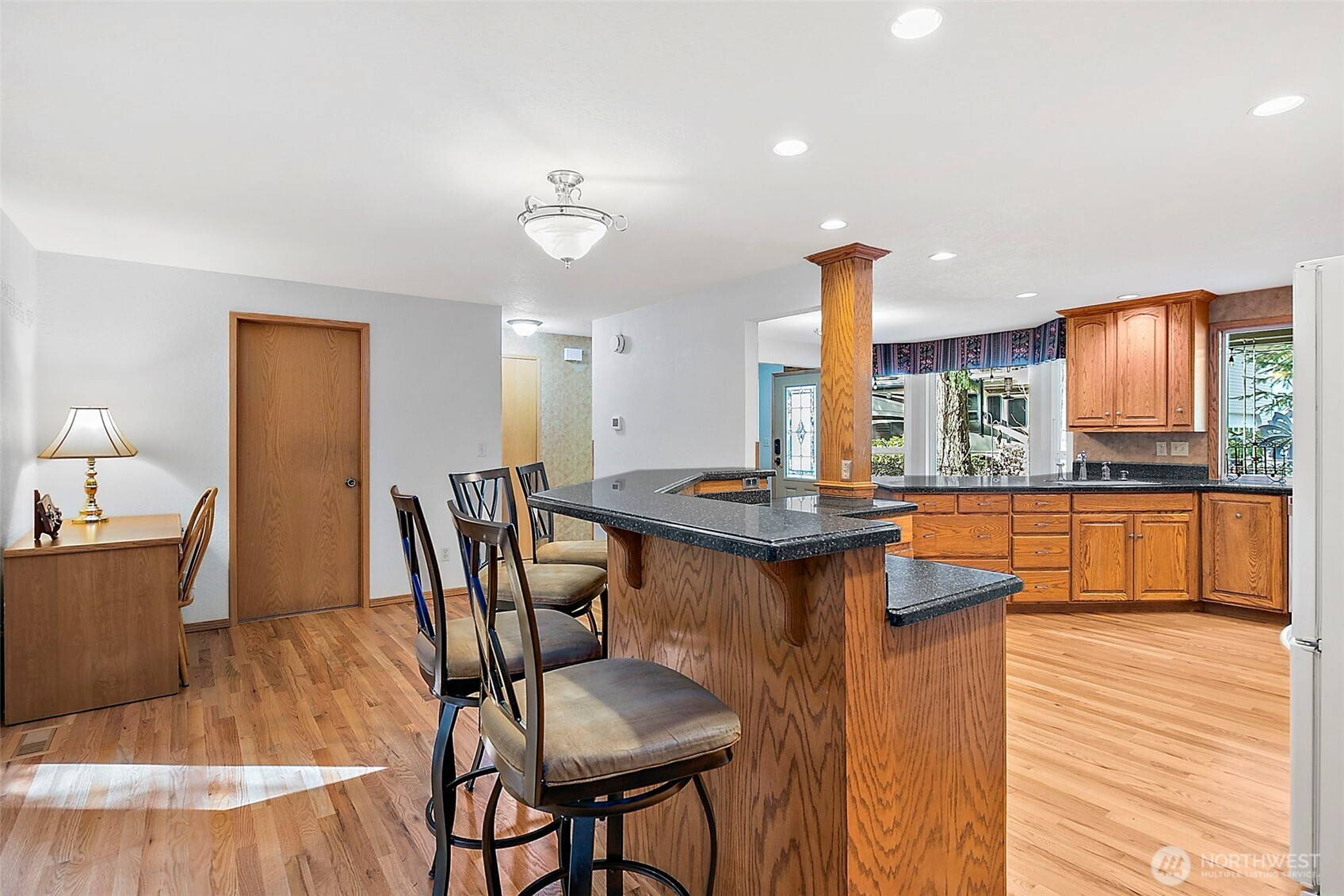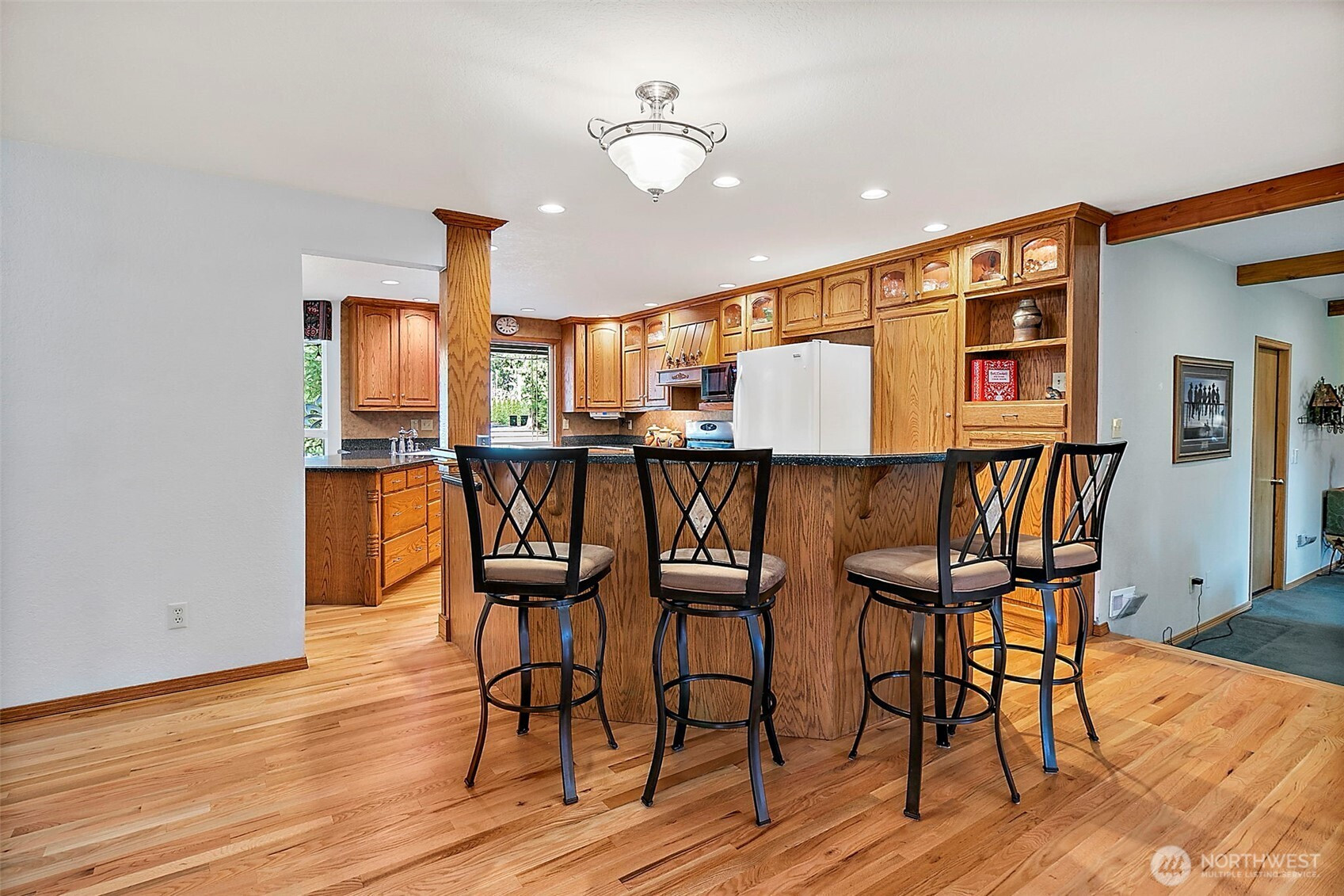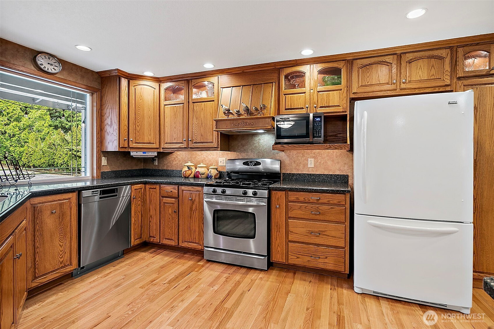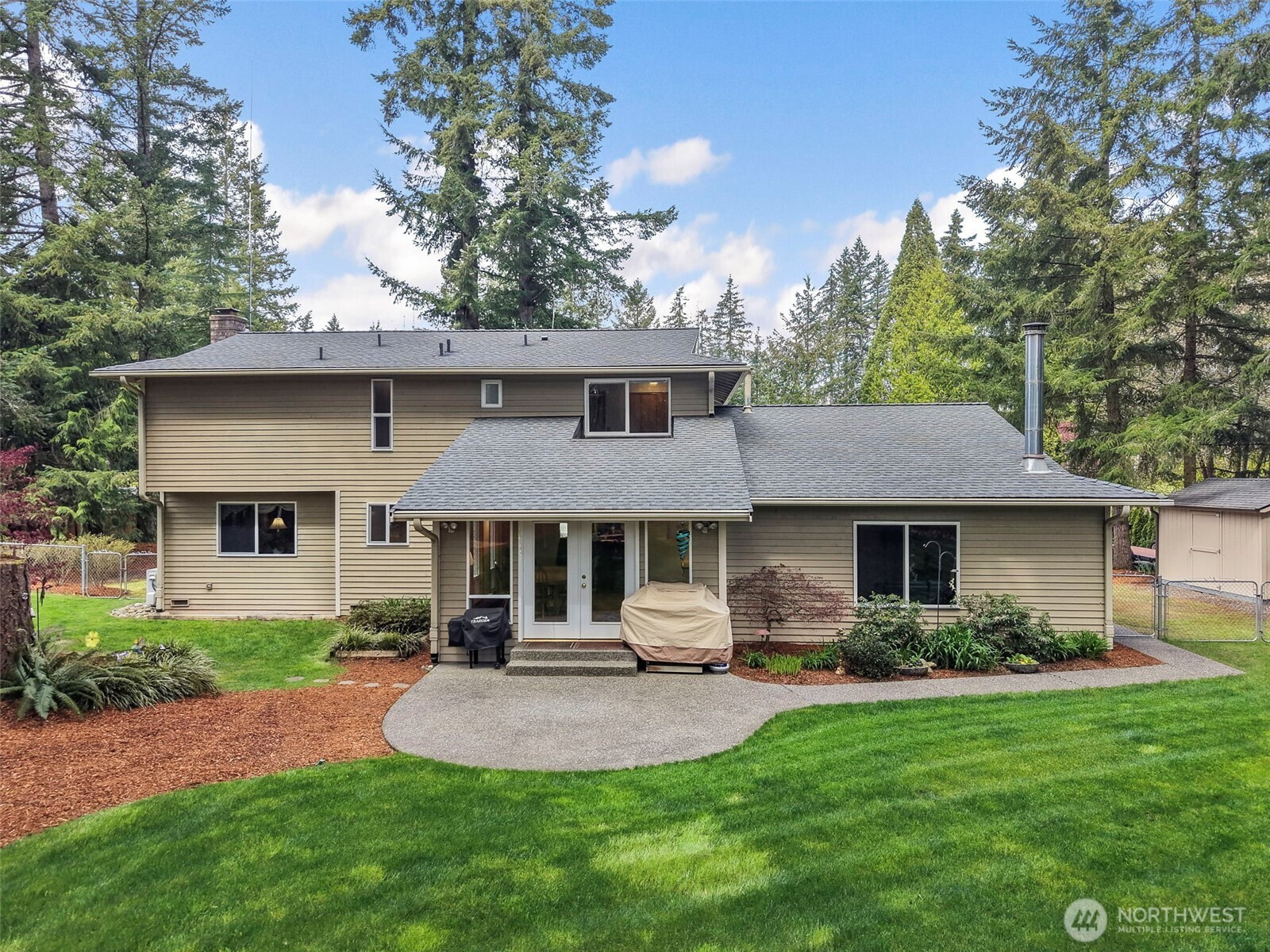 Nestled on a secluded, park like acre lot in Homestead Acres, this gorgeous property offers privacy, nature, serenity & exceptional space for hobbies, storage, & outdoor living. The meticulously maintained 4-bed, 2.5-bath home (2200+ sq ft) features extensive upgrades including a new roof, refinished floors, insulated windows, new water heater, heat pump with A/C, trex patio, & wired for generator. The remodeled kitchen showcases custom oak cabinetry, Corian counters, deep pull-out drawers, gas stove, double-door pantry, appliance garage, spice/medicine pull-outs, a large island with prep sink, & a beveled-glass window overlooking gorgeous front-yard/property. A standout 1700+ sq ft pole barn offers water, electricity, a 14' RV door, mezzanine storage, and parking for 4+ vehicles. Plus additional outdoor space for multiple RVs, boats, trailers, & recreational toys. The attached 2-car garage adds even more workspace & storage. The STUNNING fully fenced park like backyard features impressive amenities including a 100' zip line, 78 sq ft tree house w/stairs, established garden, play area, three raised beds, a 10x14 Tuff Shed, and beautiful landscaping w/rhododendrons, azaleas, Japanese maples, & ferns—all overlooking neighboring horses, cattle, sheep, and goats for a peaceful rural feel. Just 3 miles to Costco, Hwy 18, Fred Meyer, Safeway, and everyday conveniences. A fabulous rare blend of privacy, convenience, and connection to nature. NO HOA! This one is special!