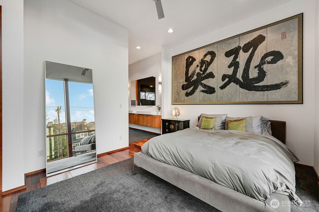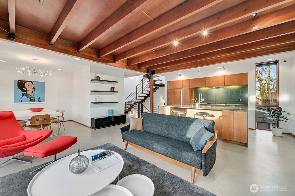 Architecturally significant, custom-built modern residence in the heart of Capitol Hill, featured in multiple publications and designed for those who value originality, craftsmanship, and enduring quality. Built without compromise, the home features exceptional materials, radiant floor heating throughout, and precision construction. At its core is a fully custom chef’s kitchen with bespoke cabinetry, Bosch appliances, wine refrigerator, built-in bar cabinetry, and refined finishes ideal for both serious cooking and entertaining. A sculptural custom staircase anchors the interior, complemented by custom-crafted high-end wood doors. Spa-inspired baths include Toto Neorest robotic toilets and Grohe premium fixtures. Walls of glass and clerestory windows frame iconic views of the Space Needle, Seattle skyline, and surrounding mountains. A private rooftop deck with Brazilian hardwood decking and landscaping offers panoramic city-to-mountain views. Additional highlights include smart home automation with monitored security, Brazilian Tigerwood floors, built-in closets, tankless water heater, garage storage, and low-maintenance landscaping—a rare opportunity where design, function, and location converge.