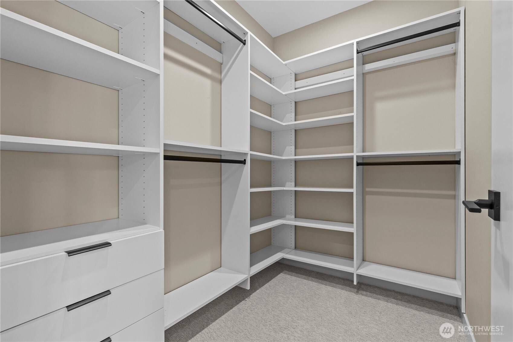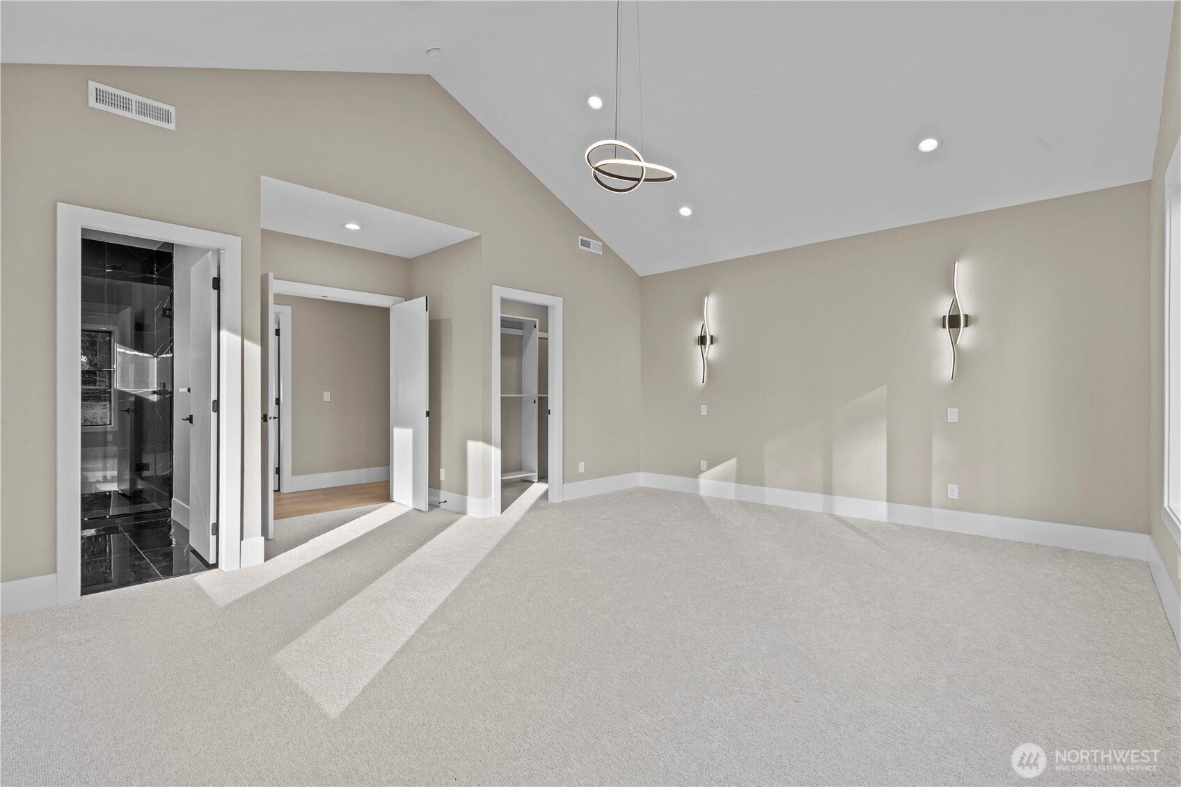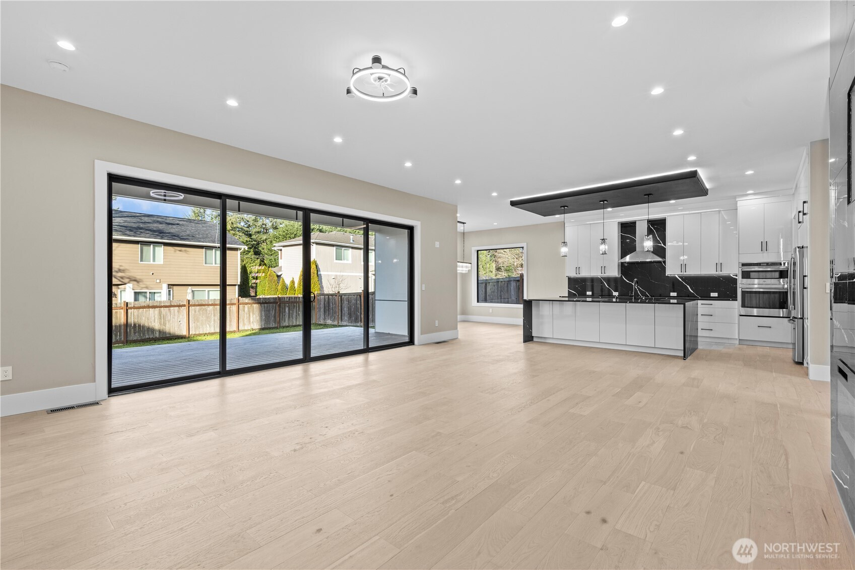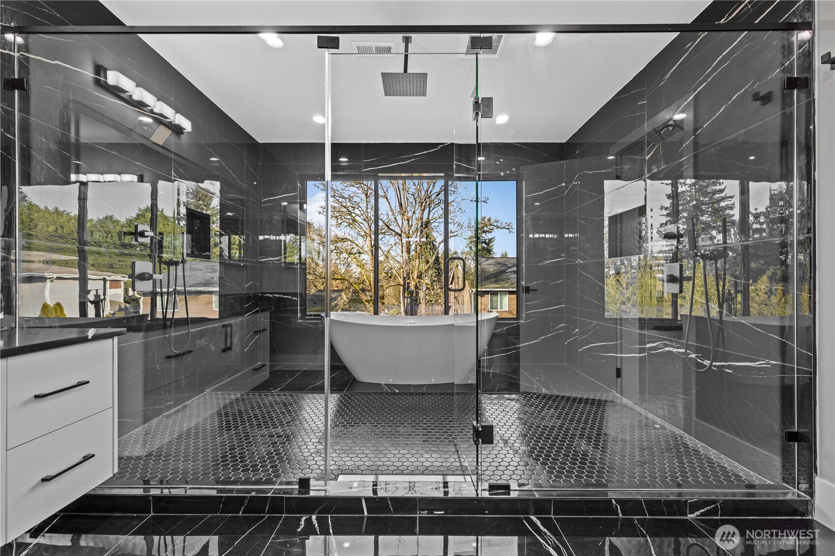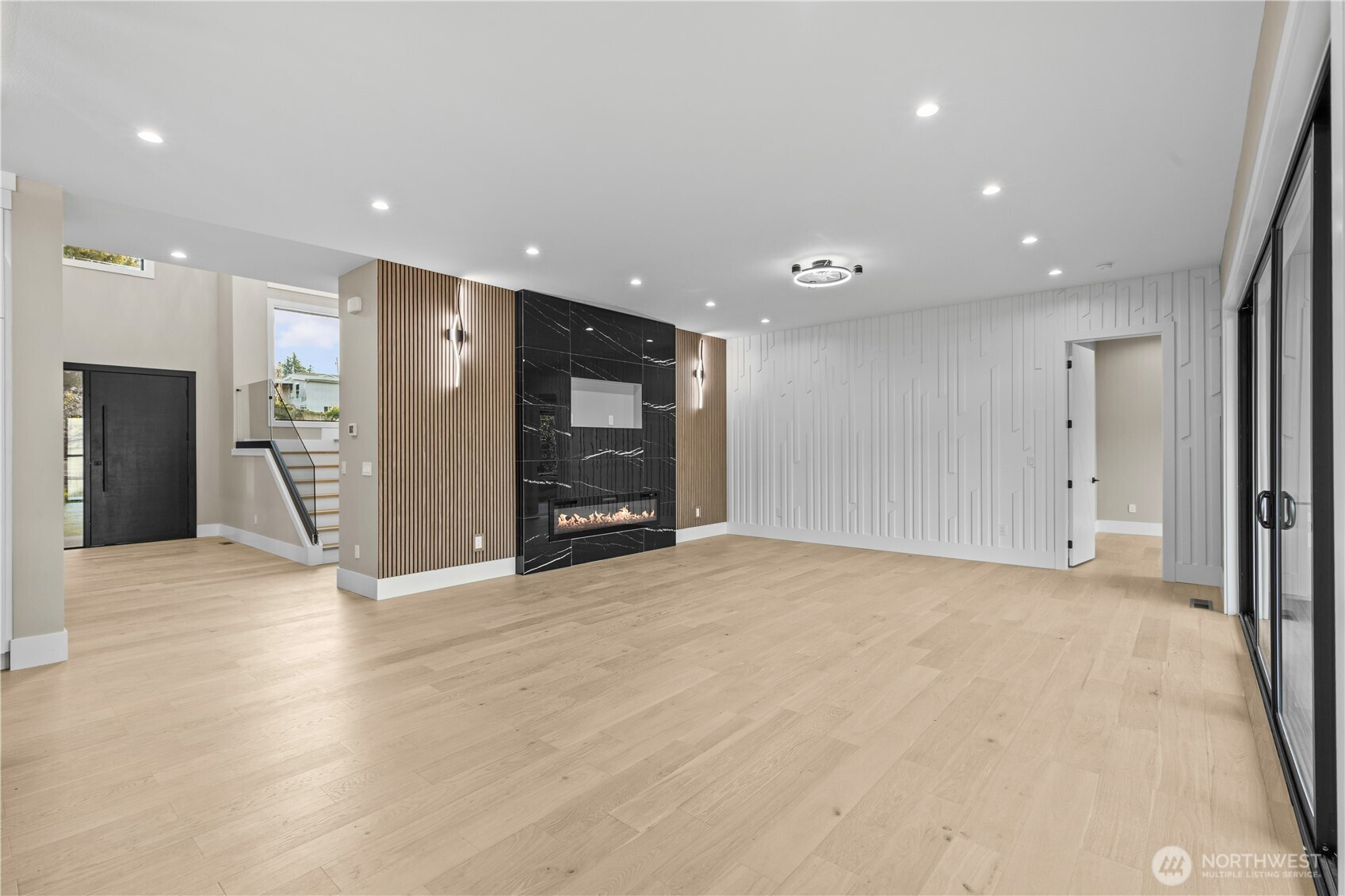 Be the first to call this newly constructed Modern European home yours. This rare custom new construction sits in the highly sought after North Hill community, offering street views of the beautiful Puget Sound. Thoughtfully crafted with lavish finishes and innovative functionality, this home delivers elevated luxury at every turn. Featuring 5 bedrooms and 4.5 bathrooms, the layout includes two primary suites with vaulted ceilings, a full suite on the main floor, custom luxury designs, a large covered deck, and a fully fenced backyard—plus much more. Step into a grand open foyer highlighted by sleek glass railings and striking black-on-black windows that flood the home with extraordinary natural light. The open layout flows into the great room, showcasing custom wall detailing, accent lighting, a polished tile fireplace, and a dramatic 16-foot sliding glass door leading to the covered deck and spacious backyard. The chef’s kitchen impresses with a walk-in pantry, crisp white cabinetry contrasted by bold black countertops, and a stunning waterfall island. Upstairs, warm engineered hardwood transitions into plush carpeting, leading to a rare and grand primary bathroom featuring a curved double-sink vanity and a spa-inspired wet room with dual showers and an exquisite soaking tub. A true testament to elegance and timeless appeal, this home offers easy access to SR-509, I-5, Seattle, Tacoma, SeaTac Airport, Southcenter, and the Des Moines Waterfront.