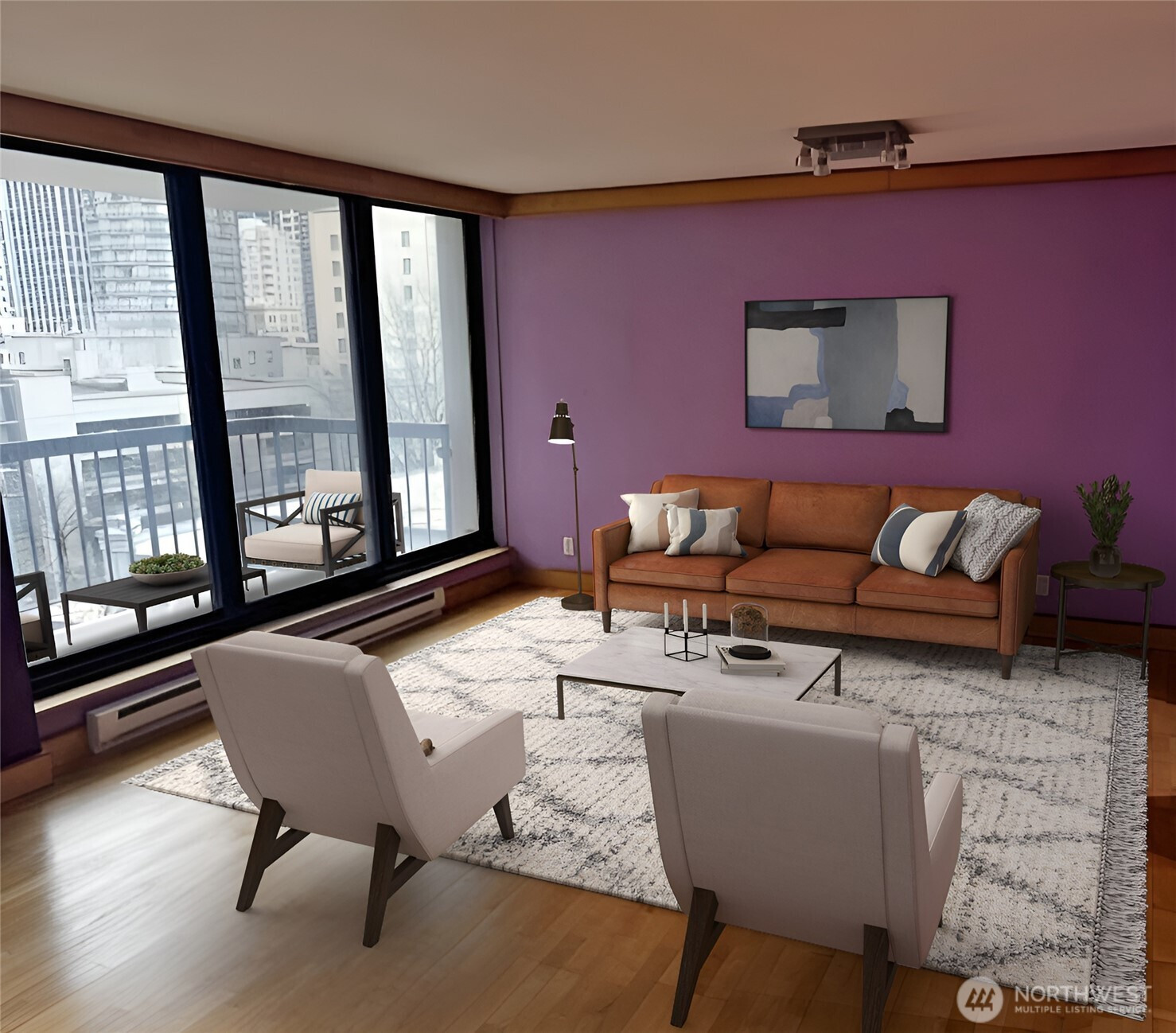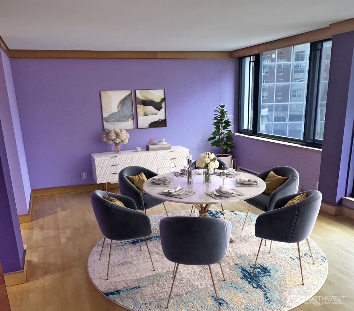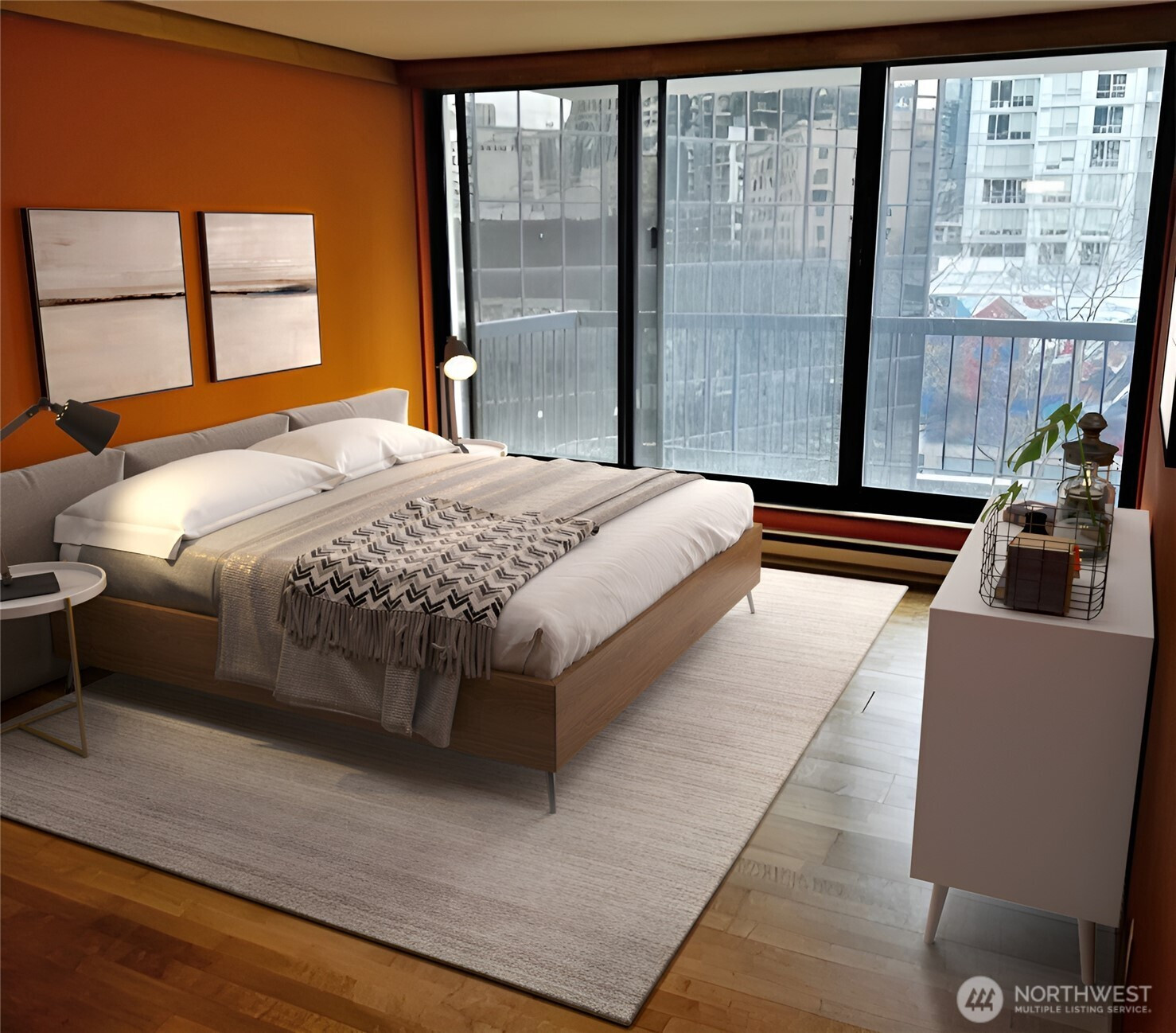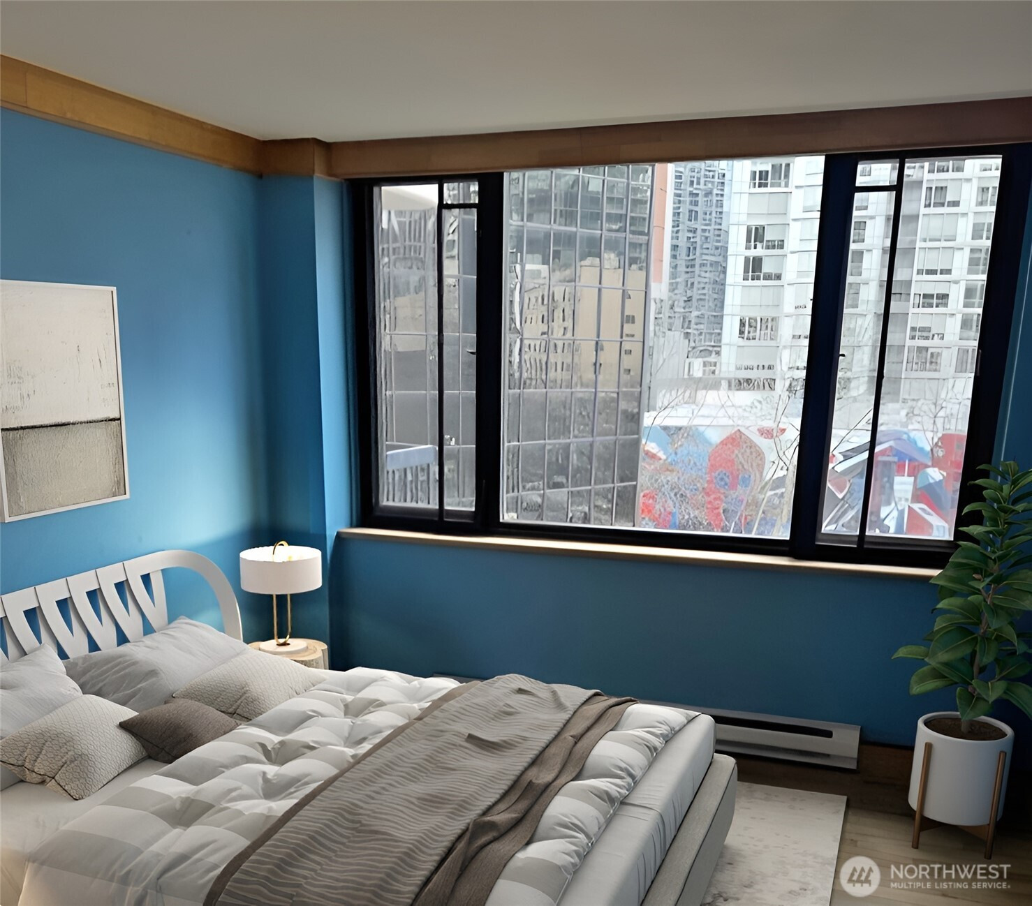 Located in the heart of downtown Seattle. Walking distance to restaurants, Seattle waterfront, Amazon, and shopping! Spacious open floor plan with a private balcony views of downtown. The unit features a master suite with an en-suite bathroom, second bedroom with a three quarter bath, in unit washer and dryer. The open concept kitchen features stainless steel appliances and modern cabinets and hardwood floors through out the unit. The building features secure entry, exercise room, sauna and an outdoor pool. Some images in this listing have been virtually staged.