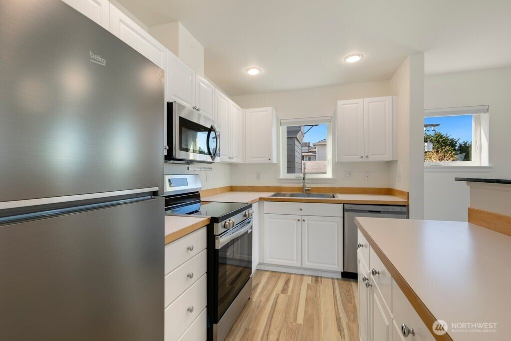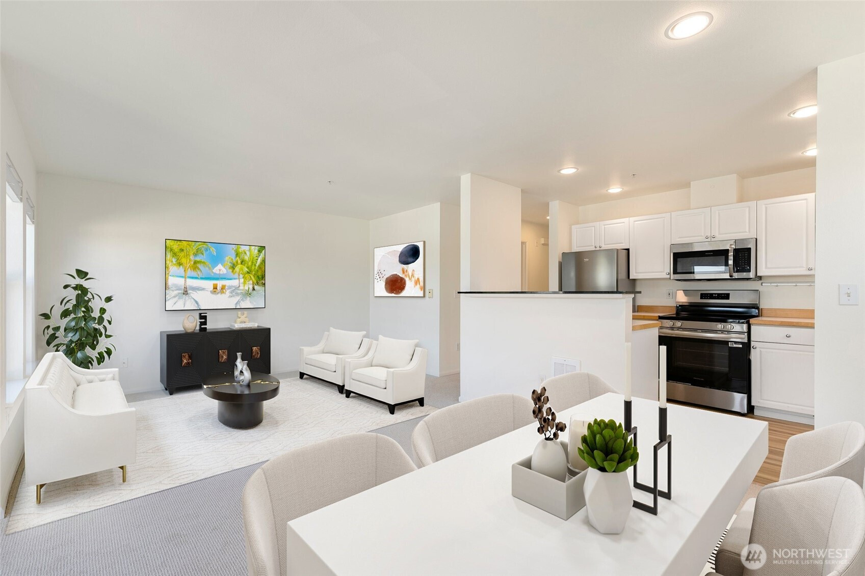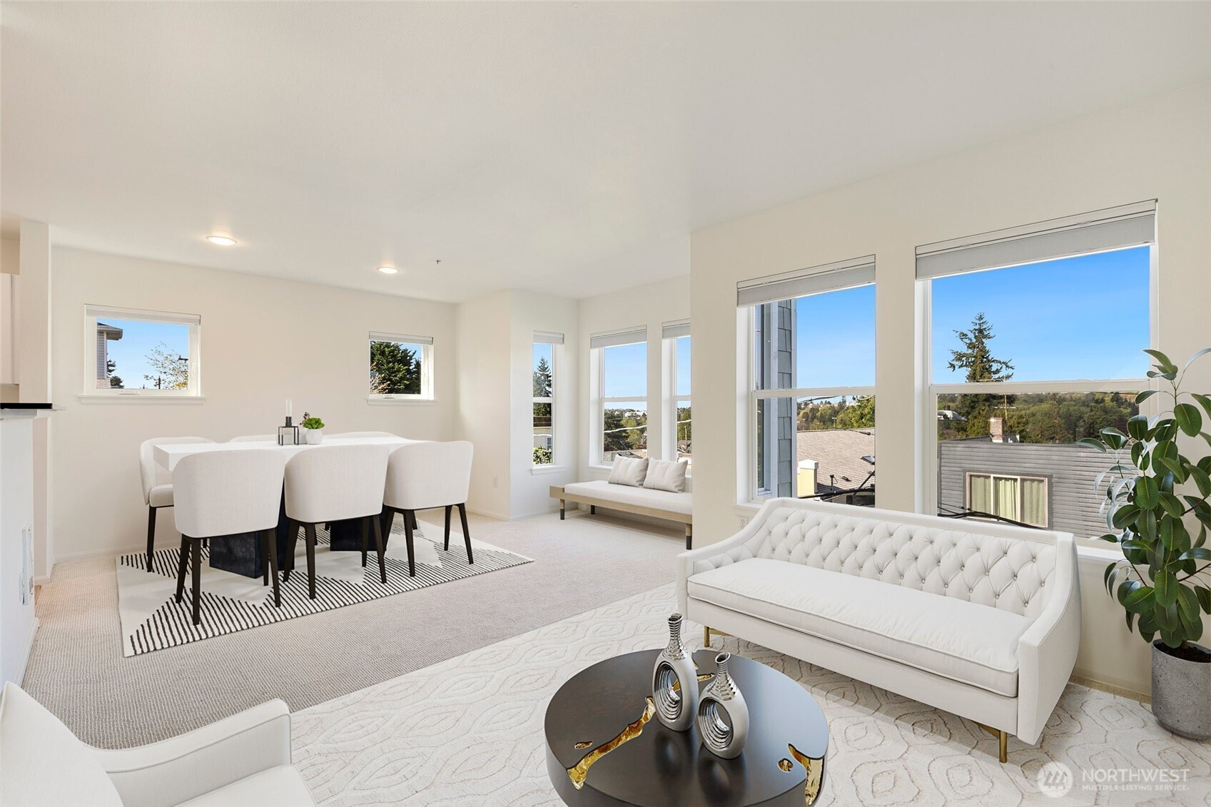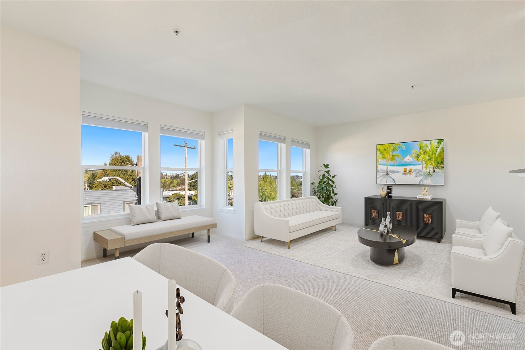Top-floor corner condo in Tangletown offering bright southwest-facing views and an unbeatable location. Just a short distance to Green Lake Park and minutes from Wallingford, this home puts the best of the city at your doorstep. Enjoy nearby favorites like Kisaku, Leny's Place, My Friend Derek's, and Zoka Coffee Roaster & Tea Company. Features include newer kitchen appliances, in-unit W/D, secure garage parking, gated entry, and a peaceful courtyard—urban living at its finest.
