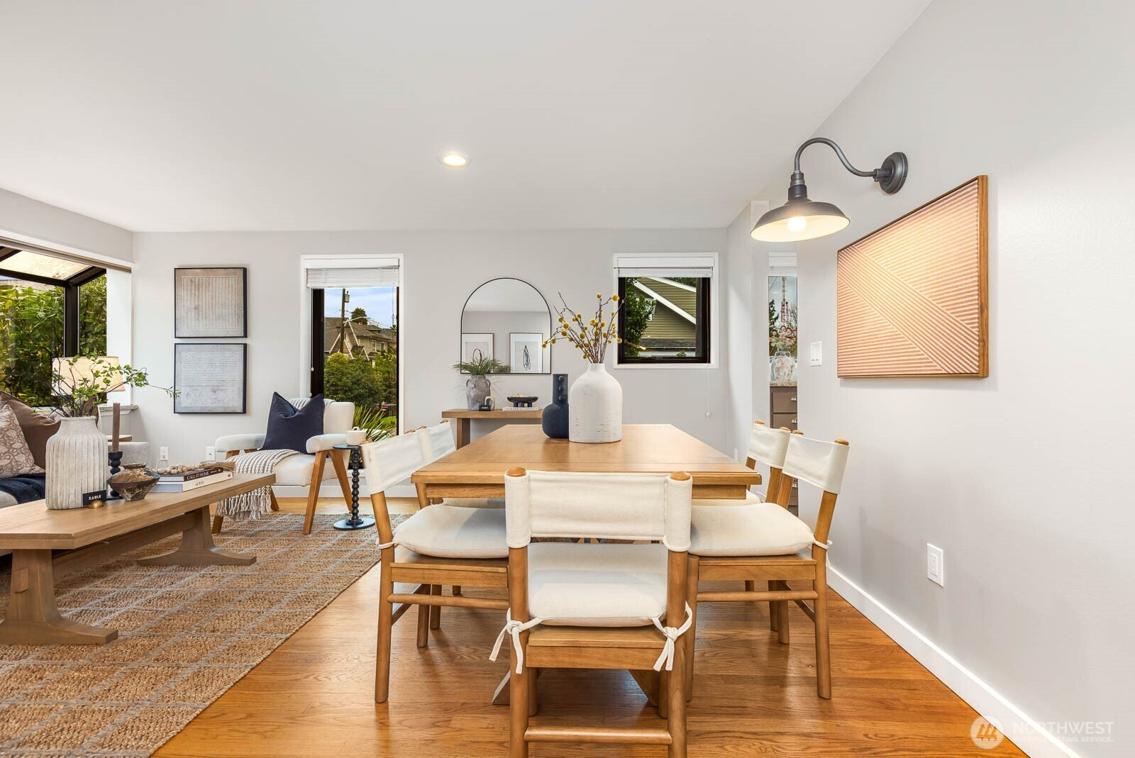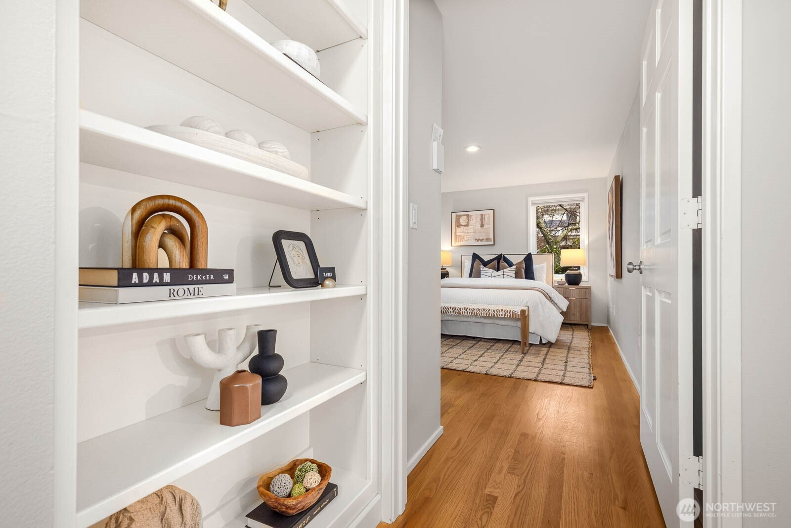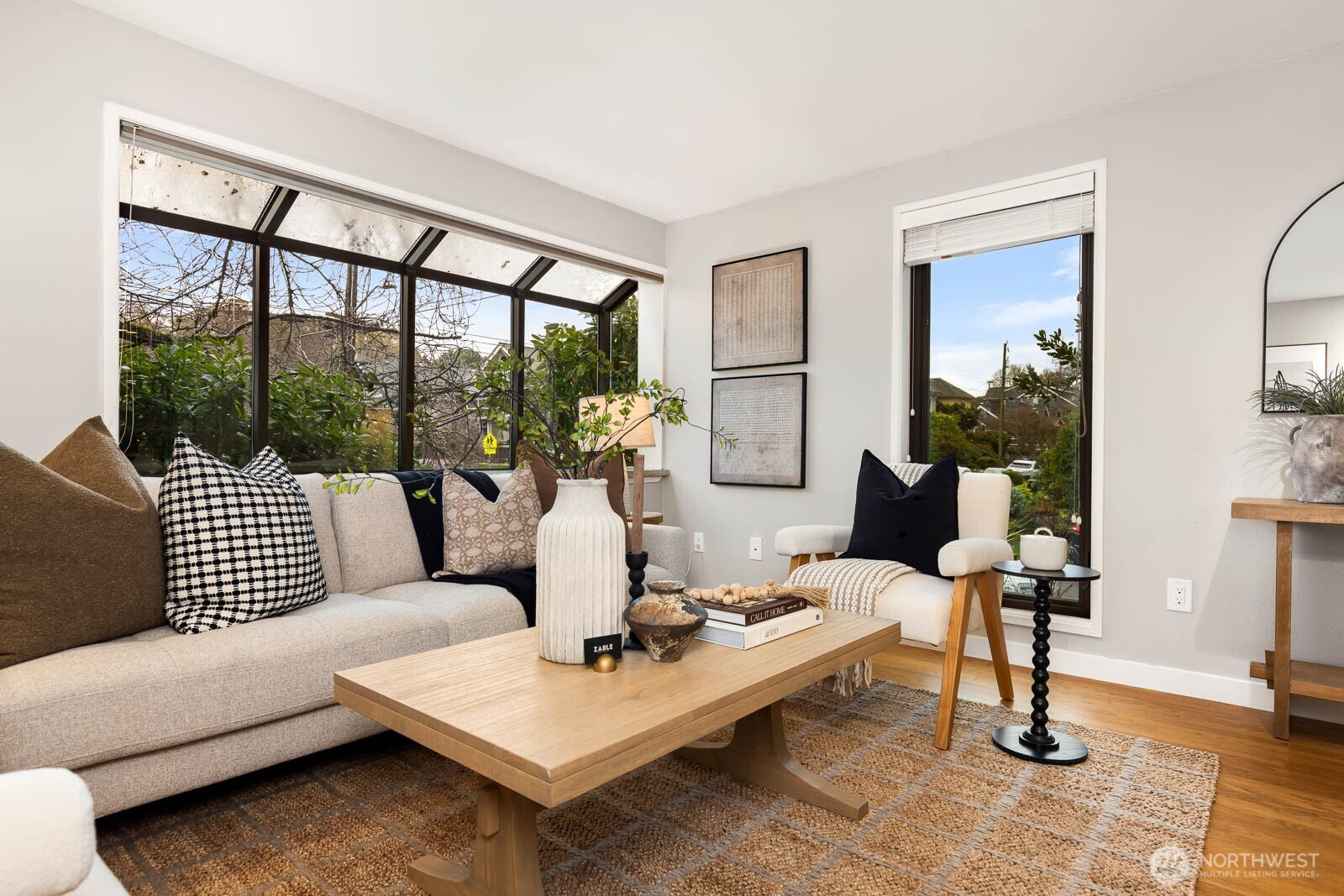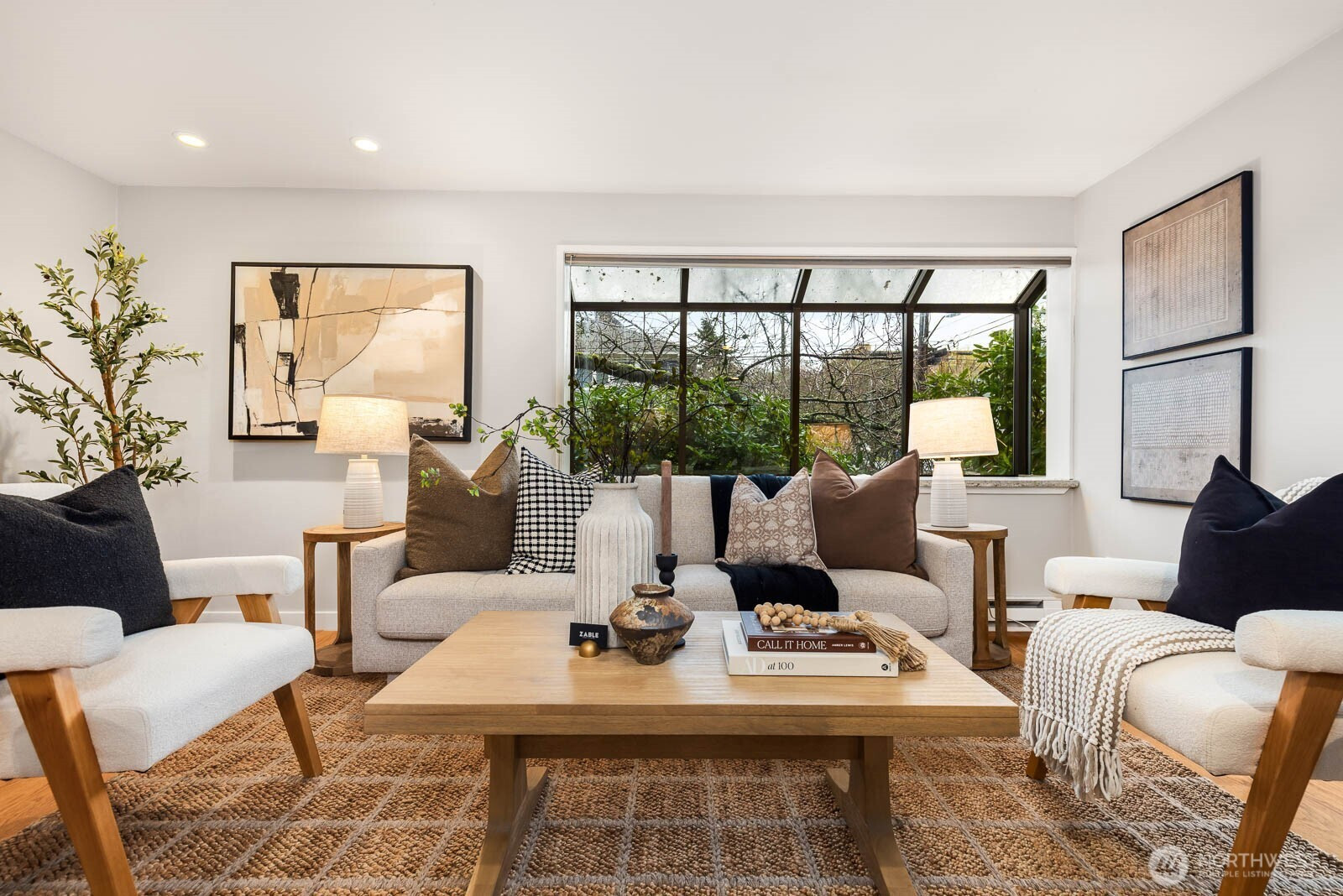 Delightful corner condo perfectly situated in the heart of Upper Queen Anne. Sun-drenched living room with expansive windows and a generous bay window frames serene greenery views. Contemporary kitchen shines with granite countertops, elegant backsplash, stainless steel appliances, highlighted by a Sub-Zero refrigerator. Rich hardwood floors flow throughout, complemented by a built-in bookcase, in-unit washer and dryer, generous closets, additional storage, and a dedicated parking spot. Open layout creates an inviting living and dining space ideal for everyday comfort and entertaining. Unbeatable walkable location to Queen Anne’s finest shops, cafes, parks, and amenities.