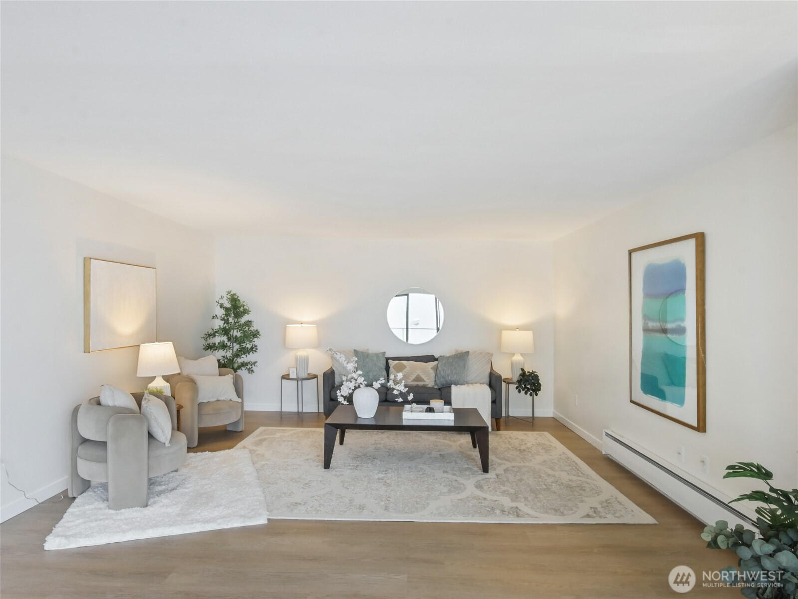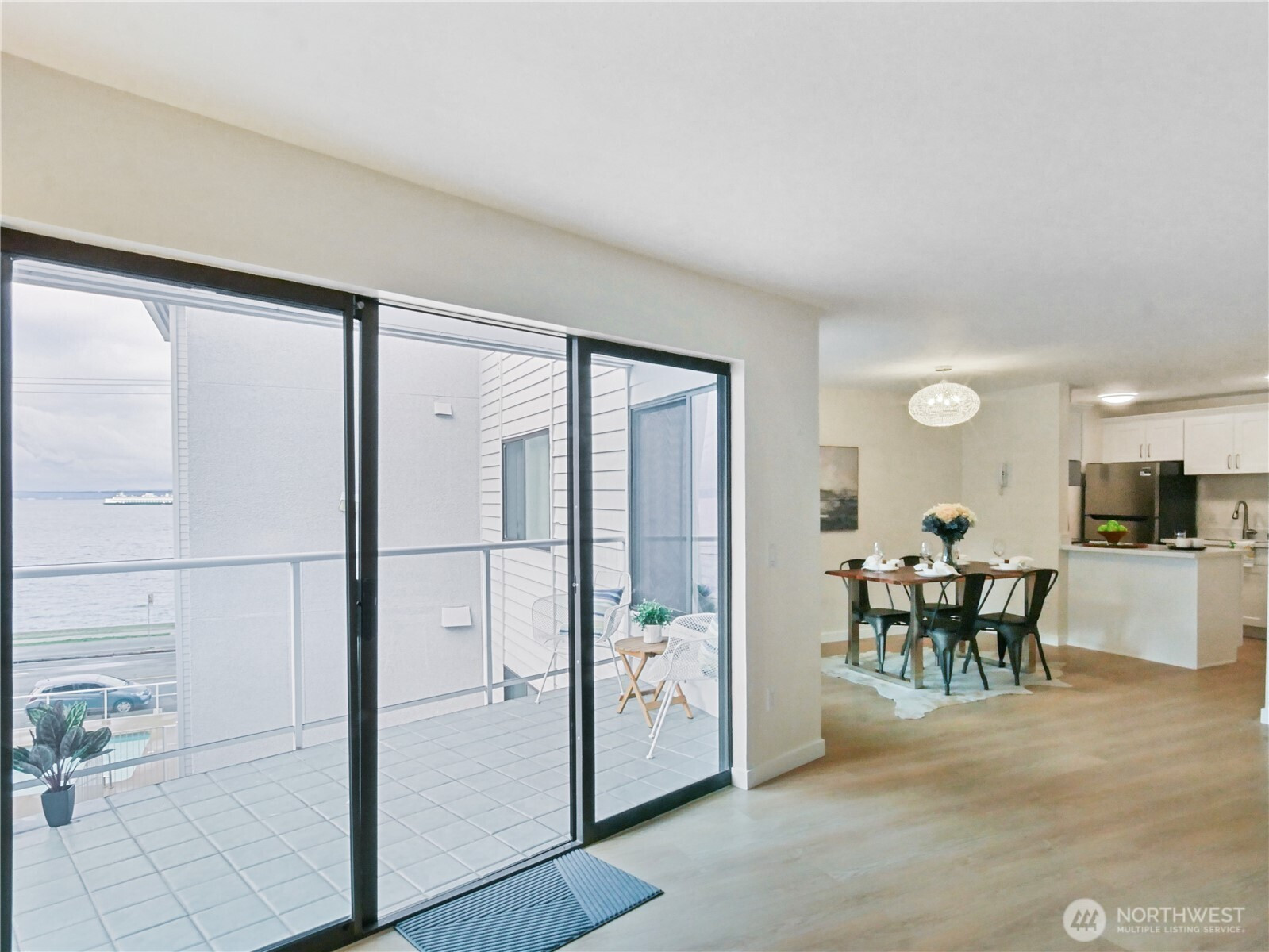 Wake up to Puget Sound & Olympic Mountain views at Alki Shores. This beautifully updated 3rd floor condo offers rare space, privacy & west-facing water views in one of Seattle’s most desirable beachfront communities. Fresh paint, new luxury vinyl flooring throughout, molding, lighting & fully refreshed kitchen with sleek quartz countertops, stainless steel appliances & new cabinetry for a bright coastal feel. Kitchen flows to dining and generous living room with wet-bar, ideal for entertaining & relaxing at home. Step onto the covered Sound-facing patio-enjoy sunsets & protected view. Spacious primary bedroom with with updated 3pc ensuite, versatile 2nd bedroom great for guests or office, refreshed full bathroom, full size WD, large pantry, extra storage spaces & dedicated parking. Amenities incl pool, sauna, exercise room, additional bike storage & secured building with large lobby and mail room. Steps to beach & cafes-PNW Beach living at it finest!