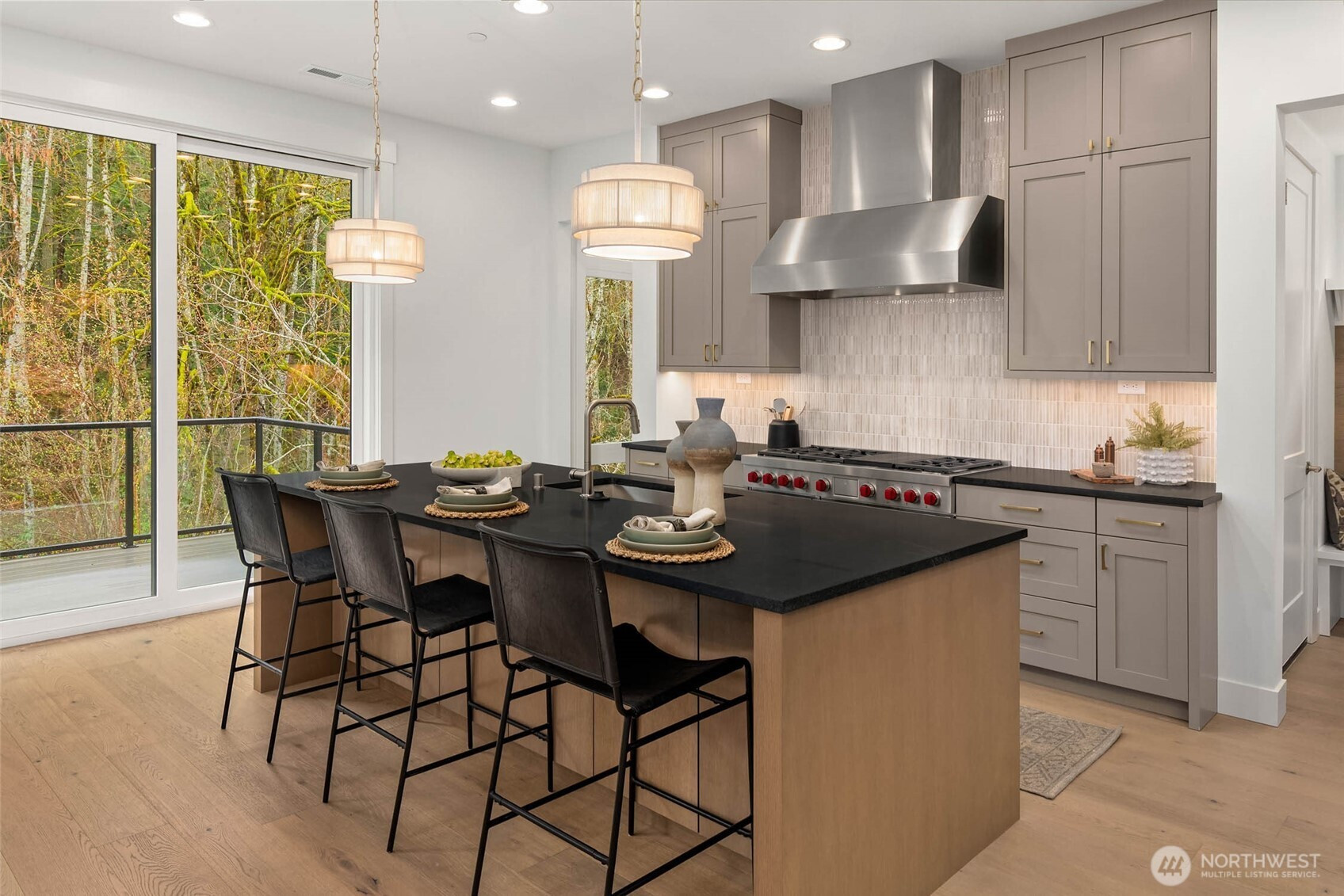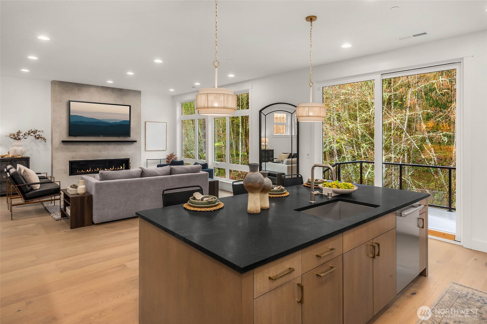 Just Completed Move In Ready Home in Steve Burnstead Constructions newest offering, Tibbetts Crossing. A stunning community of 20 custom NW contemporary homes on 21 acres with Tibbetts Creek serenely running through. The Kelsey Plan on lot 10 is a stunning 3,437 SF 5 Bed/4 Bath Custom Designed Residence on a Greenbelt Backing Light Filled Lot. Main floor flooded with natural light through Floor to Ceiling window walls and 10 Foot Ceilings. Home office/guest suite with 3/4 bath featuring mudset shower off vaulted foyer. Open Concept Great Room with dedicated dining space open to deck and greenbelt backing yard. Chef’s kitchen with Custom Cabinets and Premium Wolf/Sub-Zero/Cove appliance package, designer selected slab counters. Stunning Primary Suite with dramatic vaulted ceilings, fireplace, greenbelt views and Spa like bath one of 4 upper bedrooms. Spacious Rec-Room and Well Appointed Utility Room with slab counters, custom cabinets, and stainless steel sink. Installed and ready to save solar panels. Designer Curated fixtures and finishes throughout. A+ Location, Schools, Design, and Quality meticulously crafted for you by a trusted LOCAL name. This cutting edge community is nearly halfway sold out, additional presale opportunities also available
