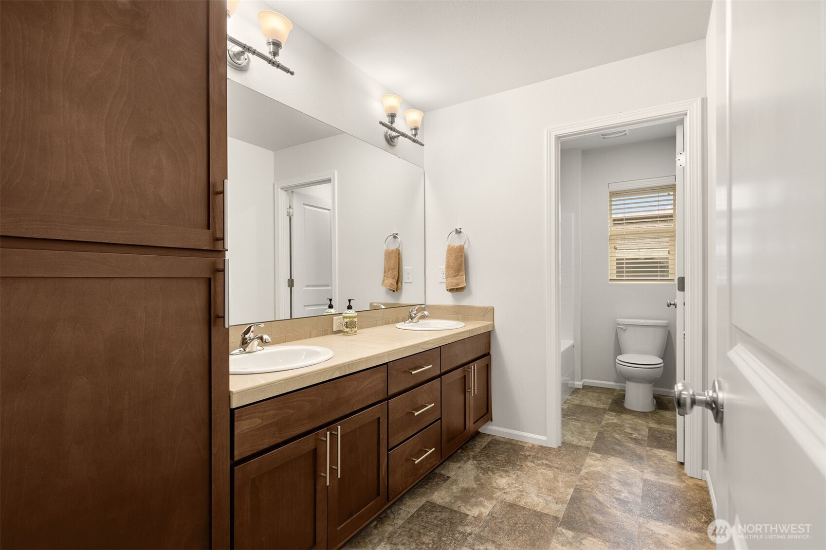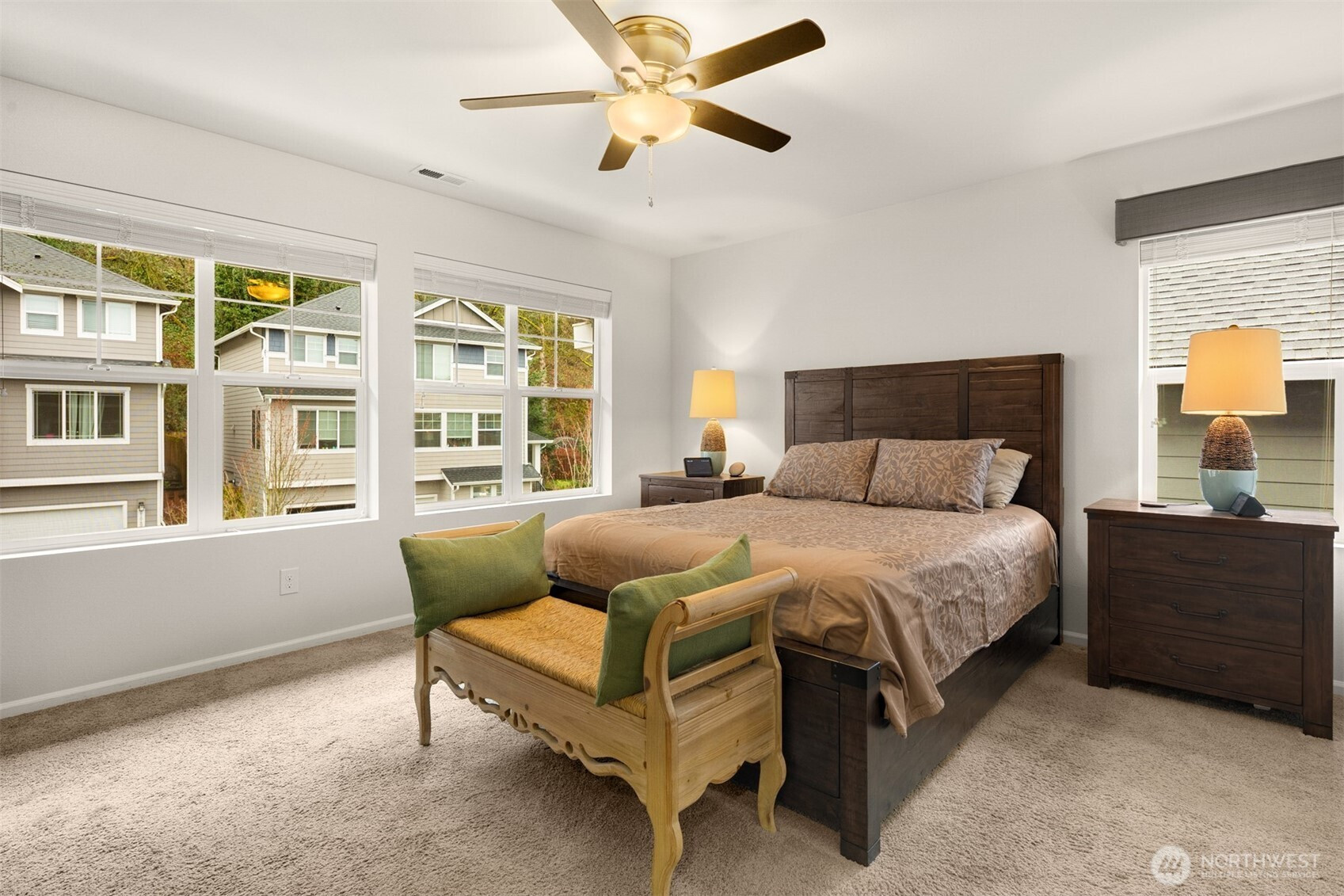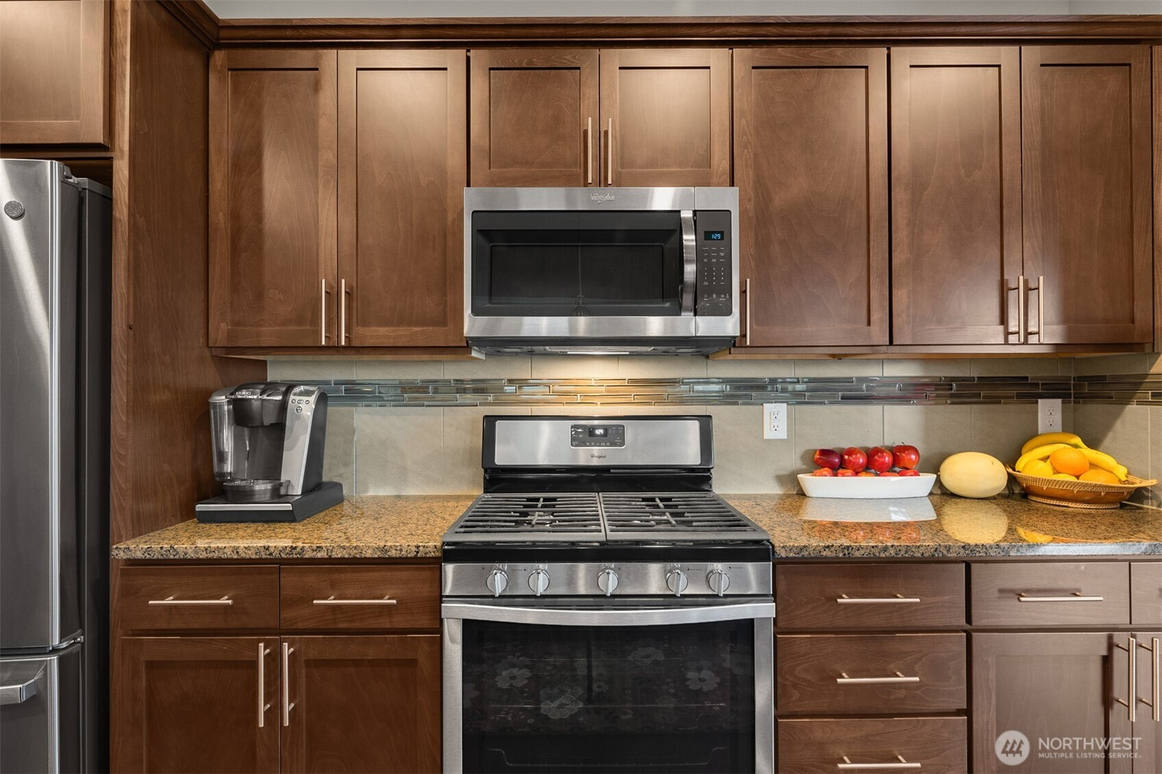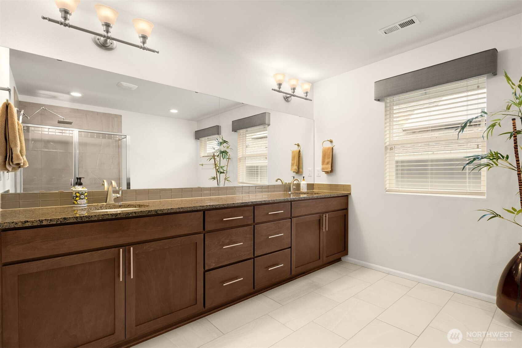 This beautifully charismatic stand-alone Craftsman with dramatic Mt. Rainier and valley views is an excellent example of one-owner pride of ownership and practical improvements to boot—making this a better-than-new, turnkey offering and exceptional value. Grand entry with impressive 2-story foyer. 5-bed/3.5-bath home (one of the most desirable floor plans and locations in Mountain View) with high-end finishes, immaculate wood floors, and a huge window count! Main floor features open-concept living with wall-to-wall hardwoods throughout, cozy gas fireplace in the living room, gourmet kitchen with an oversized island and gas cooking, dining room, powder room, and rare spacious covered balcony. Upper level with an expansive flex area, owner’s suite with walk-in closet and spa-like 5-pc bath. 3 spacious bedrooms, double-vanity full bath, and dedicated laundry room. Lower level with massive living space, 1-bed/1-bath, 9' ceilings, bonus finished room, and separate walk-out access to the fully fenced backyard with paver patio, low-maintenance turf, and hard-to-find views from the lower level—great flexibility to accommodate multi-generational living. A/C and wired for EV charging. Close to the community park. Minutes to I-5, the airport, and shopping.