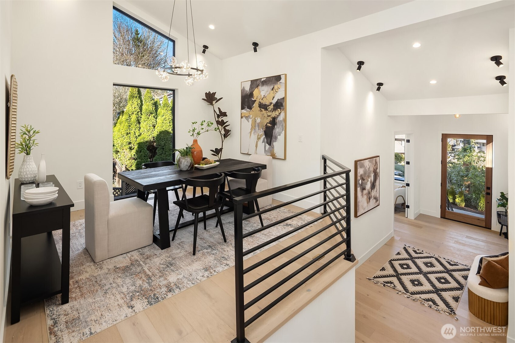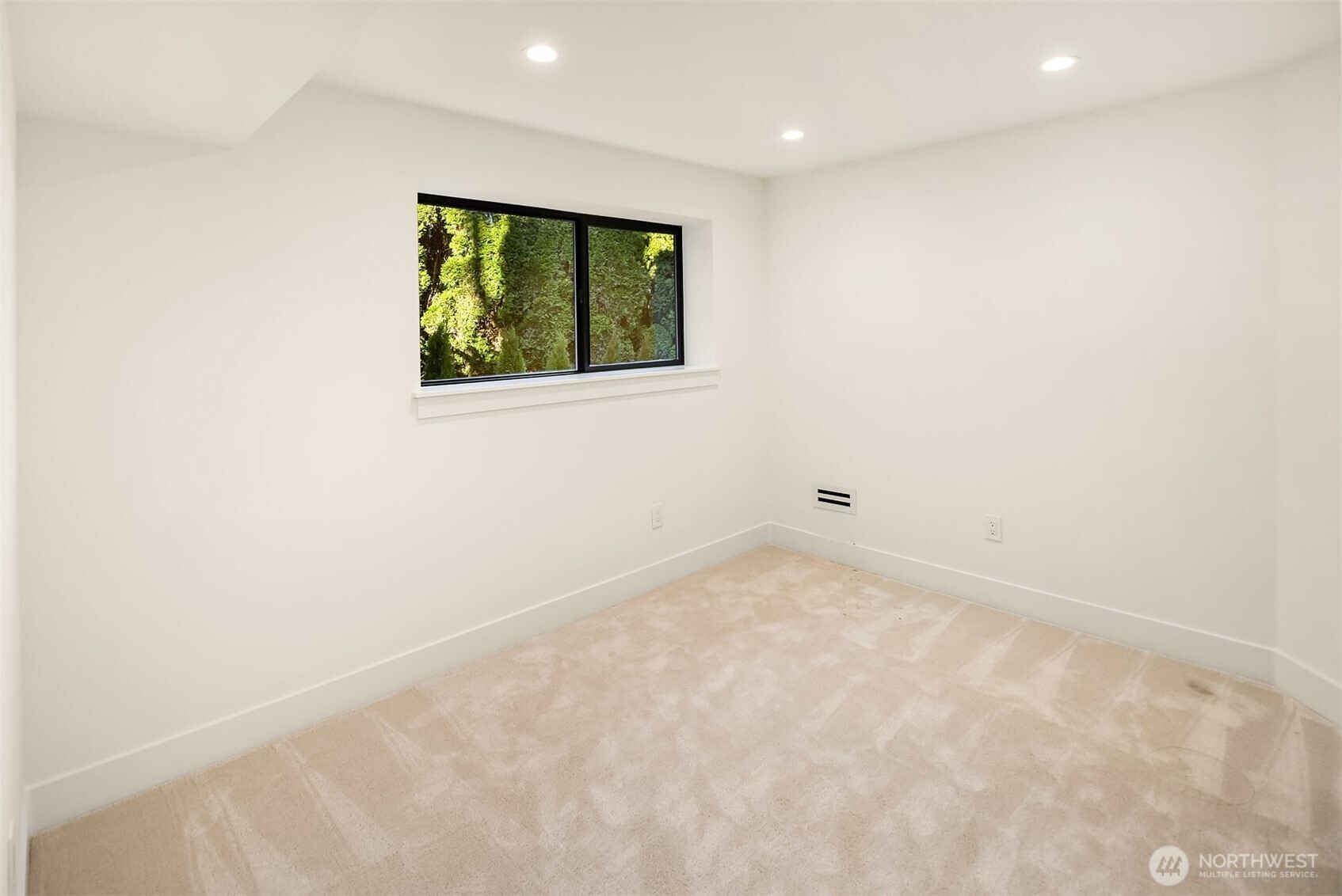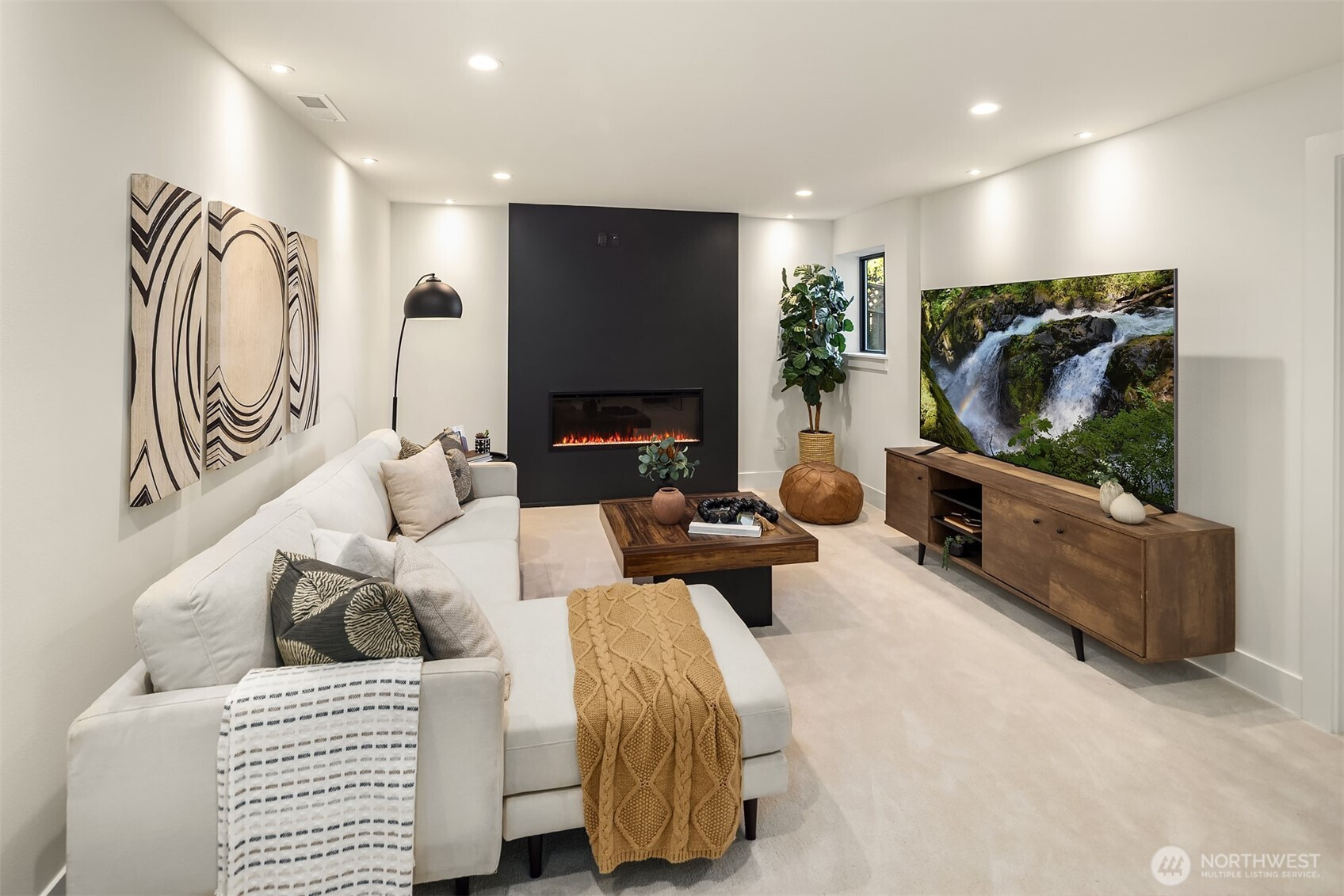 This beautiful high-end custom home is tucked away in a Bellevue cul-de-sac. Its high ceilings, large windows and strategically placed skylights allow plenty of sunlight to pour in. The open and spacious layout of the interior has 4 bedrooms, 4 1/2 bathrooms with heated flooring in the master bathroom, a spacious dining room area integrated with a modern kitchen, 4 state-of-the-art fireplaces, and a separate den that can be used as an office. The basement has its own bedroom, bathroom which could be a multi-generation living. Central A/C. Two-car garage with extra space for storage or workshop. Luxurious interior and exterior finishes throughout. Surrounded by beautiful greenery with a patio that provides privacy. Living here, you'll be minutes away from I-405, I-90 and downtown Bellevue
