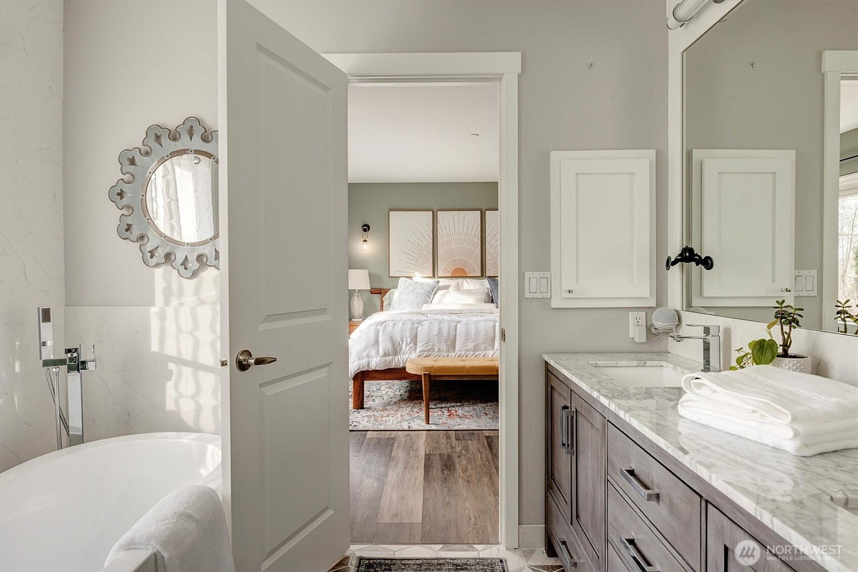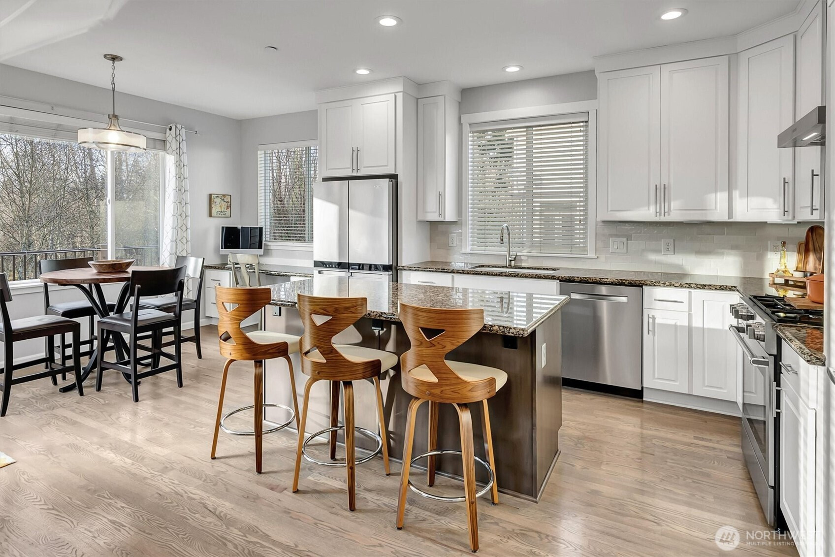 Step into this beautifully updated Kennydale home nestled on a sweet and quiet cul-de-sac, backing to serene greenery. This impressive three-level residence offers 6 bedrooms/3.5 baths, 3034 sq ft of generous, flexible living spaces designed for today’s lifestyle. From the moment you enter, you’ll appreciate the bright, open feel created by tall ceilings and west-facing natural light. The open-concept main level seamlessly connects kitchen, dining, and living areas—ideal for everyday living and effortless entertaining inside and out! The recently + PERFECTLY remodeled kitchen and bath(s) showcase timeless finishes and modern functionality. Upstairs, bedrooms offer privacy and comfort, while the lower level expands your options with versatile bonus/FLEX space simply ideal for a media room, game room, home gym, MIL and multi generational living too! Outdoor living is equally inviting with two ENTERTAINMENT sized, west facing Terra tech-decks, a low-maintenance turf side yard + patio ALL surrounded by a wetlands protected reserve and gorgeous greenery! Lake Washington parks + beaches are minutes away as well as miles and miles of fun trails. Simply MINUTES to I-405, Bellevue, Seattle, and beyond! This special home delivers the perfect balance of space, comfort, and location. This is the home you have been searching for!