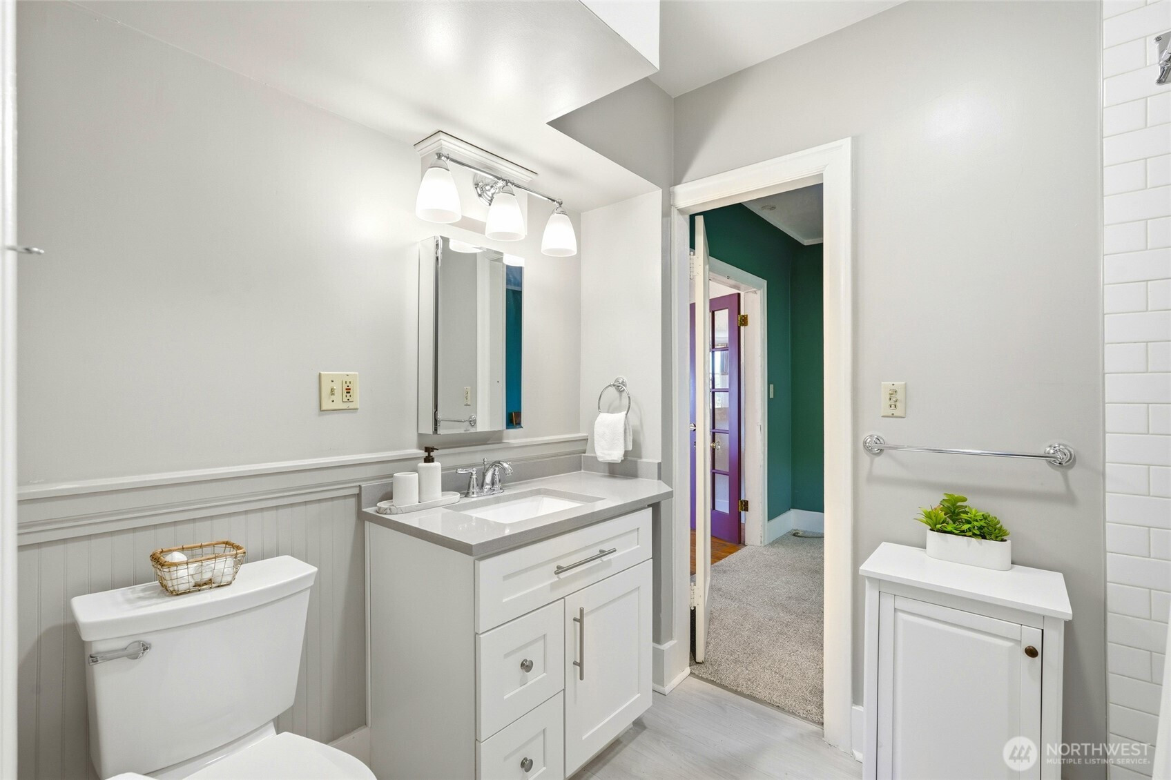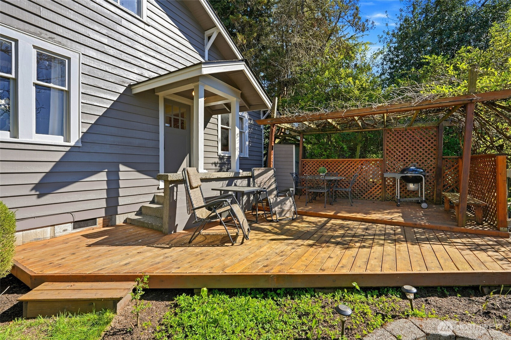 Perched on Talbot Hill, this lovingly maintained 105-year-old home blends timeless charm with meaningful updates. A newer roof (2024), water heater (2023), and new sewer line, plus refreshed bathrooms (Kohler shower, tile floors, updated vanity, and modern fixtures), make this home move-in ready. A newer electrical panel, A/C, and brand-new carpet in the main floor primary bedroom add comfort and peace of mind. You’re greeted by an oversized sun porch that lives like an additional living space year-round. Inside, the living room centers around an electric fireplace. To the left is a main floor bedroom with beautiful French doors and a full bath. Just beyond, a versatile bonus area doubles as a utility room with washer and dryer plus a built-in desk - ideal for a home office or extra storage. Both spaces are filled with large windows and abundant natural light. The main floor features a circular layout for easy flow. The kitchen connects seamlessly with an eating bar overlooking a large window and opens to the formal dining area. Upstairs offers two additional bedrooms and a 3/4 bath. Outside, enjoy mature landscaping, a large entertaining deck, a serene pond, and a trellis wrapped in climbing vines. An oversized one-car garage adds convenience and storage. Fresh exterior paint enhances curb appeal, with easy access on and off Talbot Hill and close proximity to Valley Medical Center, Sea-Tac Airport and downtown Renton. A true Renton classic, cared for the right way!