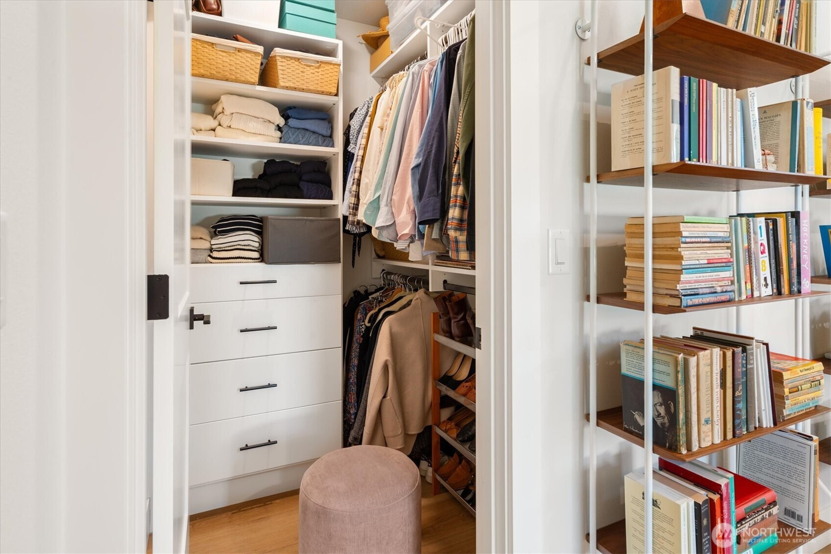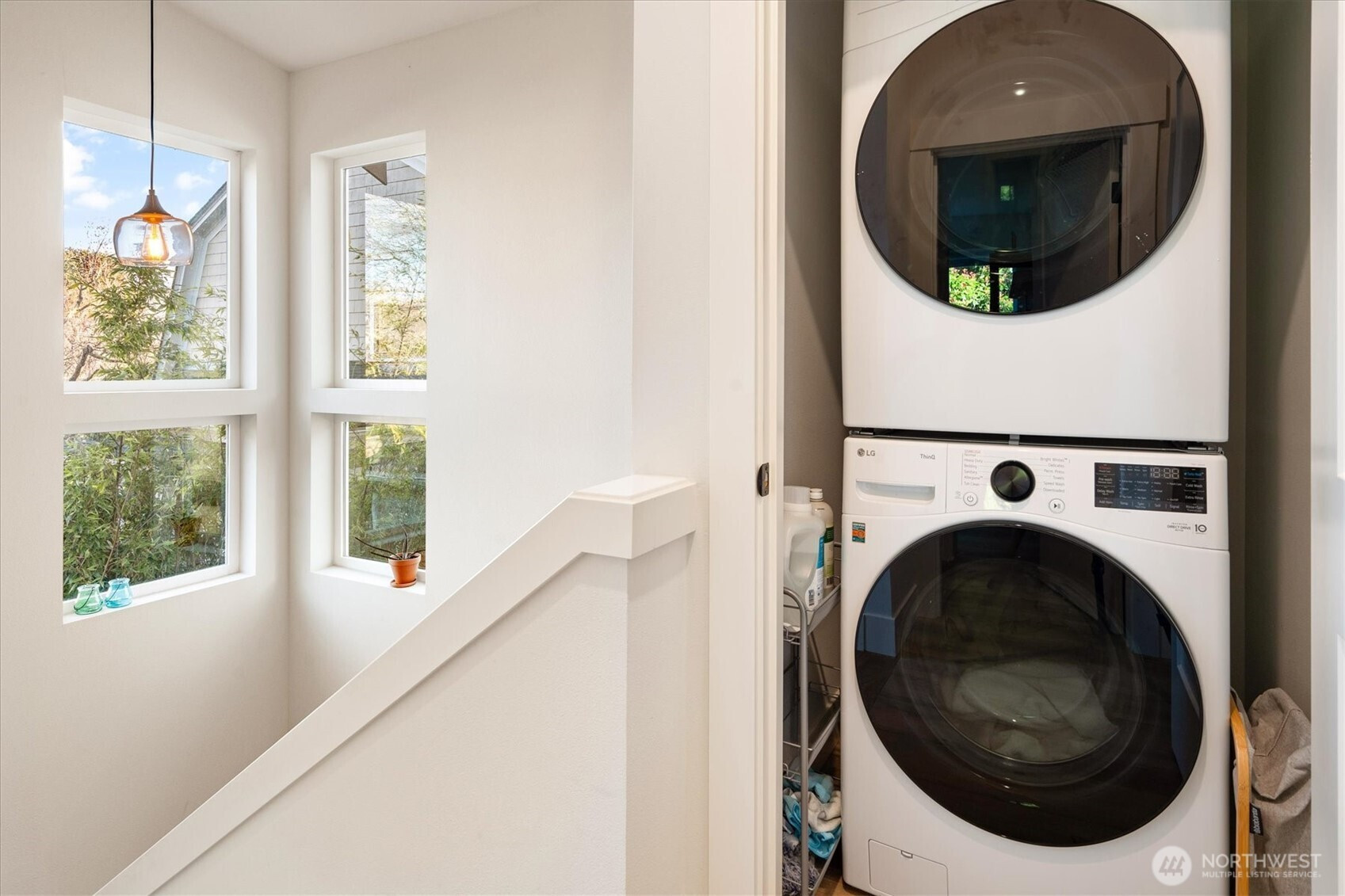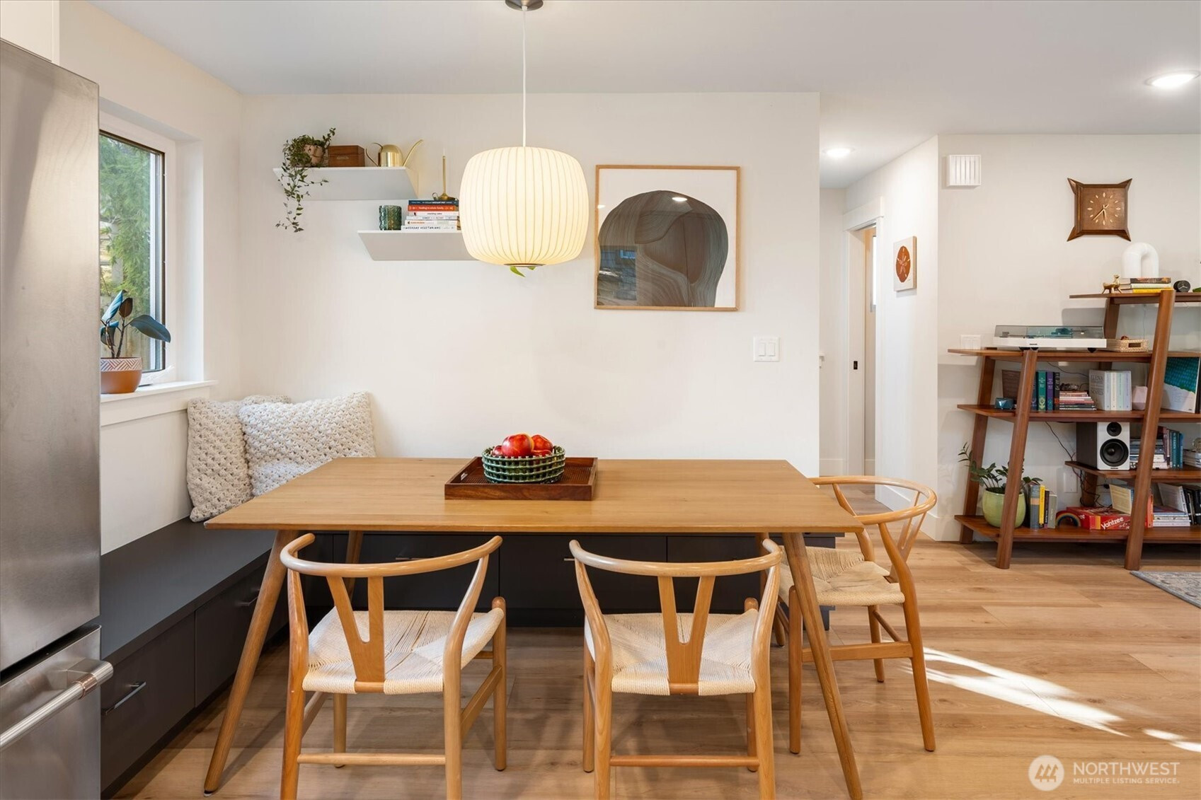 Very nearly new and in the heart of Wallingford, this quality detached home by a local builder offers quiet and privacy while living in a neighborhood alive with fantastic people, groceries, restaurants, cafes, and activities. Inside, the home lives large thanks to tall ceilings and wide-plank flooring that runs throughout both levels and stairs. The kitchen has everything; barely used stainless appliances and abundant counter and storage space. The dining area is large enough for your favorite table with room for 6+ and the built-in storage benches make the most of this well designed space. The spacious and light-filled living room opens to a private, fenced yard and deck which perfectly extends the space of the home. Upstairs there are two bedrooms, a full bath for each, and the laundry closet, appliances stay. The primary suite has a generously sized walk-in closet and its own full bath is beautiful. Small details make a big difference here, like the shower tile and each bedroom's custom closet organizers. A heat pump and mini-splits provide both heating and A/C to keep things comfortable year-round. The home also has its own off-street parking stall with an EV charger installed. An excellent find at a great price for Wallingford!
