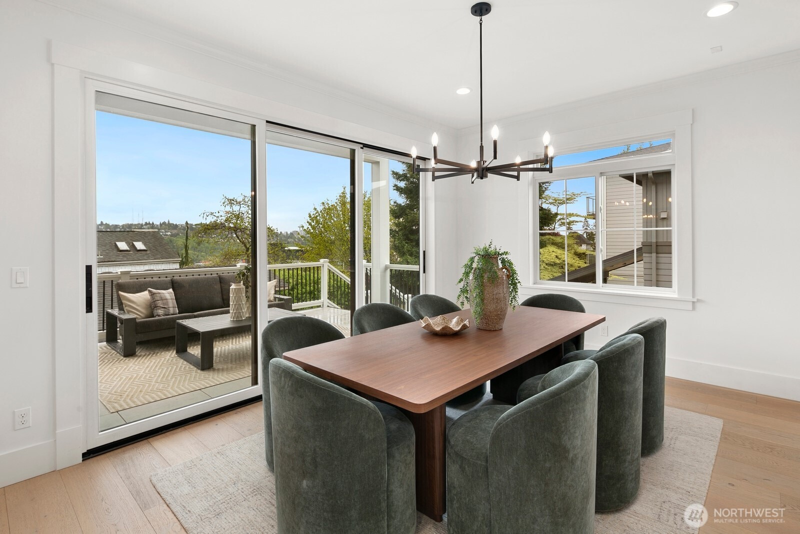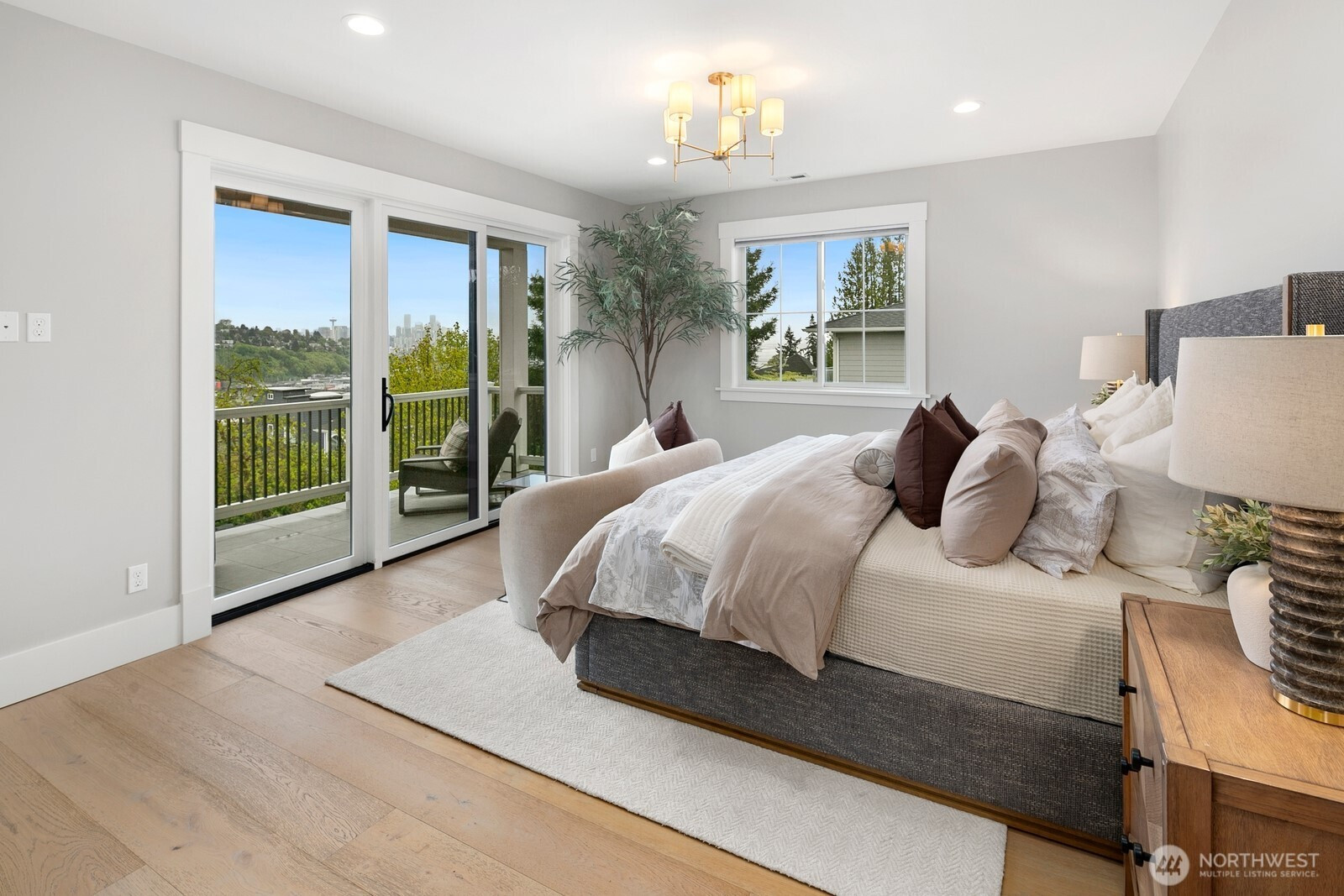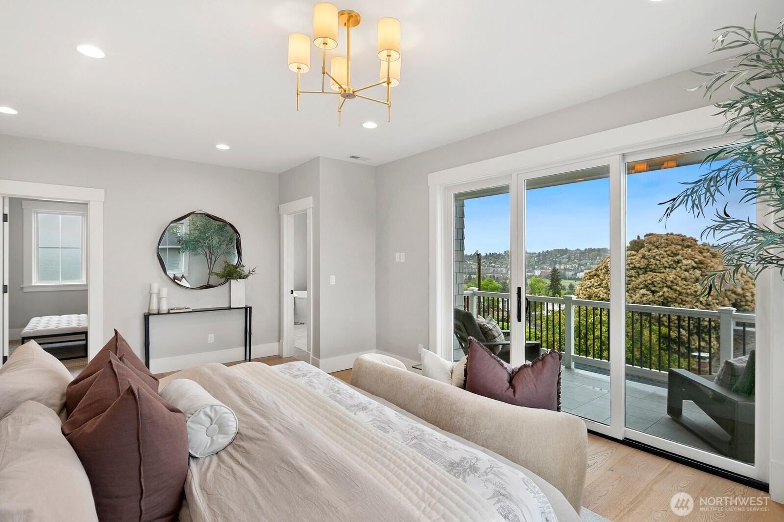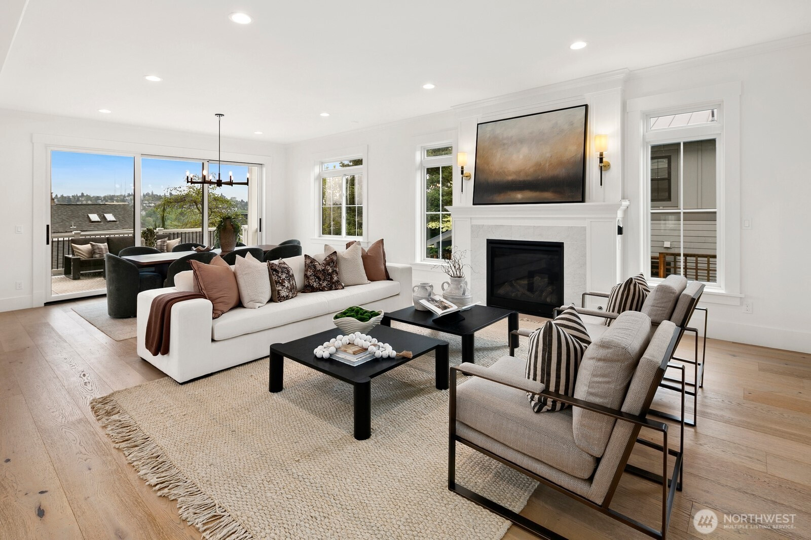 Experience a 2021 custom masterpiece by a local Magnolia builder, where architectural precision meets panoramic views of the city, mountains, and Puget Sound. This 3,864 sqft residence balances designer finishes with effortless functionality, just two blocks from Magnolia Elementary and Ella Bailey Park.The main level is an entertainer’s dream, featuring tall ceilings, engineered hardwoods, and a living room anchored by a custom-tiled gas fireplace. The chef’s kitchen - boasting an oversized island and full custom cabinetry - transitions seamlessly through 9’ La Cantina multi-fold sliders to a massive covered deck.The top floor offers four bedrooms including a primary suite with Sierra Pacific sliders, a private view balcony, 5-piece spa bath and walk-in closet. With 6 bedrooms in the main home, the layout is enhanced by a legal 880 sqft 2 bed ADU - perfect for rental income or guests. Includes 4kW solar, ductless AC, and a 2-car garage. The pinnacle of Magnolia living.