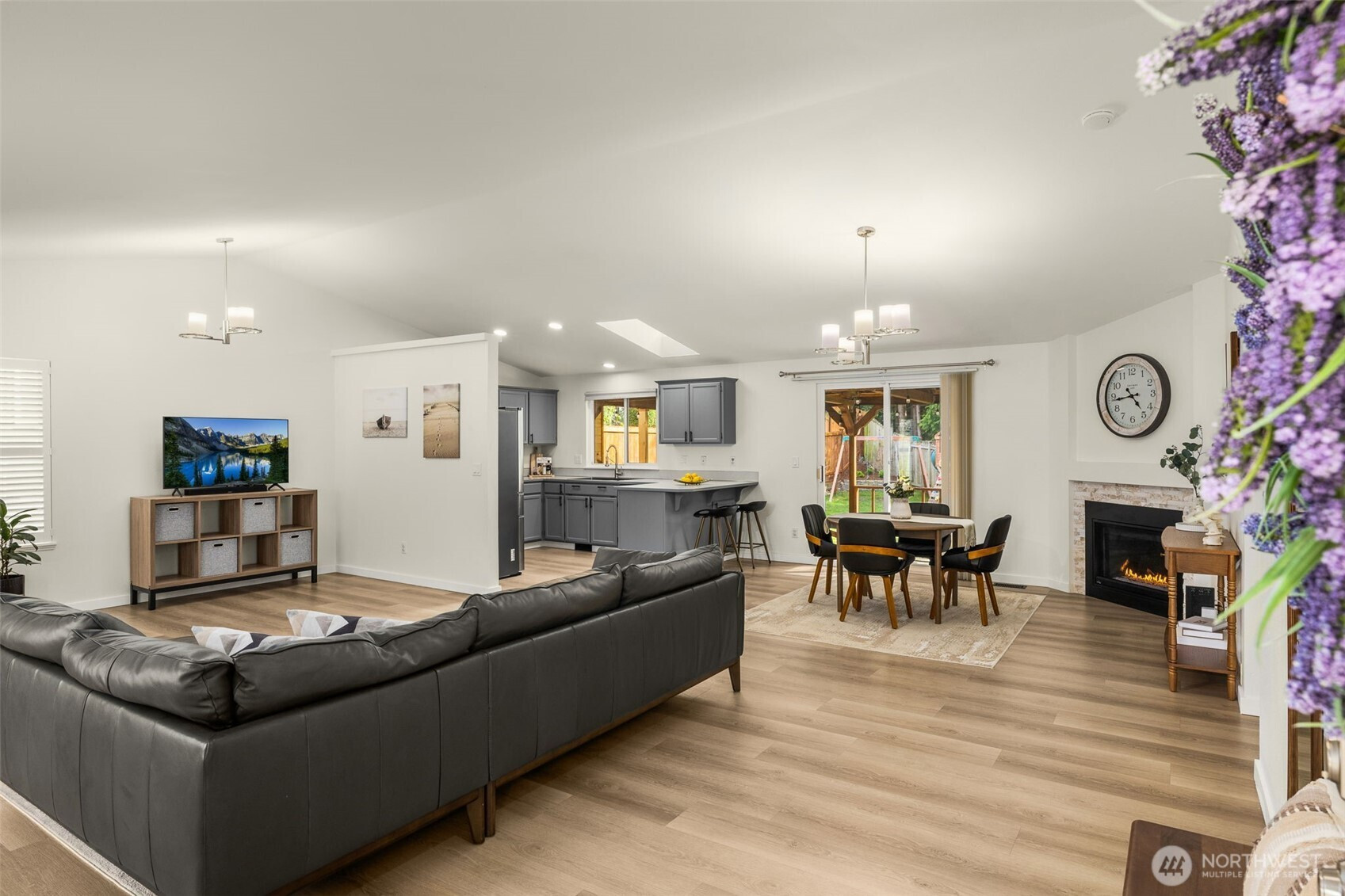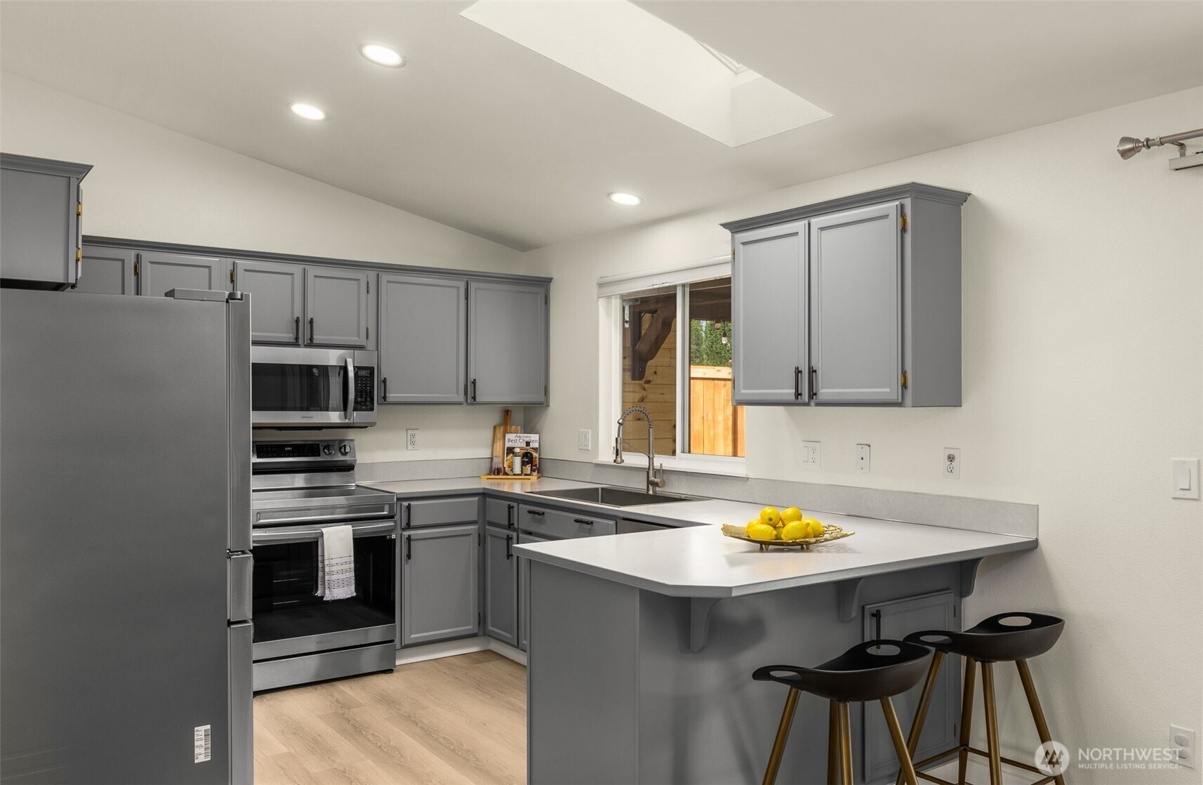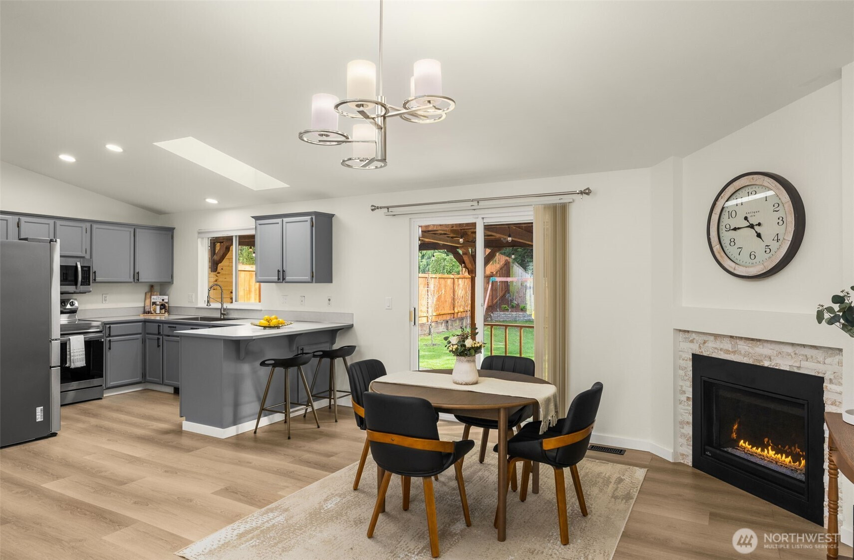 Beautifully updated and move-in ready, this home offers the perfect blend of comfort, space, and lifestyle with NO HOA! Soaring vaulted ceilings and a sun-filled bay window create a bright, inviting living area, while the open kitchen flows seamlessly into the family room, ideal for everyday living and entertaining. The spacious primary suite features a walk-in closet and a private bath with double sinks. Step outside to a fully fenced backyard with a covered patio, perfect for relaxing or hosting year-round. Expanded driveway and side access offer rare parking for up to 7 vehicles, RV, or boat. Enjoy peace of mind with major updates, including newer roof, heat pump, furnace, tankless water heater, flooring, and new stainless-steel appliances. Professionally landscaped with privacy trees, custom gates, retaining wall, and outdoor features designed for enjoyment. Conveniently located minutes to Lake Wilderness Park, trails, shopping, dining, and Hwy 18, in the award-winning Tahoma School District. Pre-inspected, turn-key, and ready to welcome its new owner!