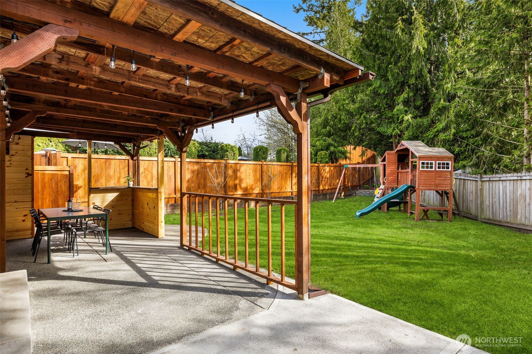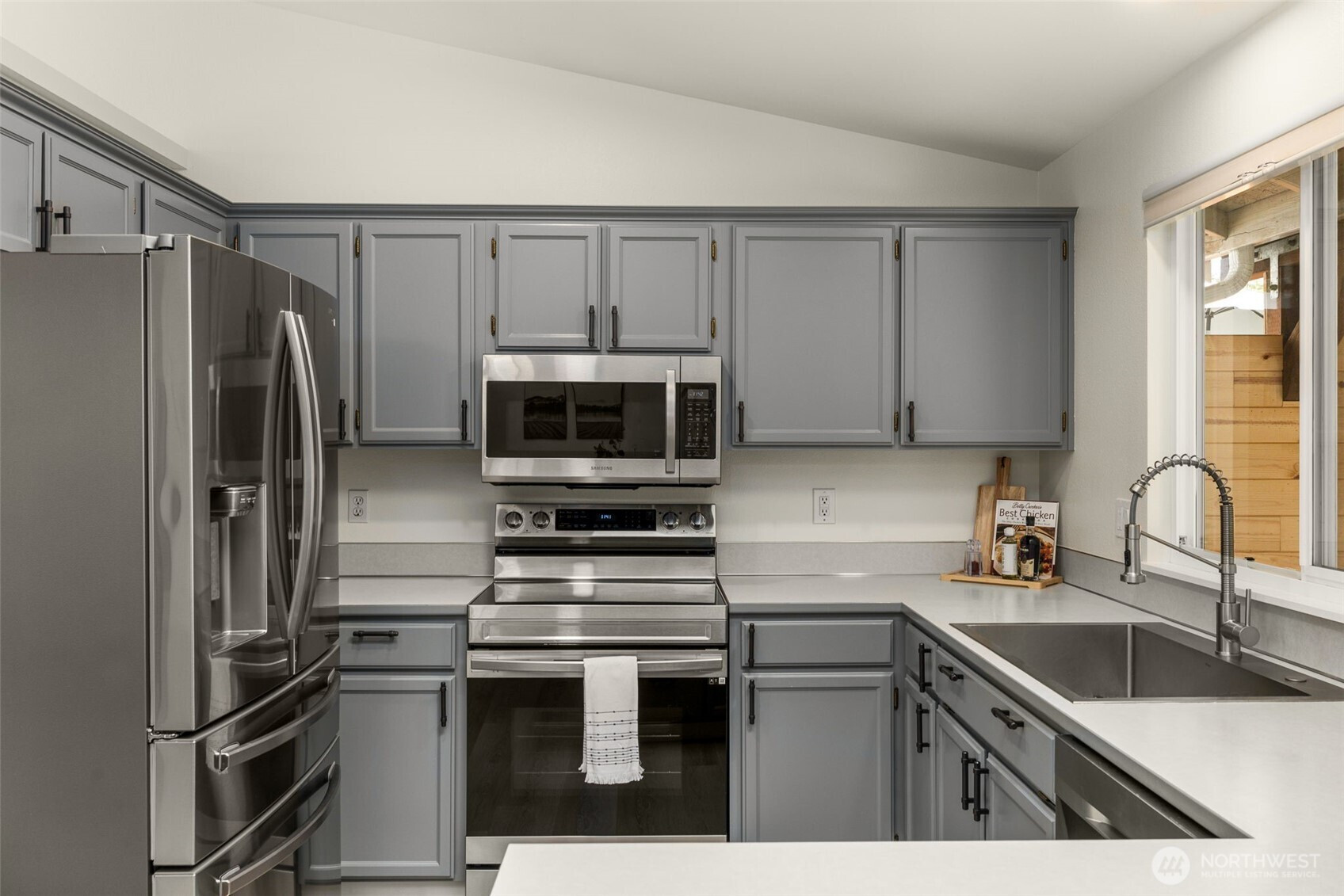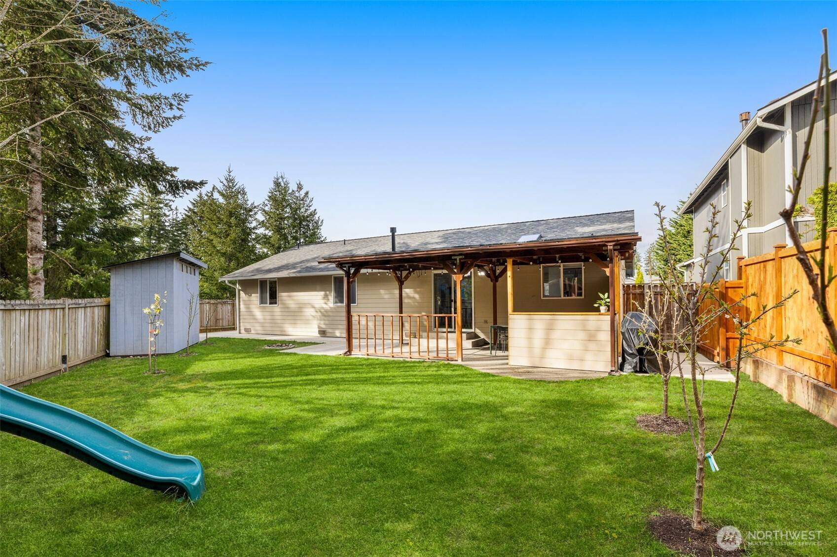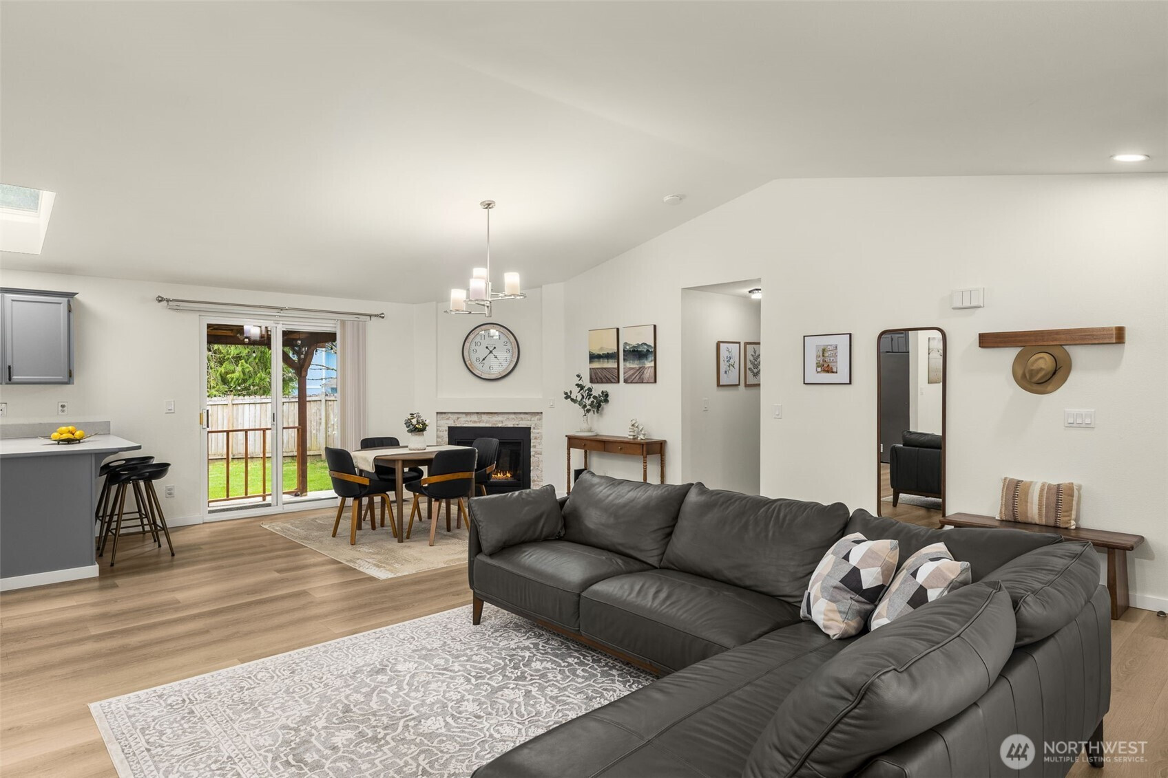 Beautifully updated and move-in ready, this home offers the perfect blend of comfort, space, and lifestyle with NO HOA! Soaring vaulted ceilings and a sun-filled bay window create a bright, inviting living area, while the open kitchen flows seamlessly into the family room, ideal for everyday living and entertaining. The spacious primary suite features a walk-in closet and a private bath with double sinks. Step outside to a fully fenced backyard with a covered patio, perfect for relaxing or hosting year-round. Expanded driveway and side access offer rare parking for up to 7 vehicles, RV, or boat. Enjoy peace of mind with major updates, including newer roof, heat pump, furnace, tankless water heater, flooring, and new stainless-steel appliances. Professionally landscaped with privacy trees, custom gates, retaining wall, and outdoor features designed for enjoyment. Conveniently located minutes to Lake Wilderness Park, trails, shopping, dining, and Hwy 18, in the award-winning Tahoma School District. Pre-inspected, turn-key, and ready to welcome its new owner!