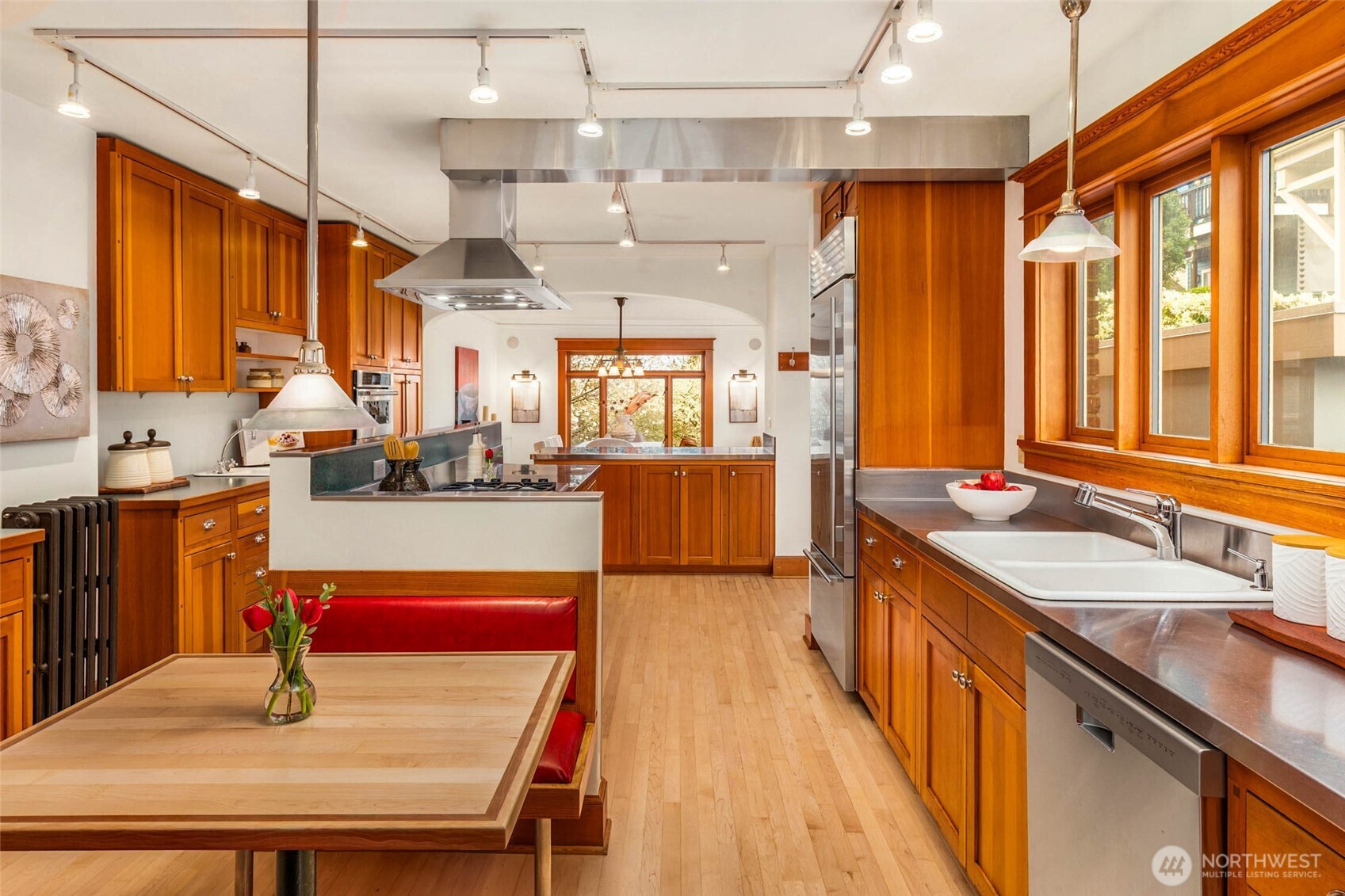 (503) 893-8874Offered for the first time in 40 years, this remarkable home in the heart of Wallingford blends historic character with striking architectural design. Originally built in 1927 and thoughtfully transformed into a stunning single-family residence with extensive upgrades throughout, the home is beautifully positioned to capture panoramic views of Lake Union and the Seattle skyline. Exceptional craftsmanship and custom design define the interior. Vertical grain fir trim, maple and bamboo floors, and abundant wood windows fill the home with warmth and natural light, while a sculptural steel and maple staircase serves as an architectural centerpiece. Designed for everyday living and entertaining, the chef’s kitchen features Sub-Zero refrigeration, double wall ovens, stainless steel countertops, custom fir cabinetry, and an inviting built-in banquette. A hidden passive wine cellar stores up to 750 bottles, while a daylight MIL suite with a separate entrance offers flexibility for guests, extended living, or potential rental income. The upper level enjoys sweeping lake and skyline views and hosts a serene primary suite with a custom-designed bath and two private outdoor spaces—a hot-tub-ready deck and a sunny south-facing terrace with 180-degree views, perfect for gardening. Ideally located just blocks from Wallingford’s restaurants, parks, the Burke-Gilman Trail, and Lake Union—a rare opportunity to own one of Wallingford’s most distinctive and thoughtfully crafted homes.