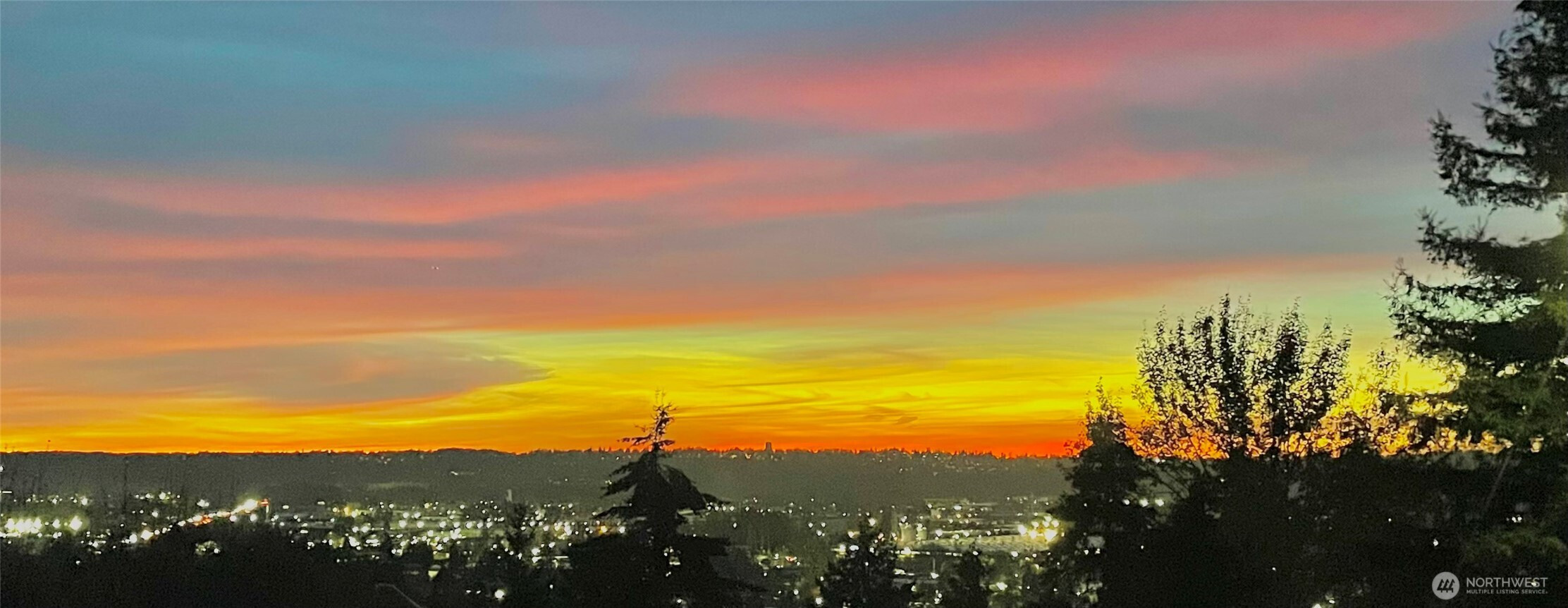 VIEWS FOR DAYS. Situated perfectly on the hill to take full advantage of the captivating vistas. VIEWS of City/City lights, Valley, Olympic Mountains & STUNNING Sunsets. WESTERN exposure fills this home w/SUN. Lovingly maintained by 1 owner 22 yrs. Spacious & PRIVATE corner lot, culdesac location. Expansive hardwood floors, voluminous ceilings throughout, wood wrapped windows, entertainers dream kitchen, granite, huge island, sep eating bar, inviting family room, cozy fireplace, viewing deck, newer hot tub. Primary bdrm w/dual closets, ensuite bath, rec room, office/bonus room, built-in bookcases. Potential income MIL/ADU, 2nd kitchen, 9 FT ceilings, sep entry. 4 bathrooms, see agent remarks. Near 167, 405 & all amenities.