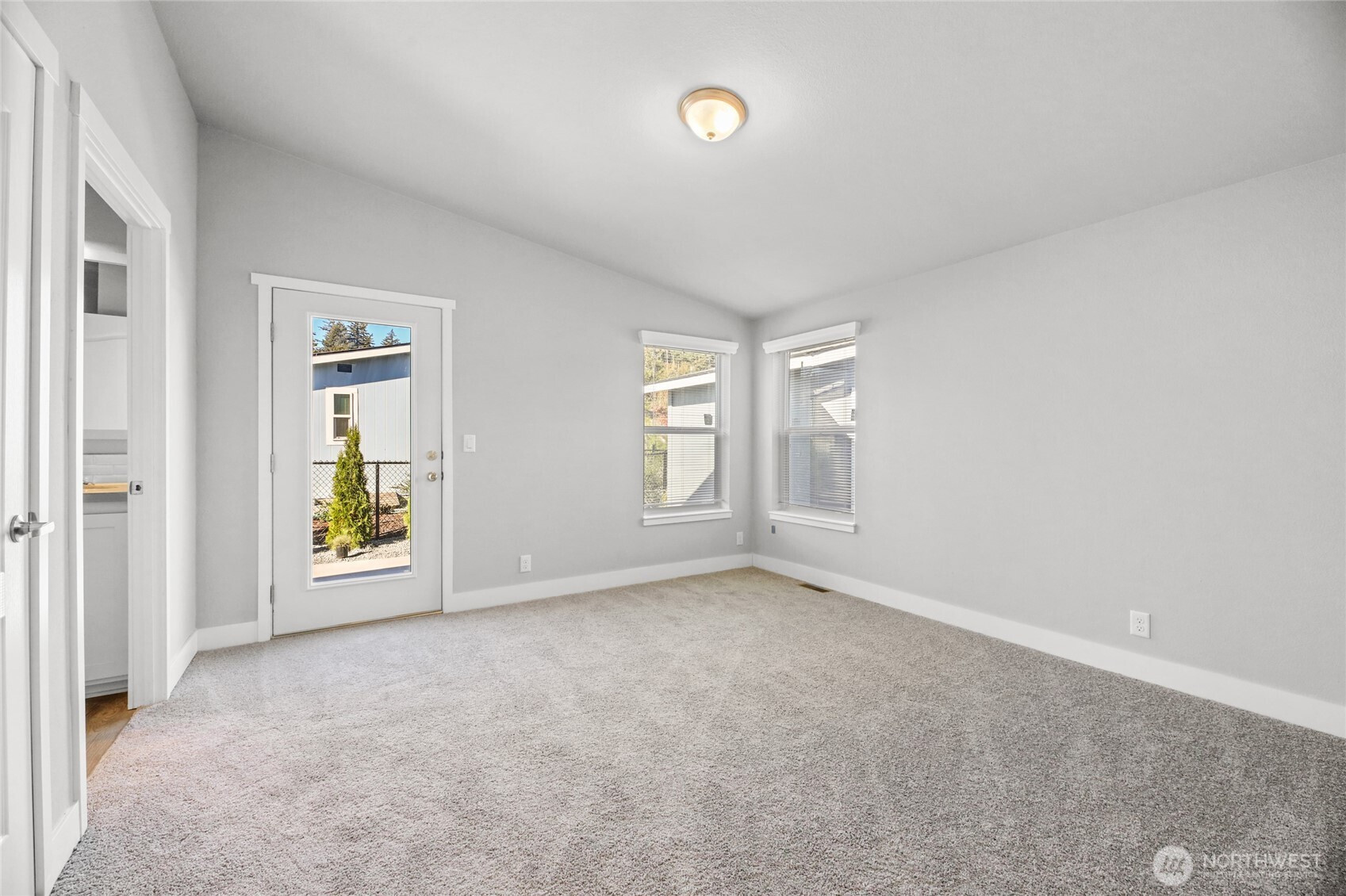 Welcome to Crystal Mt MHC, a gated 55+ land-lease community! Pass through the gates and fall in love with the Wilmington—an all-new floor plan and the first of its kind offered for sale featuring an attached garage and a spacious front porch. The large, stunning front porch adds standout curb appeal and is perfect for relaxing. Inside, a highly desired open-concept layout offers 2 bedrooms plus a flex space ideal for an office, bedroom, or den. The kitchen features stainless steel appliances, a stainless steel front apron sink, gas range, two-tone cabinetry, quartz island, drop pendant lighting, can lighting, and a recessed ceiling with whitewashed beams. The space is filled with natural light throughout. The primary suite includes a walk-in closet, double sinks, and a walk-in tile surround shower. Front and back landscaping are included—with time for buyer input—and a fenced yard will be completed. Buyer to select LVP flooring. Enjoy community perks like bocce ball, raised garden beds, a dog park, and more, all conveniently located adjacent to the golf course and close to town. Buyers are welcome to work with their own broker. To be eligible for seller-paid compensation and client representation, the cooperating broker must accompany and register the buyer at their first visit to the community. This home is still under construction and projected to be completed in 4 weeks.