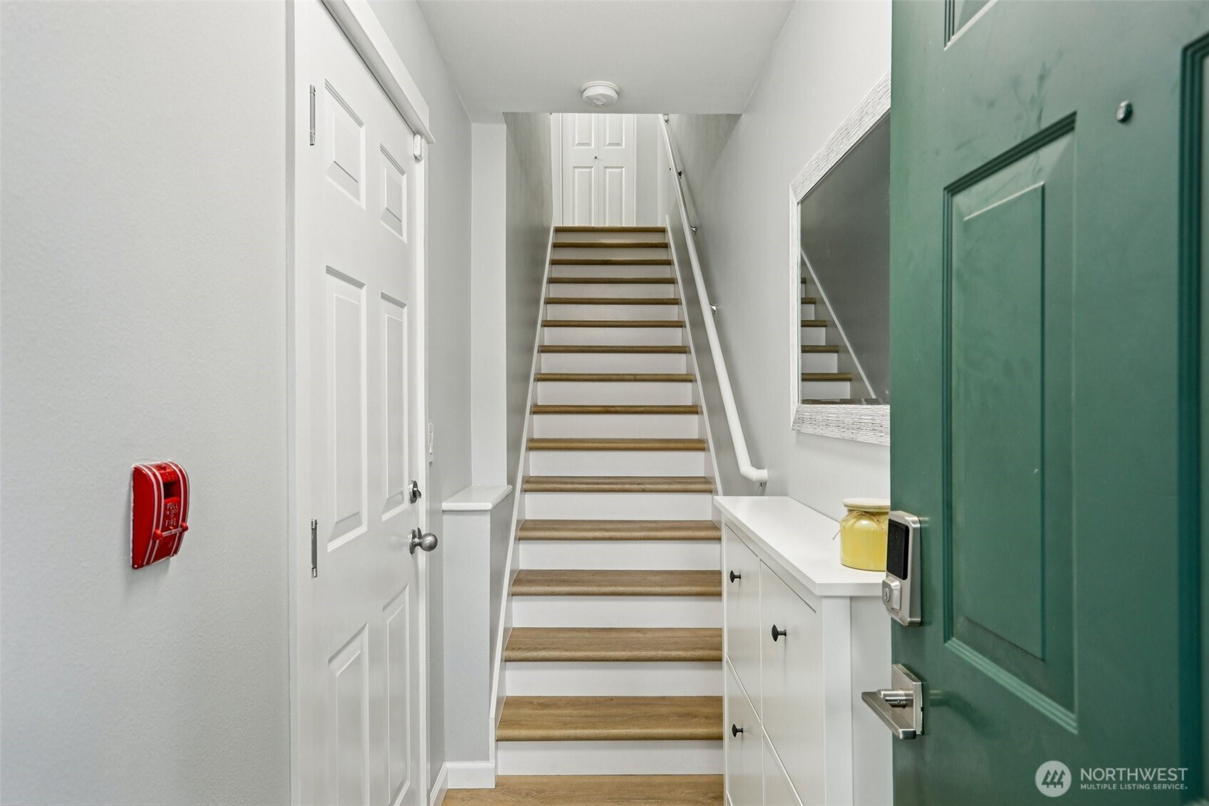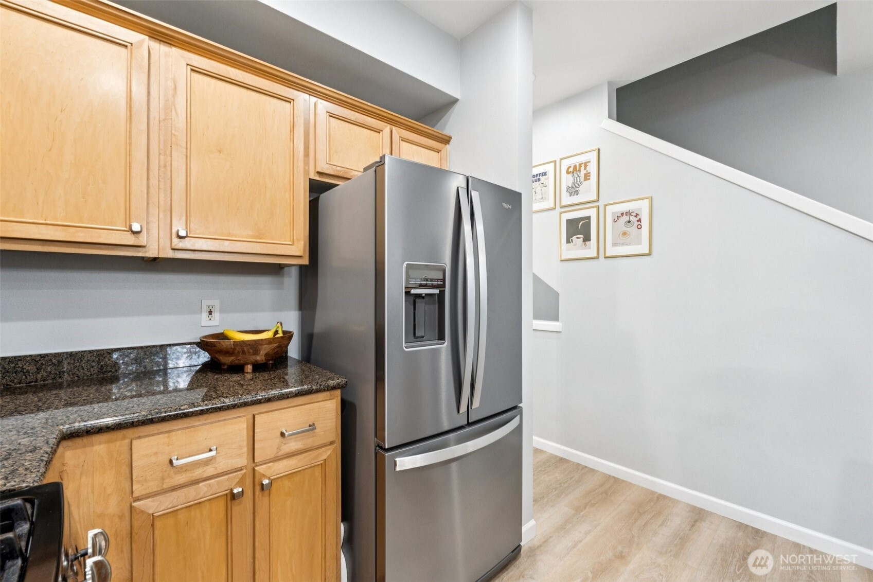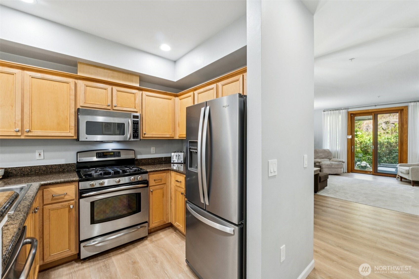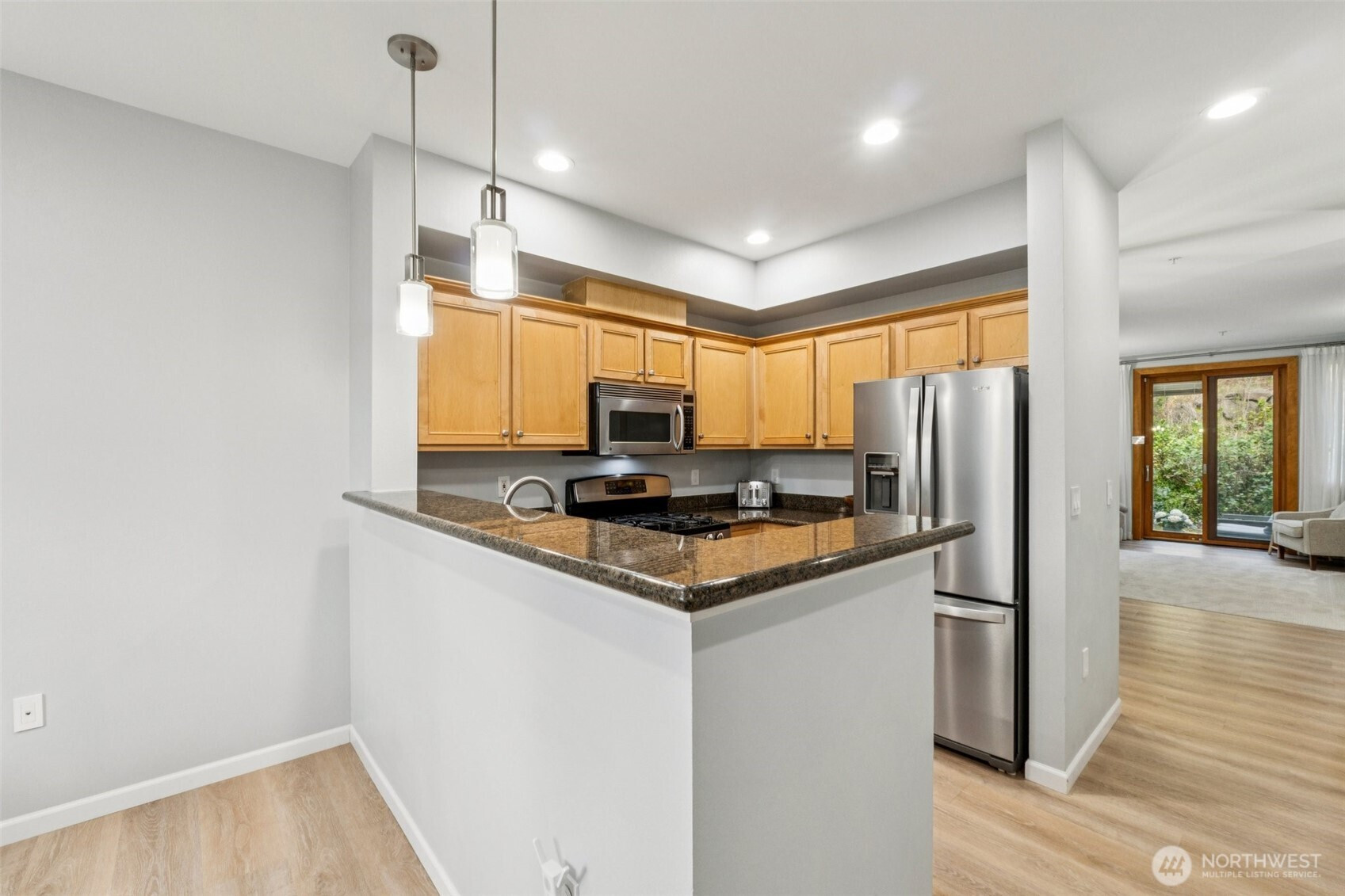 Find this warm and inviting, recently updated 2-bedroom, 2-bath townhouse-style condo at Peregrine Point. Wake up to peaceful Lake Sammamish views with easy access to local amenities and the freeway. Directly across the street, enjoy the fully paved 11-mile East Lake Sammamish Trail—perfect for walking, running, or biking. The open-concept main level features a cozy gas fireplace, radiant heated floors, updated wide-plank LVP flooring, gas cooking, a dining area, and newly installed recessed lighting. Upstairs, both bedrooms are spacious, including a primary suite with an ensuite bath and a second bedroom with a large walk-in closet. Bathrooms have been tastefully updated. A two-car tandem garage features an extra storage closet and the newer water heater. The HOA provides low-maintenance living, covering insurance, all landscaping, exterior maintenance, and a recently painted exterior. Welcome Home!