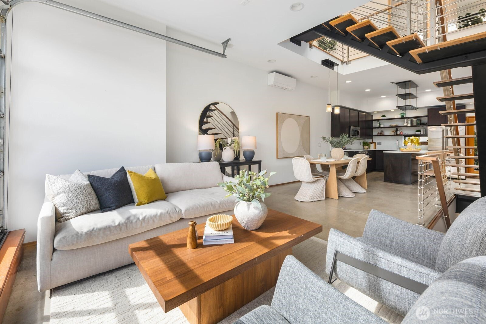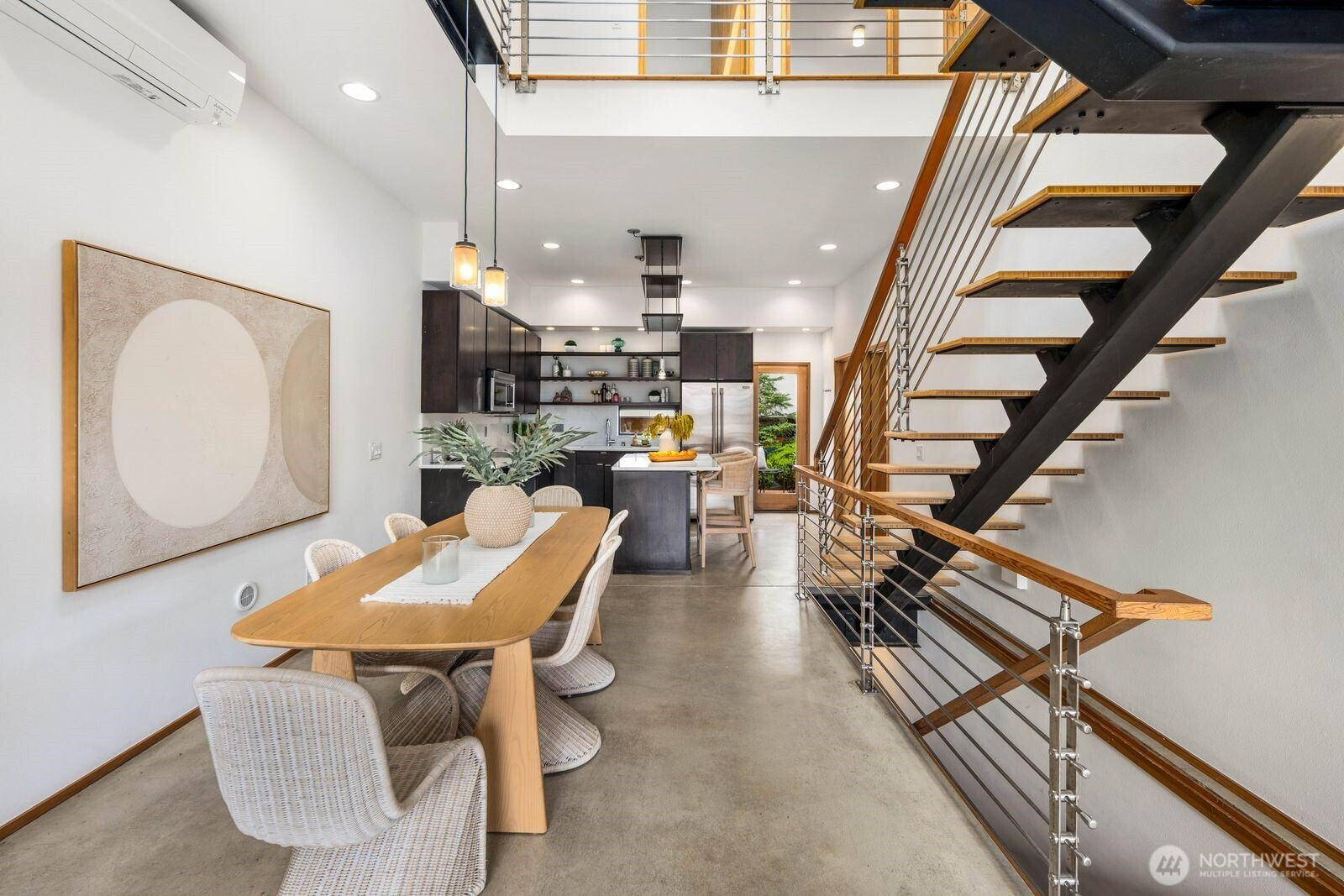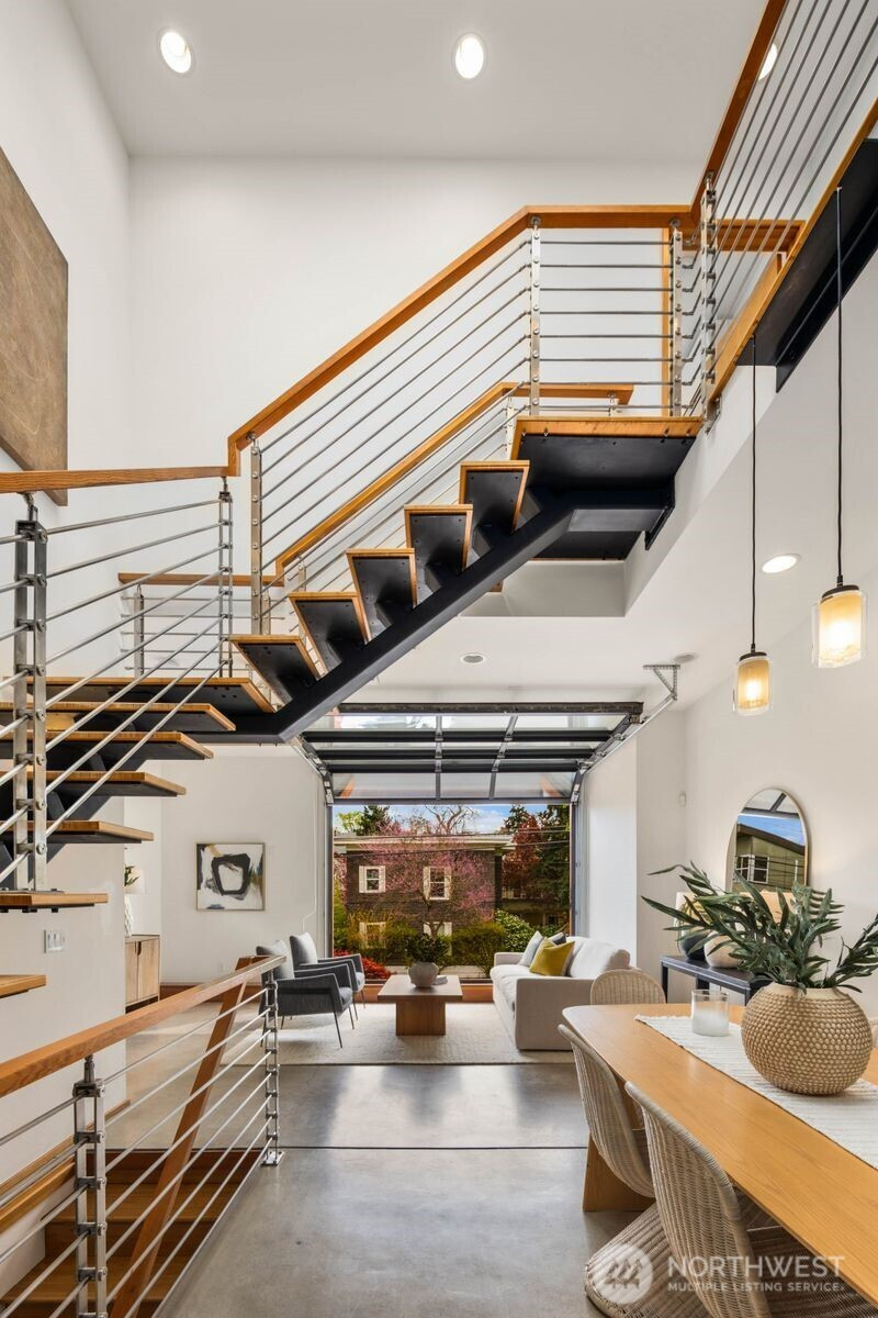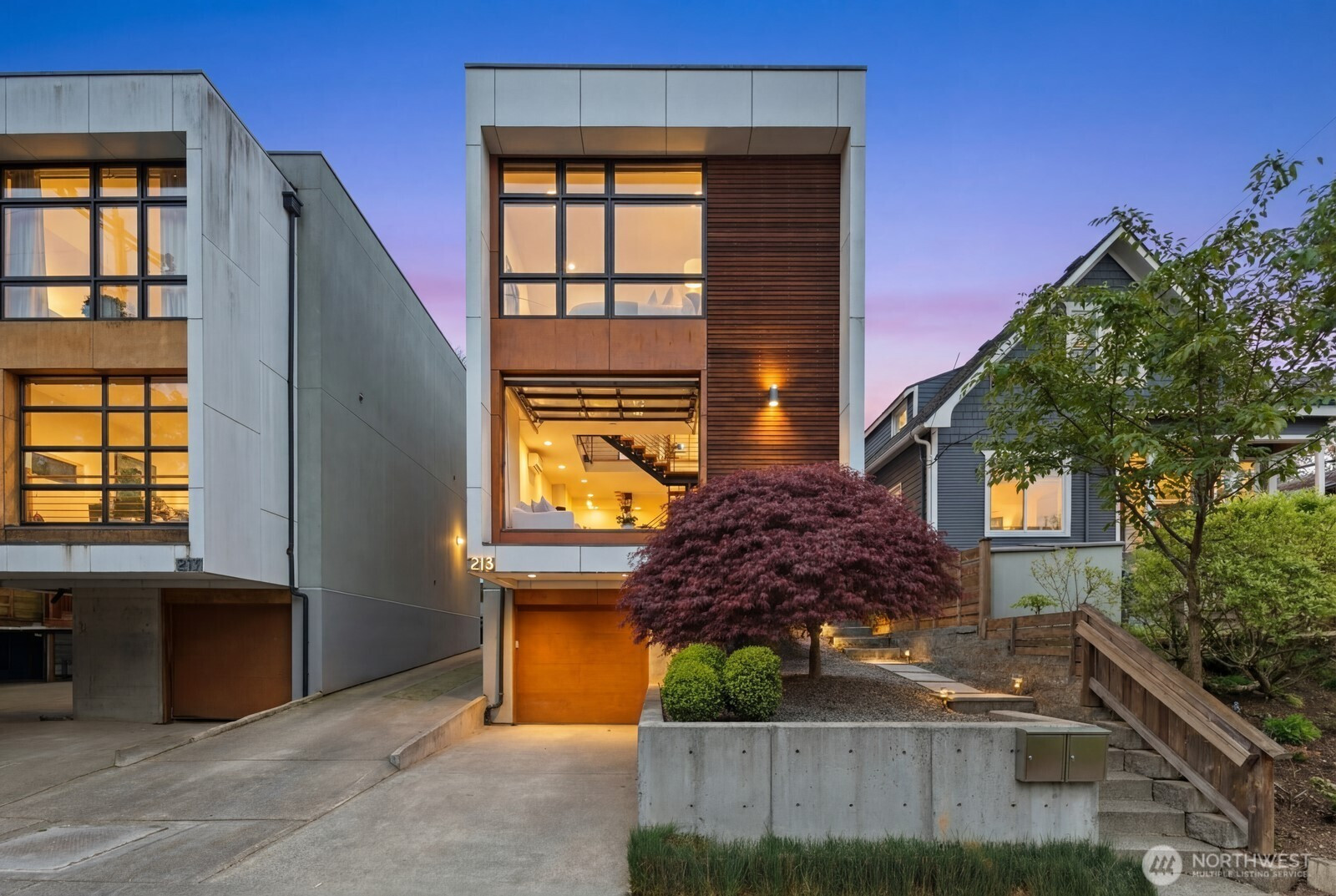 Welcome home to your modern sanctuary! Designed by award-winning PB Elemental, this stunning single-family residence is thoughtfully designed with custom contemporary details throughout. This stand-alone home showcases a level of design and craftsmanship rarely found in today’s construction, where minimalism meets luxury at every turn. The striking exterior combines cedar rainscreen siding with cement board, creating a sleek architectural presence. Inside, you’ll find concrete radiant heated floors, custom cabinetry, and new Quartz countertops paired with beautiful, modern bathroom finishes. A dramatic steel beam staircase and soaring ceilings elevate the main living spaces. The open main floor is designed for both everyday living and entertaining, featuring a chef’s kitchen that flows seamlessly into the dining and living areas. An operable glass garage-style door opens the space to the outdoors, blending indoor and outdoor living. The double-height dining room with skylights fills the home with natural light. Upstairs, three spacious bedrooms and two bathrooms provide a private retreat, while thoughtful design details continue throughout. An added bonus is the garage large enough for two cars tandem or use as storage or gym. Ideally located near grocery stores, restaurants, and everyday conveniences, this one-of-a-kind modern home is a rare opportunity you won’t want to miss.