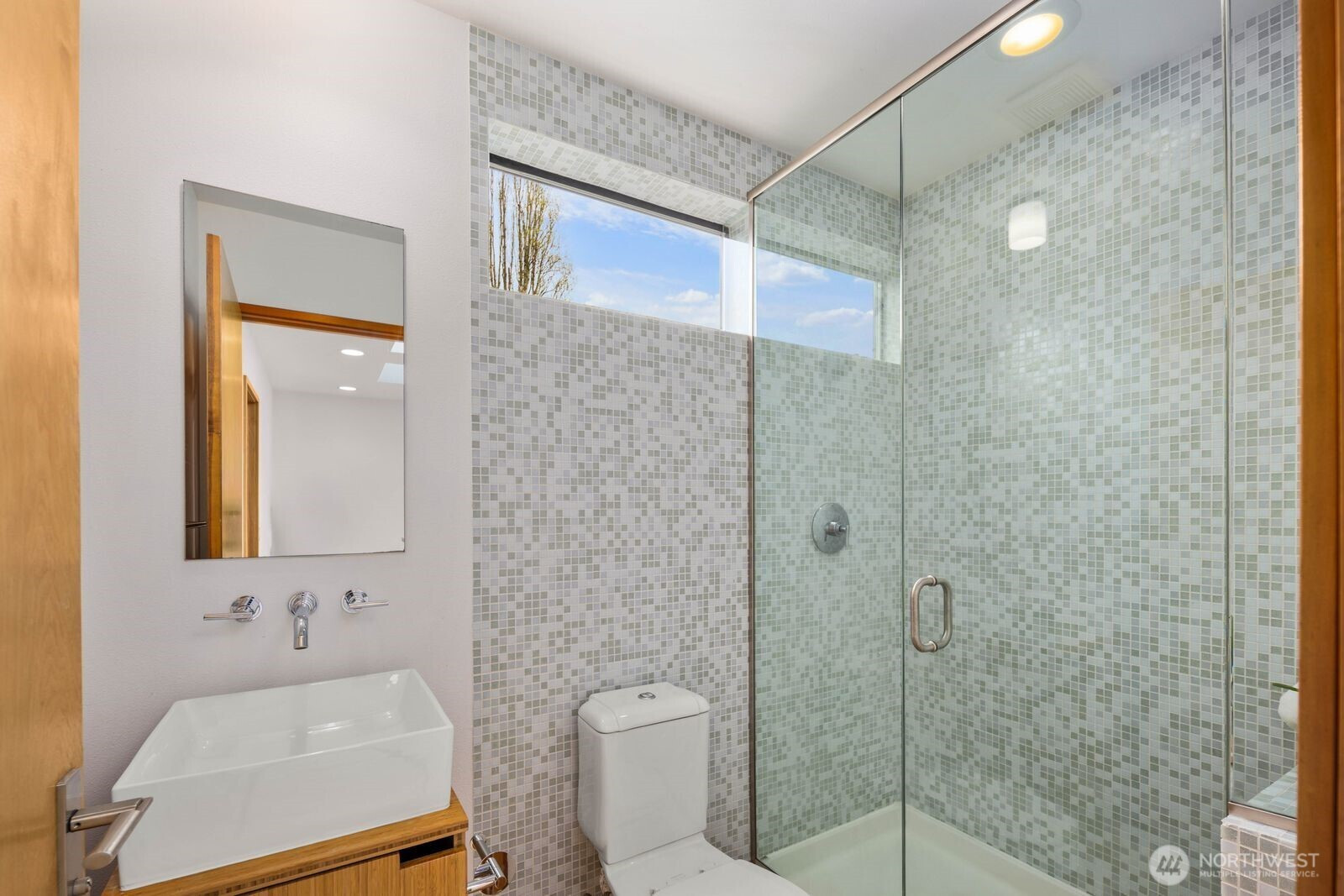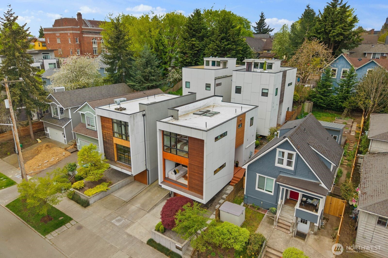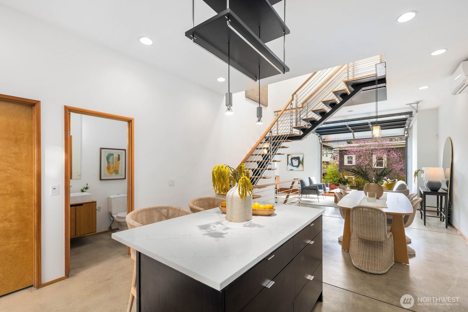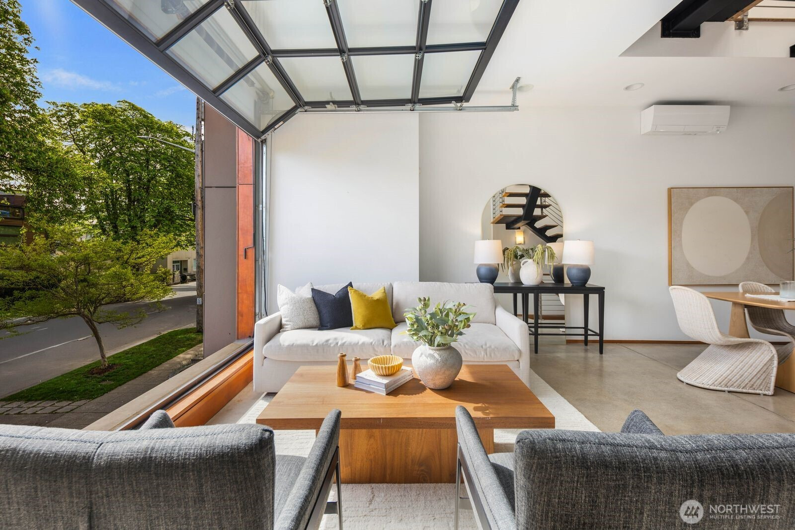 Welcome home to your modern sanctuary! Designed by award-winning PB Elemental, this stunning single-family residence is thoughtfully designed with custom contemporary details throughout. This stand-alone home showcases a level of design and craftsmanship rarely found in today’s construction, where minimalism meets luxury at every turn. The striking exterior combines cedar rainscreen siding with cement board, creating a sleek architectural presence. Inside, you’ll find concrete radiant heated floors, custom cabinetry, and new Quartz countertops paired with beautiful, modern bathroom finishes. A dramatic steel beam staircase and soaring ceilings elevate the main living spaces. The open main floor is designed for both everyday living and entertaining, featuring a chef’s kitchen that flows seamlessly into the dining and living areas. An operable glass garage-style door opens the space to the outdoors, blending indoor and outdoor living. The double-height dining room with skylights fills the home with natural light. Upstairs, three spacious bedrooms and two bathrooms provide a private retreat, while thoughtful design details continue throughout. An added bonus is the garage large enough for two cars tandem or use as storage or gym. Ideally located near grocery stores, restaurants, and everyday conveniences, this one-of-a-kind modern home is a rare opportunity you won’t want to miss.