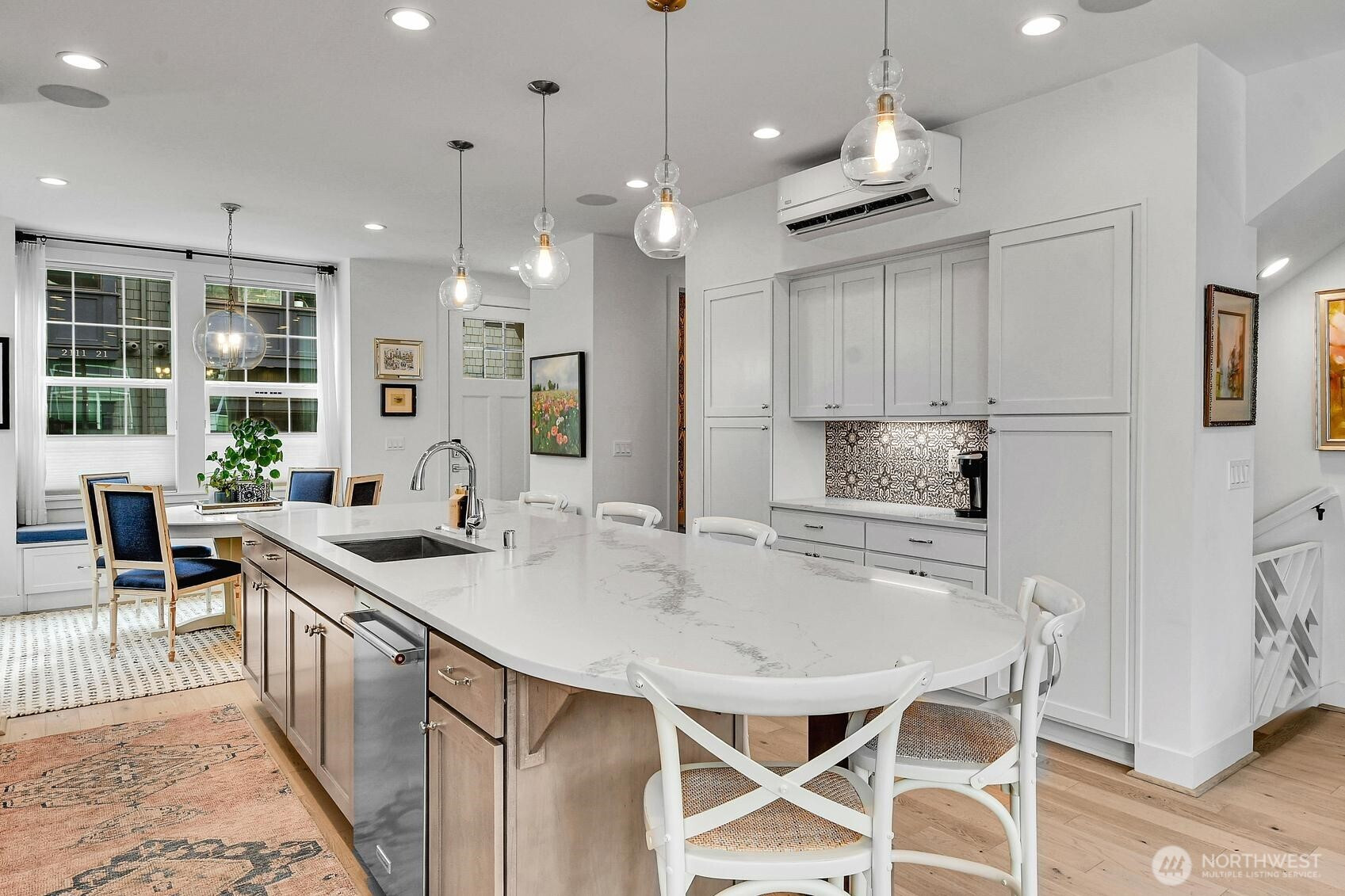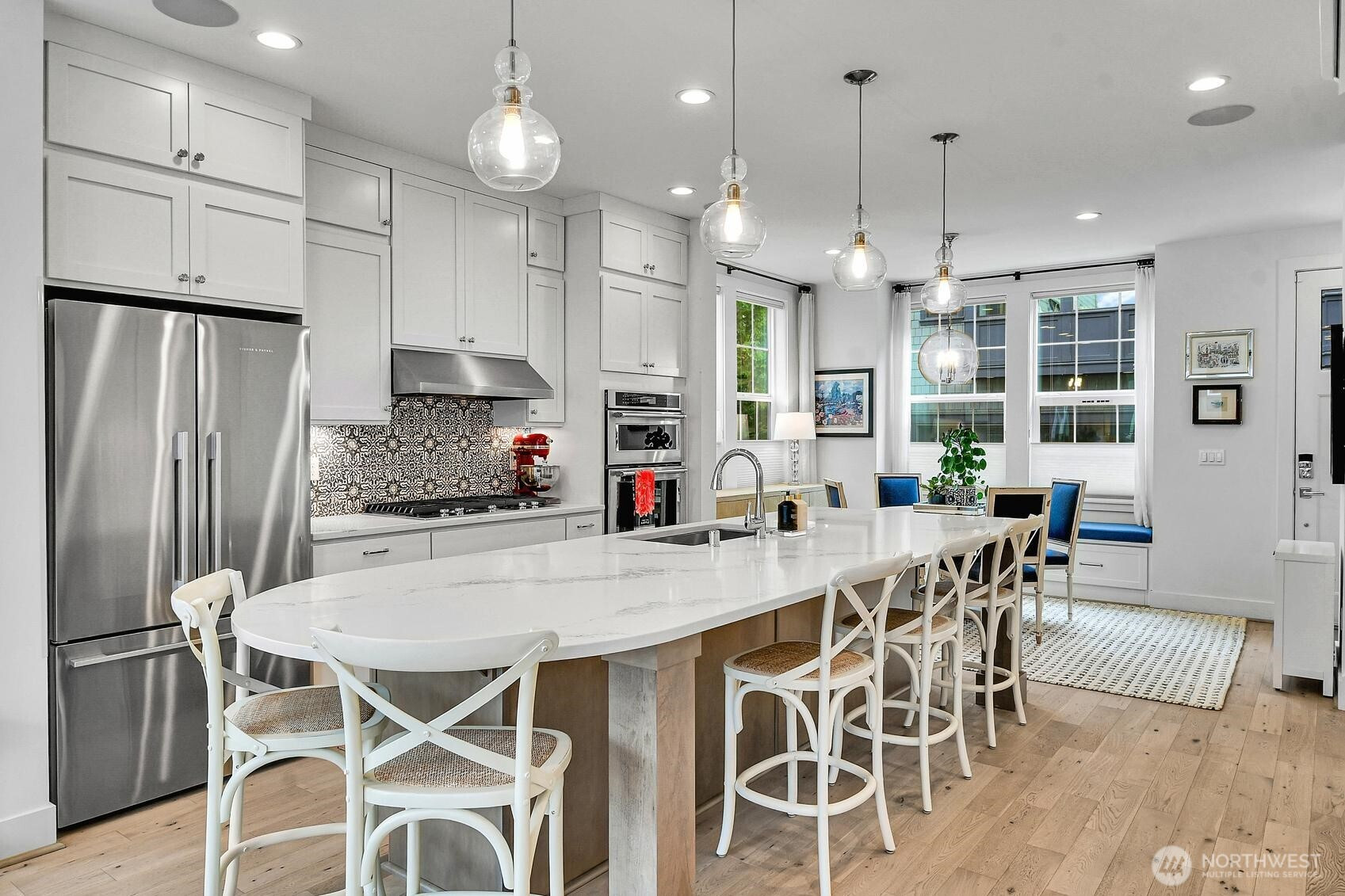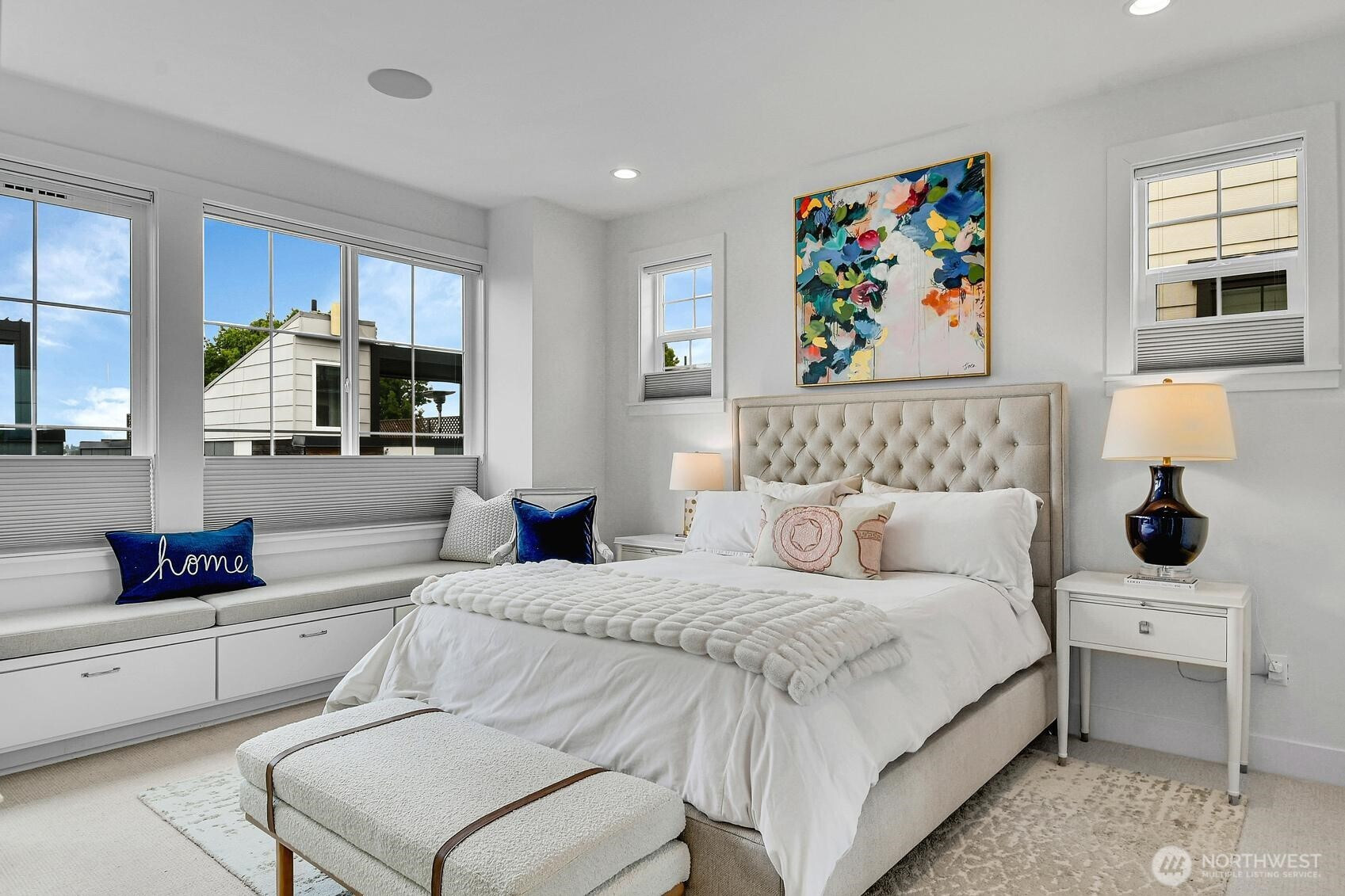 Welcome to your urban sanctuary where sophisticated design meets breathtaking Pacific Northwest beauty. This exceptional end-unit townhome at McGraw Square offers a rare combination of privacy, light, and lifestyle that's simply unmatched. The Showstopper: Your Private Rooftop Retreat-Ascend to your personal rooftop deck where panoramic views of the Olympic Mountains and Puget Sound create an ever-changing backdrop for your life. With gas and water hookups already in place, you're moments away from creating your dream outdoor kitchen and entertainment space. Imagine sunset dinners, morning coffee with mountain views, or hosting friends under the stars—all from your private sky deck. 3 generous bedrooms inc a luxurious primary suite!
