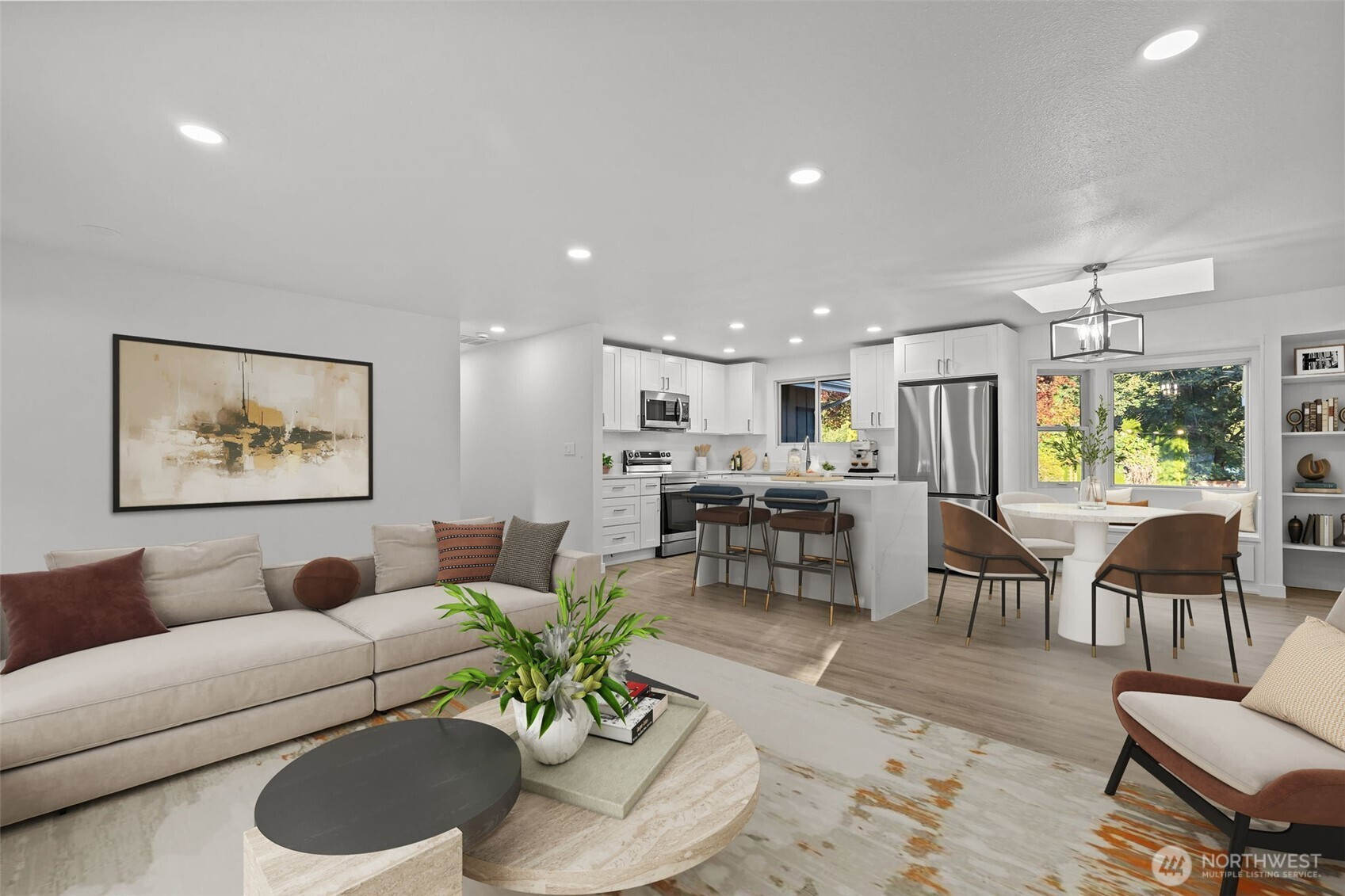 Charming single-level rambler in Shadow Lake, located in the award-winning Tahoma School District. This 3 bed, 3 bath home sits on a spacious .41-acre lot and features RV parking, a shop, and a storage shed. Enjoy a chef’s kitchen with new cabinets, countertops, and stainless steel appliances. Updates include new luxury flooring and fresh interior/exterior paint, Beautiful updated designer bathrooms. Bonus second kitchen and large rec room offer flexible living space. The flat backyard is an entertainer’s dream with a pickleball/basketball court and mature fruit trees including grapes, plums, and apples. Close to major highways 169, I-405. Private shadow lake access for $25 a month.