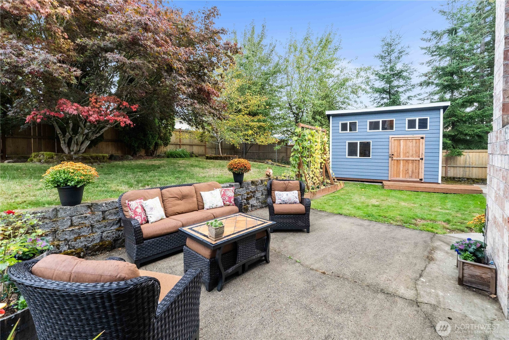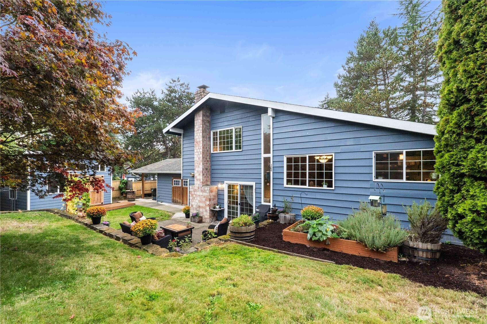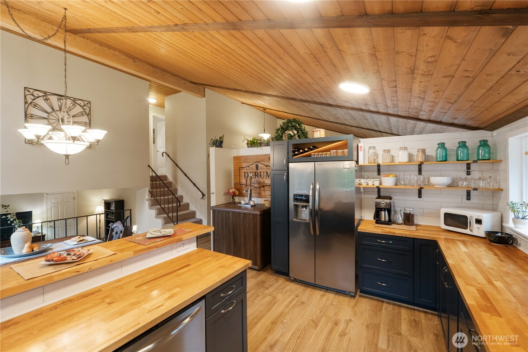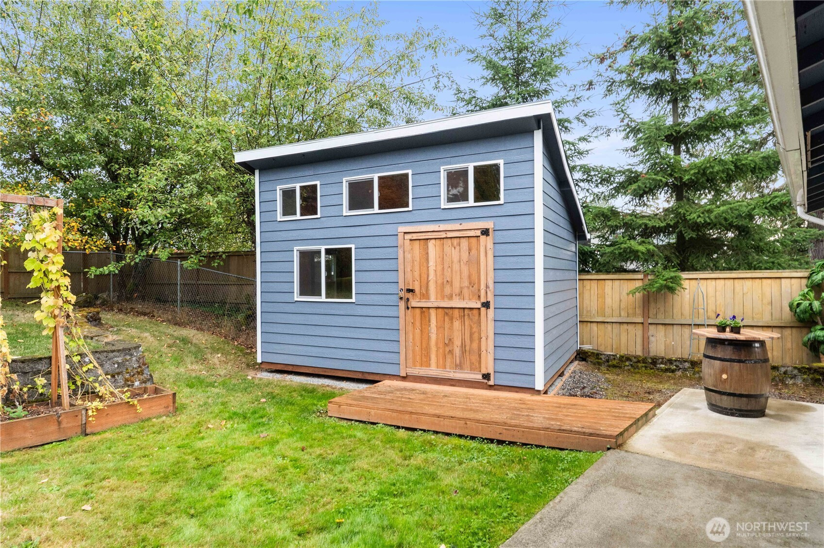 Fantastically updated home in established Kent neighborhood with mature trees is convenient to Gary Grant Park, Soos Creek Trail, and multiple schools. This 4-bed, 2.5-bath home features a fully-equipped outbuilding with water and heat — ideal for studio, office, or guest suite. Absolutely gorgeous kitchen remodel showcases white subway tile, custom cabinetry, new stainless appliances, butcher-block counters, and abundant breakfast bar with separate dining. Main level interior features soaring vaulted tongue-n-groove wood ceilings. Private yard with new cedar fence is perfect for outdoor entertaining. Updates to the home include vinyl plank flooring, tiled ensuite bath, new windows, water heater, and carport. Truly turnkey & move-in ready!!