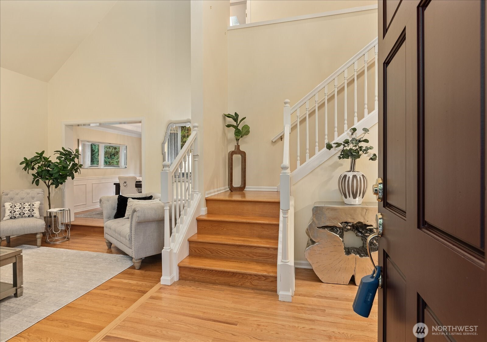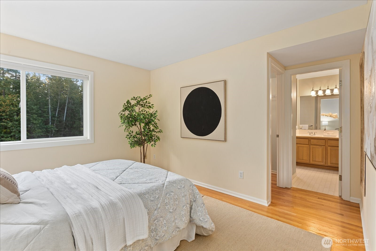 Tucked away at the end of a private lane, this beautiful 4 bedroom, 3.5 bath home offers the perfect blend of privacy and elegance. Located in an area of spacious homes, this home invites you to serene setting on 1.18 acres next to a greenbelt. The well designed floorplan features genuine hardwood floors throughout, views from every window, skylights, granite counters, stainless appliances and two cozy gas fireplaces. A spacious primary suite includes a 5-piece bath, plus an ensuite bedroom on the main floor for guests. The lower level boasts a huge bonus room, perfect for a home gym or media space. This home has been well maintained and offers a peaceful retreat just minutes from all that Woodinville has to offer. This can be your home!