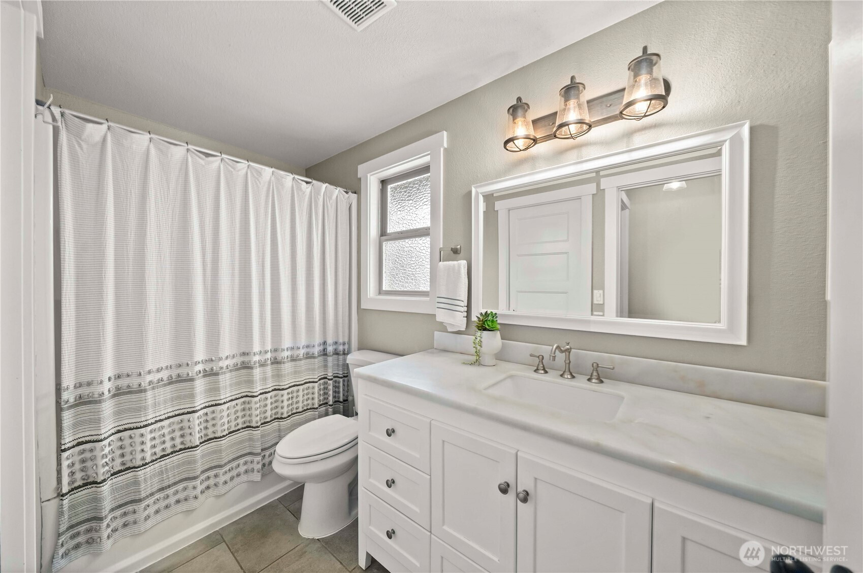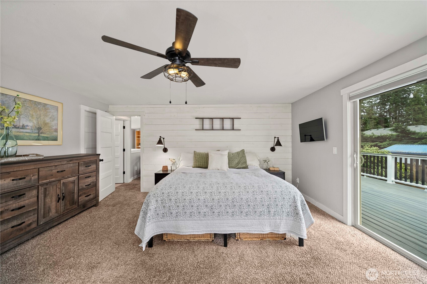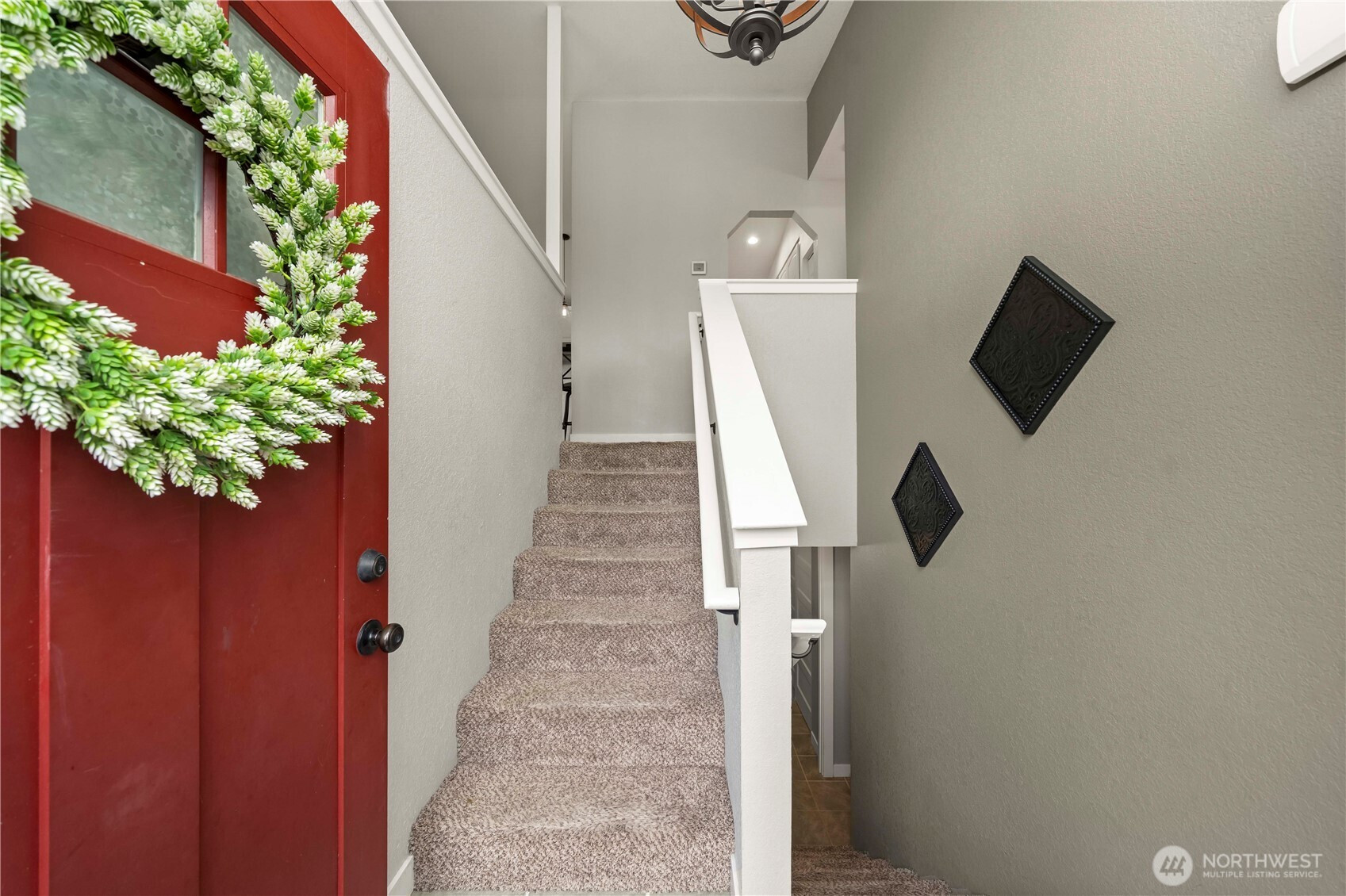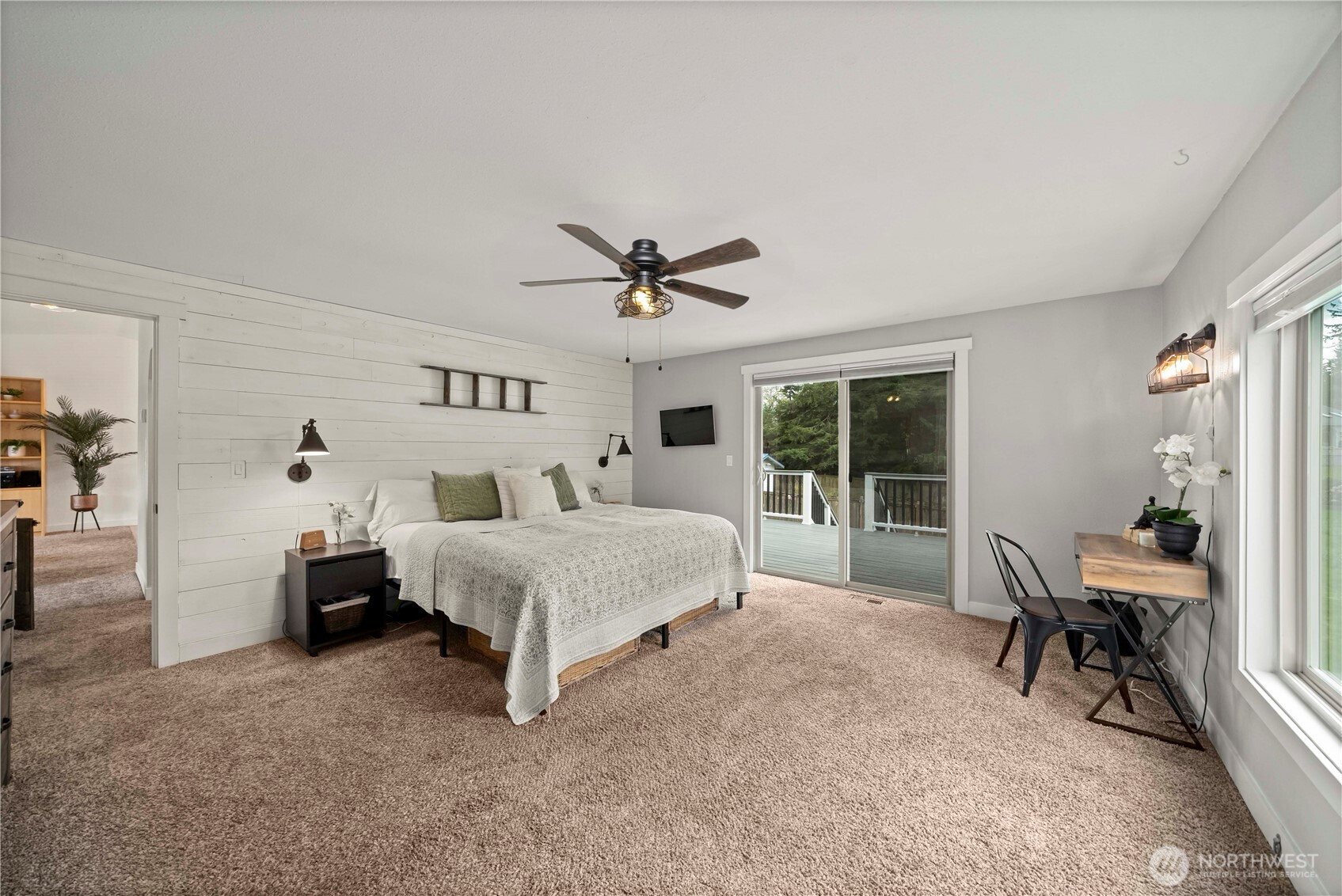 Open, bright, and thoughtfully laid out, this Maple Valley home offers comfortable living spaces and easy indoor-outdoor flow. The main living area features vaulted ceilings and a large bay window that fills the space with natural light. The kitchen showcases solid oak hardwood floors, white cabinetry, stainless steel appliances, wall oven, durable solid surface counters, a pantry, and a generous center island with seating. The adjacent dining area opens to a large deck, creating a natural extension of the living space for gatherings and outdoor enjoyment. The primary bedroom is light-filled and inviting, complete with its own slider opening directly to the patio. Downstairs, a spacious bonus room with fireplace and sliding glass door leads to a fully covered patio with a built-in gutter system, allowing for comfortable outdoor use throughout the seasons. Two additional bedrooms are located on the lower level along with a full and half bath, offering flexibility for guests, work-from-home needs, or hobbies. The fully fenced backyard is designed for both recreation and relaxation, featuring a basketball court and storage shed. Located near Cherokee Bay, enjoy community amenities including HOA dues that cover water, plus lakeside park access just steps away with a playground, boat launch, sport court, and more. Convenient access to major highways keeps commuting simple while nearby outdoor amenities make it easy to enjoy the Maple Valley lifestyle.