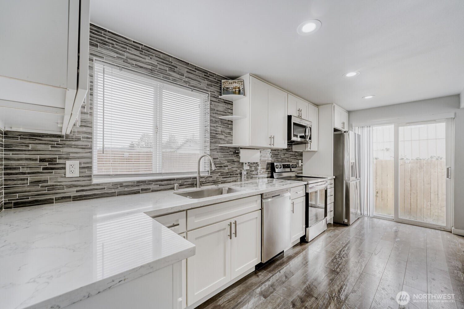 Welcome to this beautifully remodeled home featuring an open and inviting layout filled with natural light. The updated kitchen shines with granite countertops and LG stainless steel appliances, complemented by newer flooring throughout. This home offers four spacious bedrooms and 1.75 bathrooms with heated floors for added comfort. Enjoy a low-maintenance yard with room for RV parking. Conveniently located near Hwy 167, shopping, and schools—this is one you don’t want to miss!