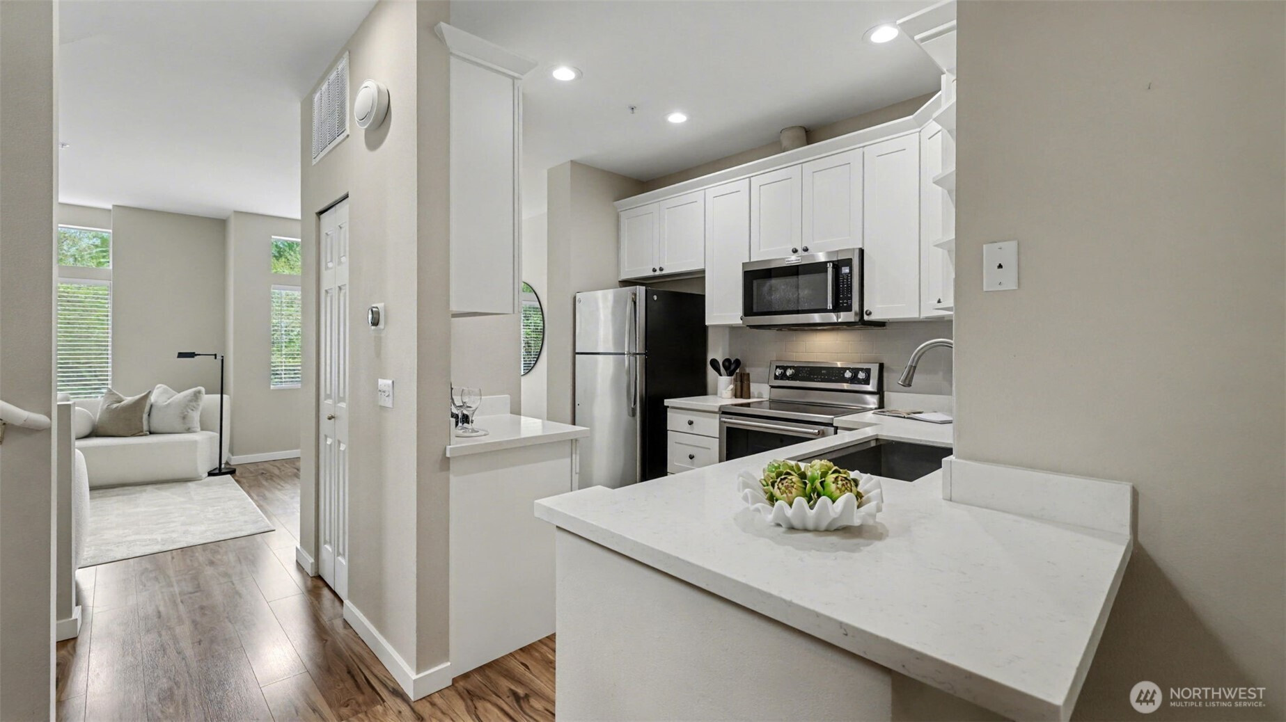 Welcome to this beautifully remodeled 3-bedroom, 2.5-bath townhome at highly sought-after Spyglass Hill. Surrounded by serene territorial views, this home is filled with abundant natural light, creating a warm and inviting atmosphere throughout. The thoughtfully designed floor plan blends comfort and functionality, ideal for both everyday living and entertaining. The updated kitchen shines with new cabinetry, countertops, tile backsplash, and modern lighting, offering a stylish and practical space for cooking and gathering. Upstairs, the spacious primary suite features vaulted ceilings, a generous walk-in closet, and a private ensuite bath. Two additional well-sized bedrooms provide flexibility for guests, home office needs, or hobbies. Recent updates include refreshed bathrooms with new countertops, cabinetry, and modern light fixtures, making this home truly move-in ready. Enjoy the convenience of an attached two-car garage, along with a large lower-level storage or flex space—perfect for a home gym, office, or creative studio. Ample guest parking is available within the community. Ideally located with easy access to I-90 and just minutes from Issaquah and Bellevue, this home is close to parks, trails, shopping, dining, and top-rated Issaquah schools.