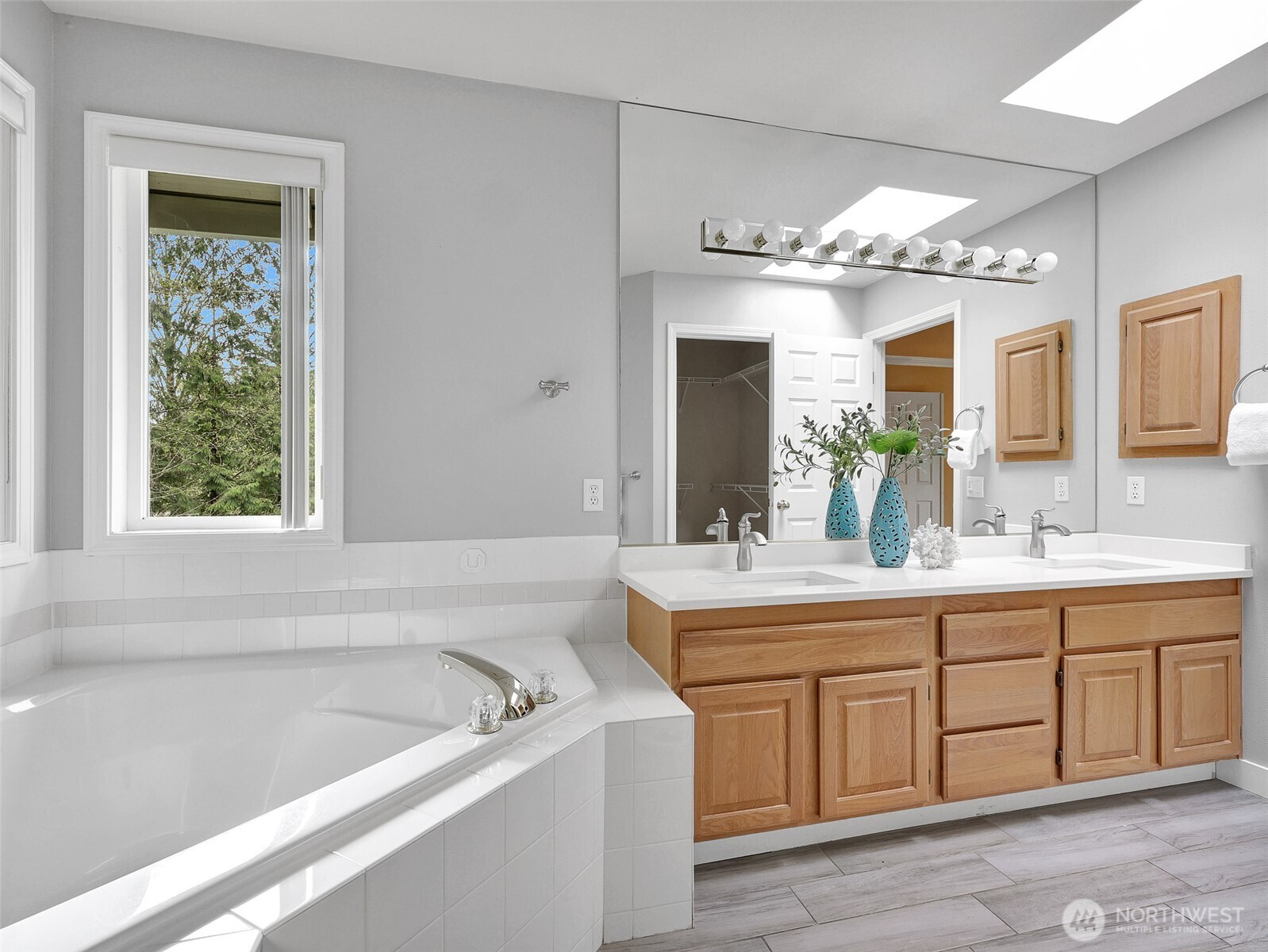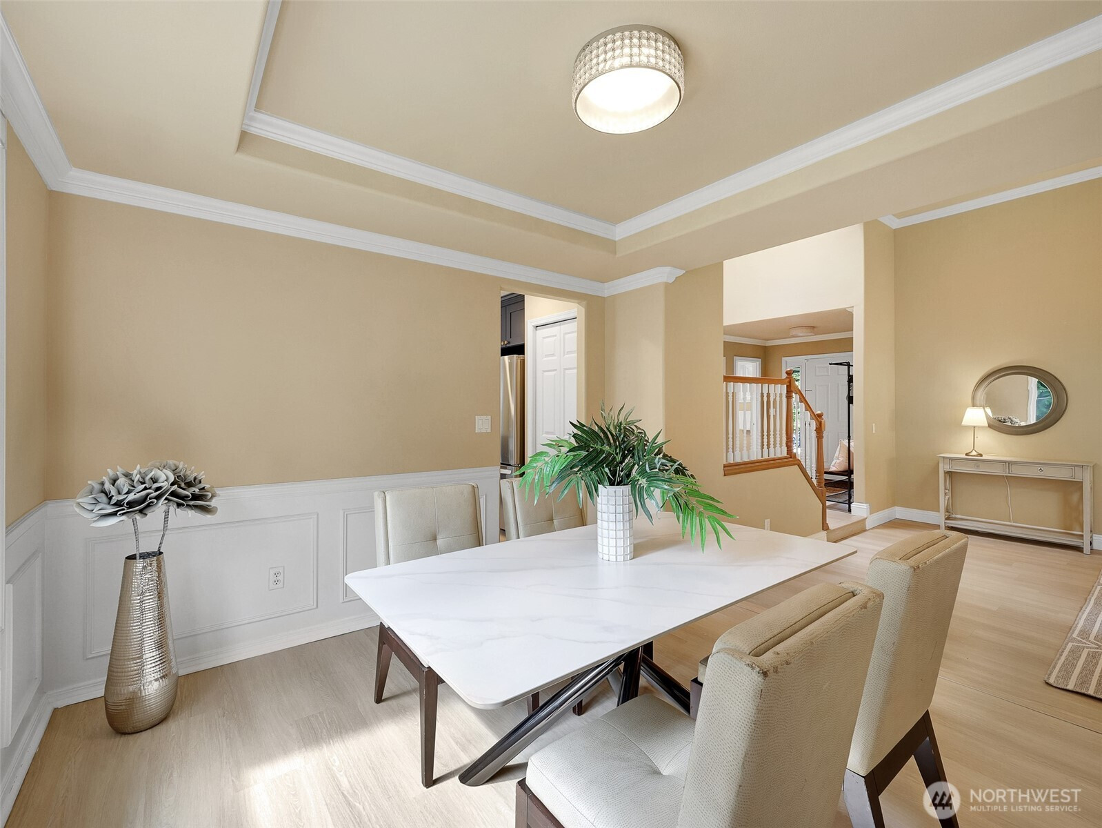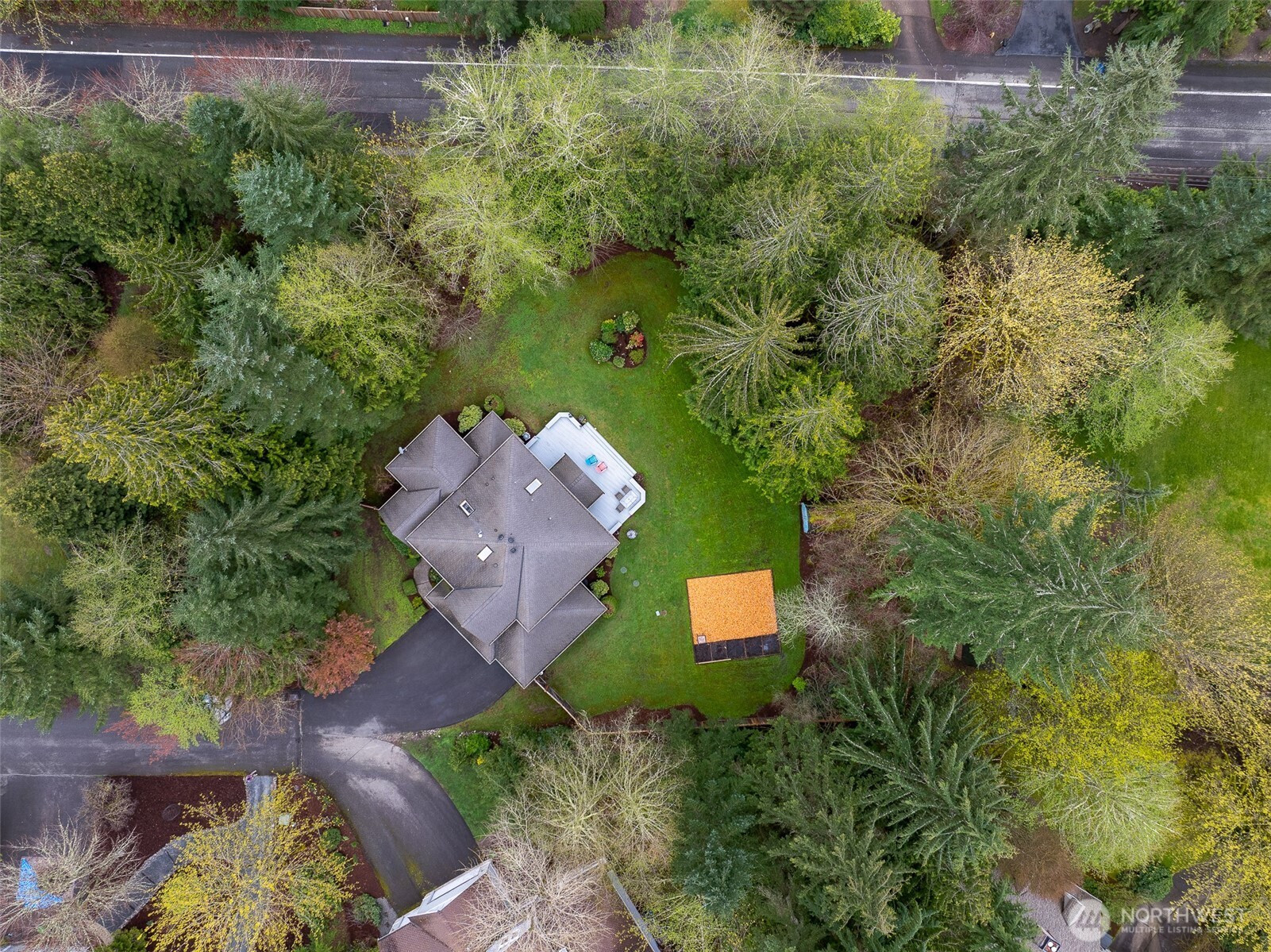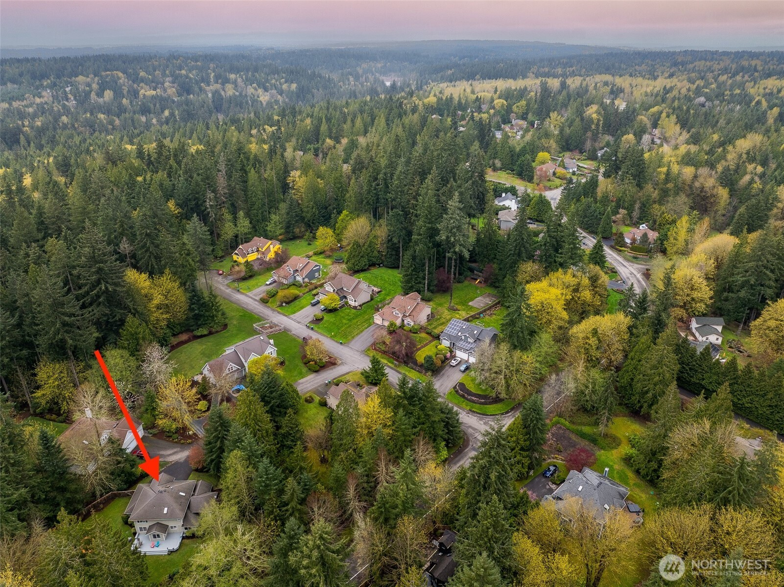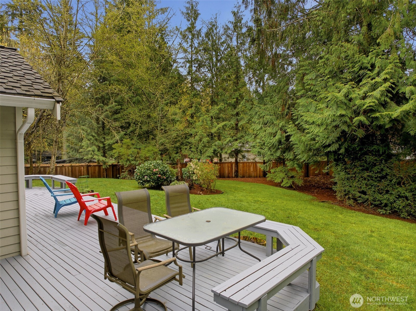 Tucked within a quiet cul-de-sac in the coveted Lexington neighborhood, this beautifully updated 4-bedroom, 2.5-bath home offers the perfect blend of comfort, style, and functionality — all within the Award-Winning Northshore School District and with NO HOA. Soaring vaulted ceilings, crown molding, and light engineered hardwood floors (2022) set an elegant tone throughout the bright, open main level. The grand living room flows seamlessly into a warm family room anchored by a fireplace, while a dedicated main-level office adds everyday versatility. The fully remodeled kitchen is a chef's dream — featuring a professional Miele dual-fuel range, waterfall quartz countertops, custom cabinetry, and a stunning farmhouse sink. A luxury deck just off the kitchen extends the living space outdoors, perfect for entertaining. Upstairs, the spacious primary suite is a true retreat, complete with a spa-inspired 5-piece bath and double vanity. Smart home features throughout include a 7.1 in-wall home theater system, built-in security alarm, CAT 5 wiring, and generator hookup. The finished and insulated 900 SF 3-car garage with EV charger, a 50-year roof, central A/C, and a fully fenced yard (2022) round out this move-in-ready home — truly nothing left to do but move in.
