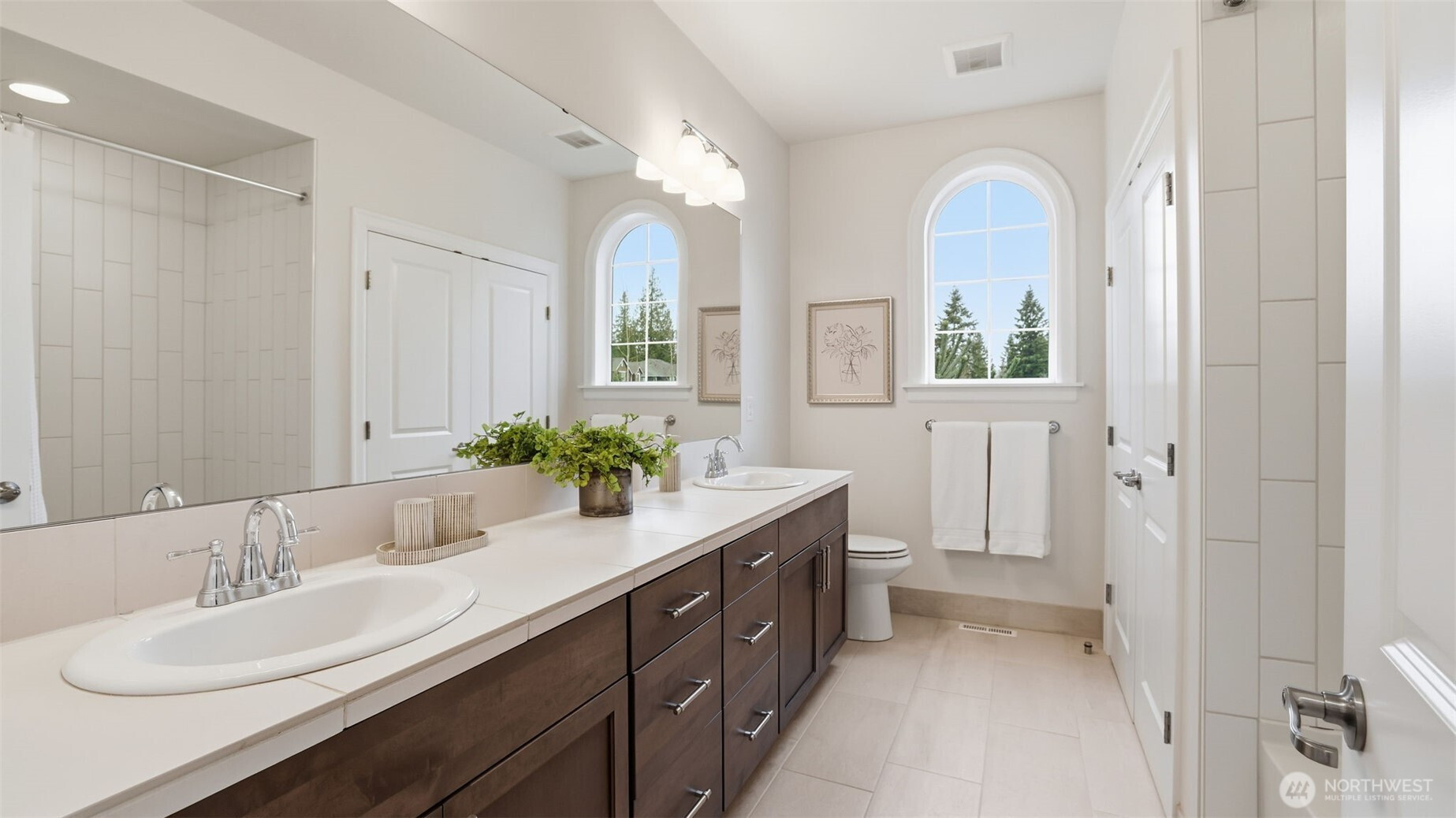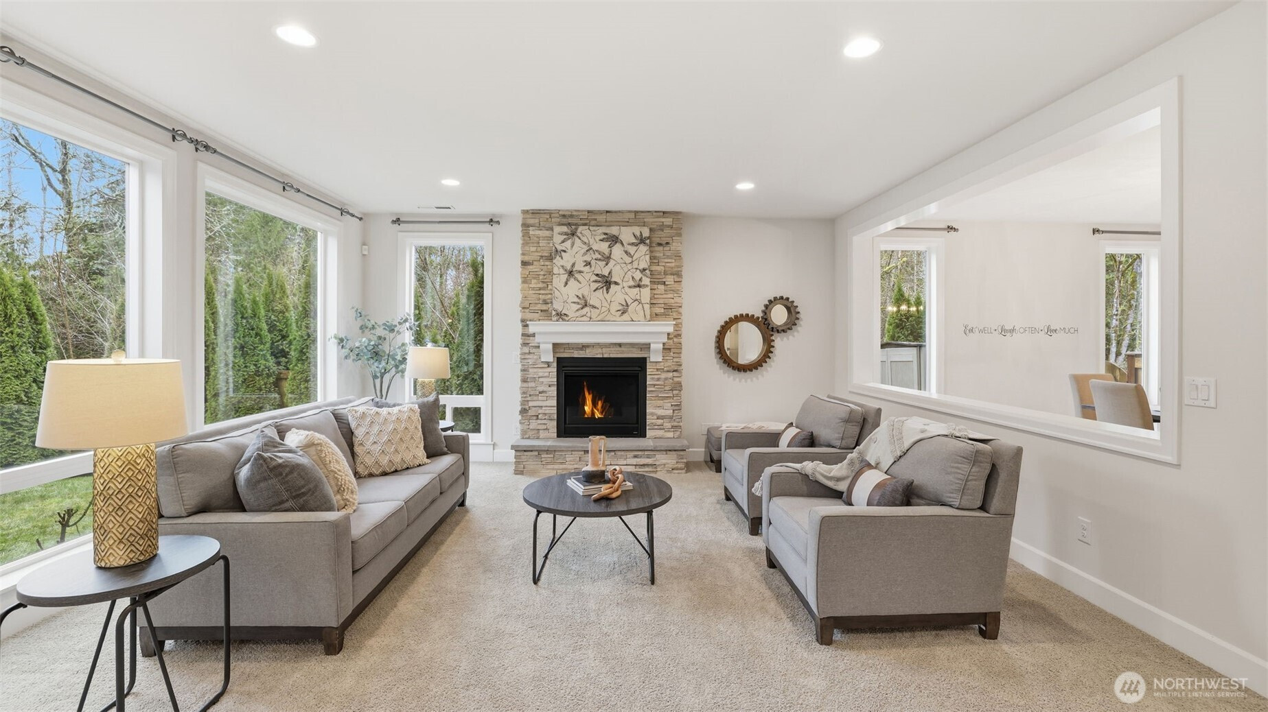 Exceptional Murray Franklyn craftsmanship shines in this stunning resale residence located in Sammamish’s desirable Brixton neighborhood, just blocks from the Town Center. Elegantly set on a corner lot with a north-facing front door, this better-than-new home offers a light-filled interior and timeless design. The thoughtful floor plan features 5 bedrooms, 4 baths, a main-floor den (or 5th bedroom) with adjacent ¾ bath, and a spacious upstairs bonus room. The expansive chef’s kitchen boasts a 6-burner cooktop, full-height cabinetry, tile backsplash, abundant quartz counters, stainless steel appliances, and a large center island with eating bar. The great room and dining area provide an ideal setting for both daily living and entertaining. Upstairs, the private primary suite features vaulted ceilings, his and her vanities, spa-like soaking tub, and dual custom closets. Three additional bedrooms—one en suite—bonus room, and laundry room complete the upper level. Enjoy year-round outdoor living with a covered patio, paver patio and walkways, and a fully fenced yard. Tandem 3-car garage and central A/C add comfort and convenience. Close to shops; dining; Met Market; Big Rock and Lower Commons Park; and top-rated Lake Washington schools.