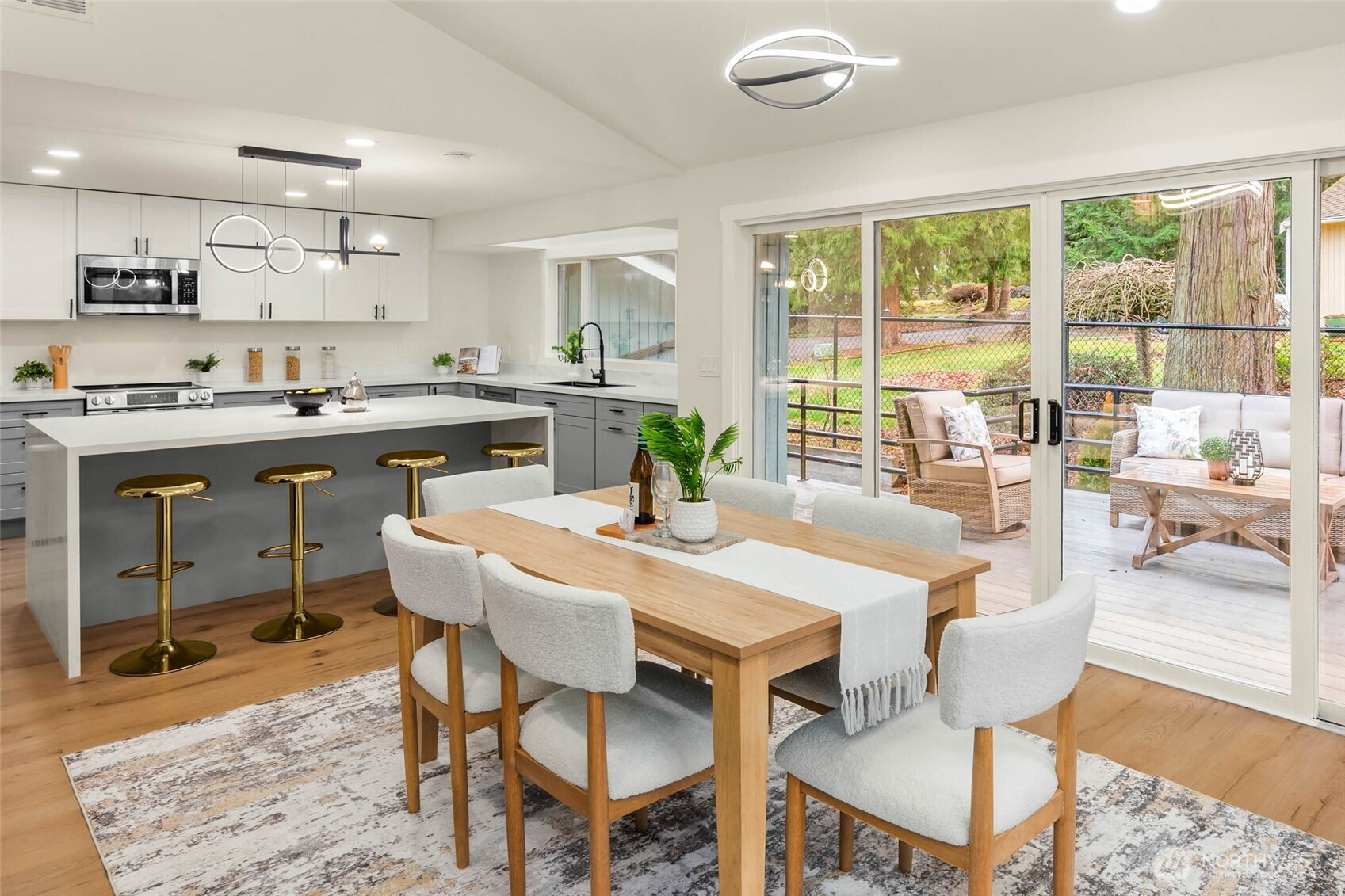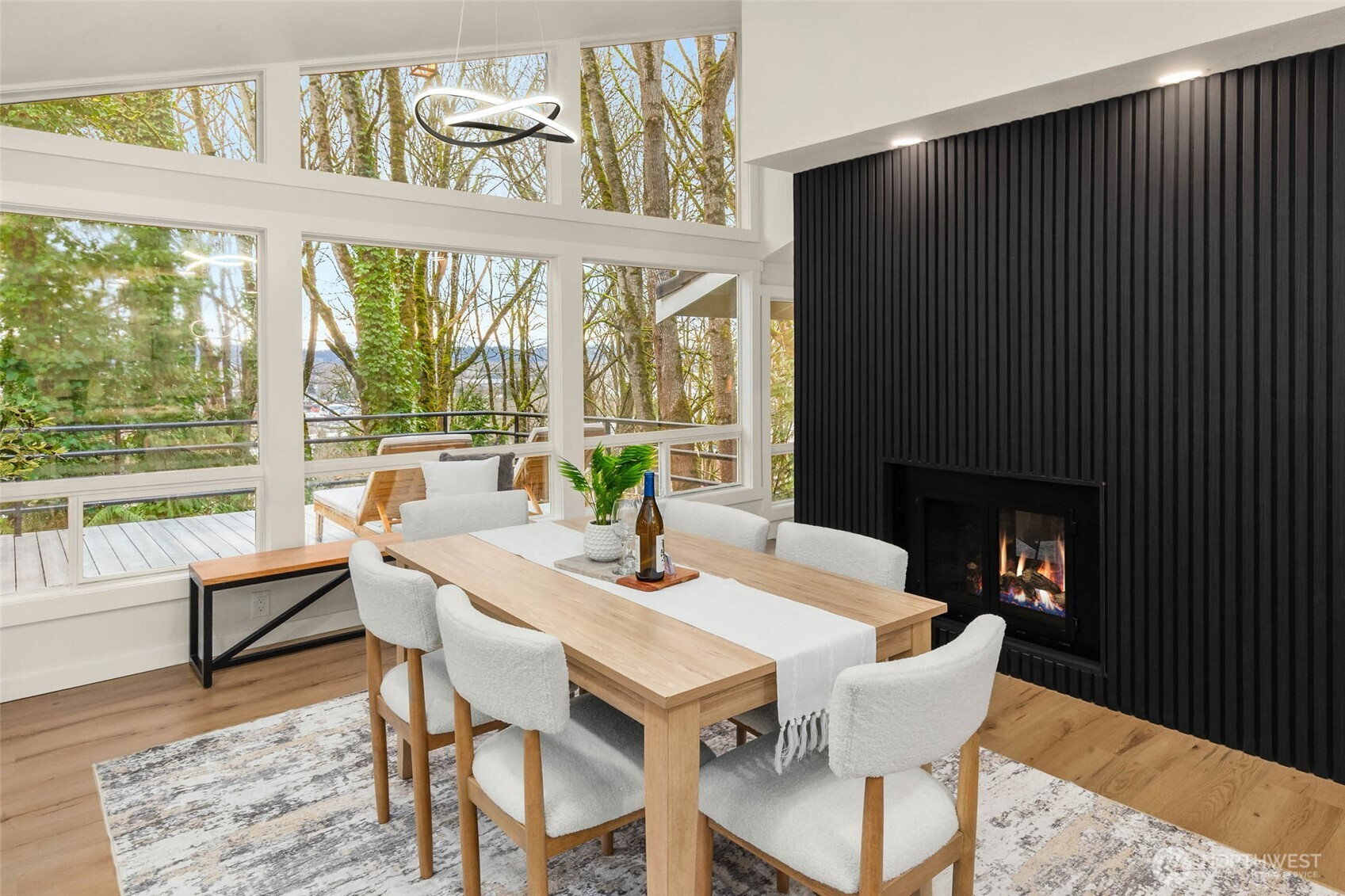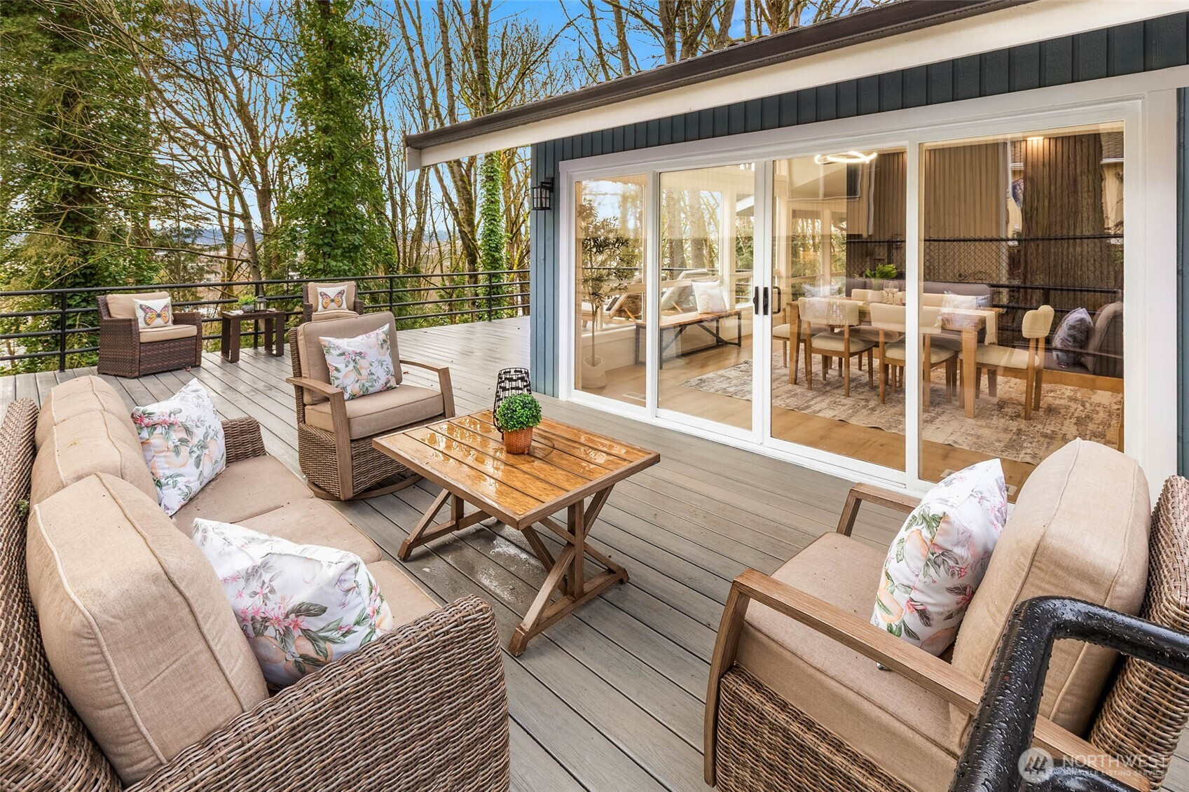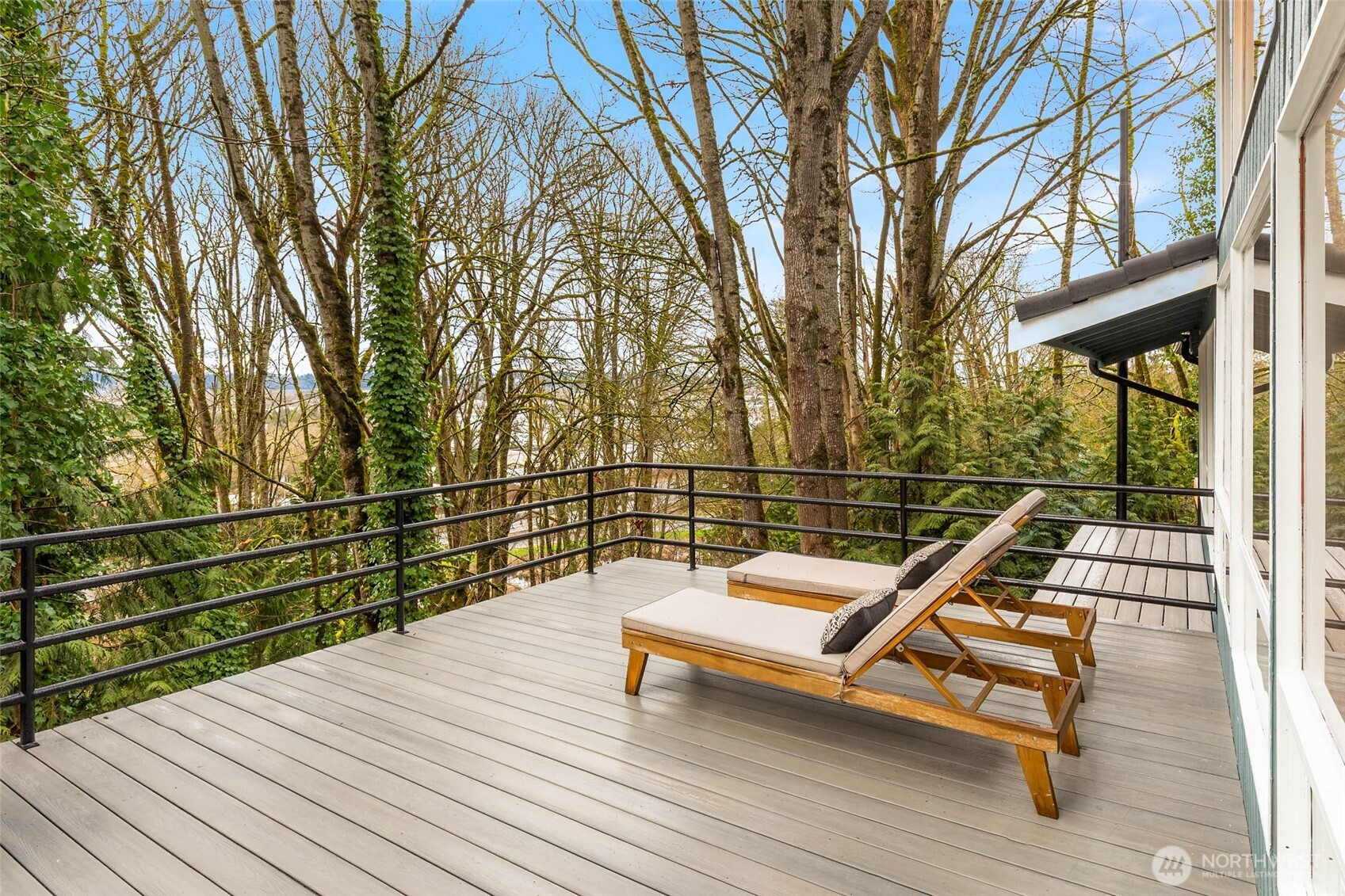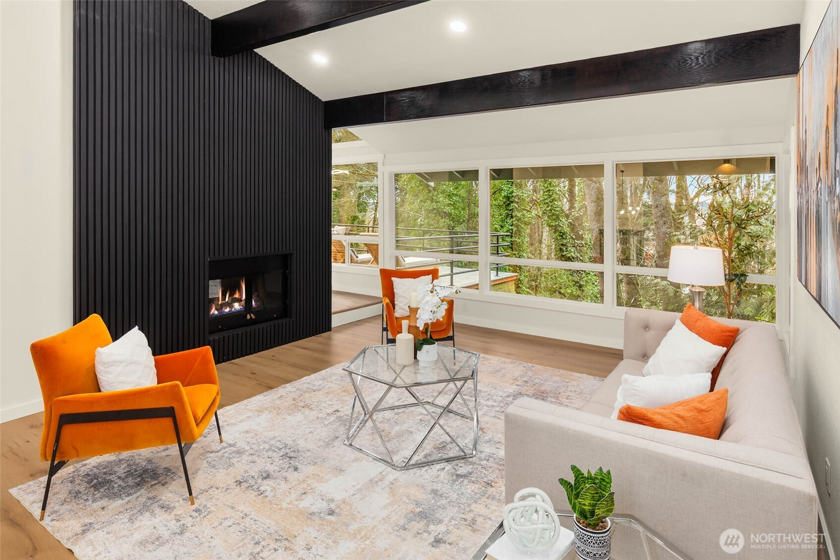 Timeless elegance meets modern sophistication in this fully remodeled home, where no surface has been left untouched. Like new and thoughtfully redesigned, the home showcases upscale, designer finishes throughout, accented by striking wood beams and expansive windows that anchor the light-filled main level. The open layout welcomes you into a bright, airy living space, seamlessly flowing into the heart of the home - the beautifully appointed kitchen, featuring a large gathering island, exquisite tilework and surfaces, and all-new appliances. Step outside to the oversized wraparound deck, ideal for entertaining or quiet moments of relaxation. The main-level primary suite offers exceptional convenience and privacy, complete with a luxurious en-suite bath, walk-in closet, and its own private balcony. The lower level provides 3 additional bedrooms, each with generous closet space, a full hall bath, a large utility room, and a versatile secondary living area with fireplace and patio access - perfect for guests, media, or work-from-home needs. Thoughtful storage is found throughout, along with additional/RV parking, fresh landscaping, and new exterior paint. All of this is set in a highly convenient location with easy freeway access, blending refined living with everyday ease. Welcome home!