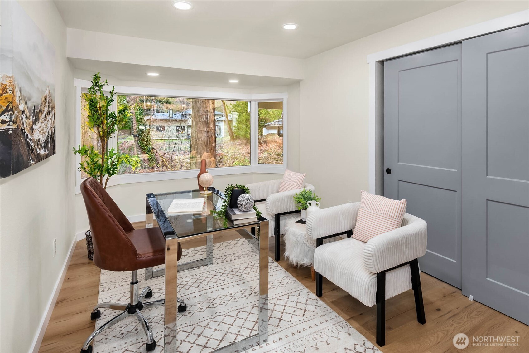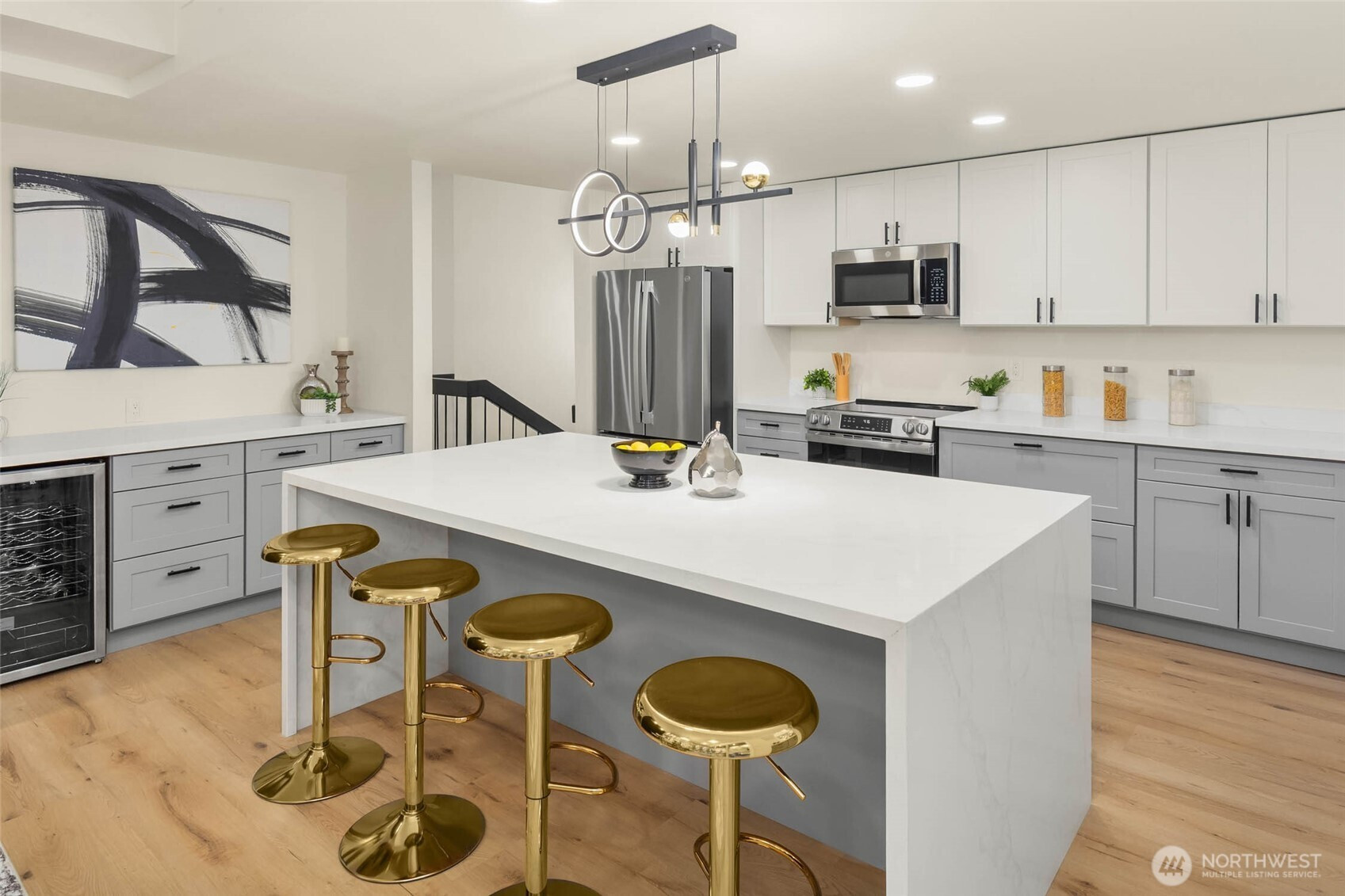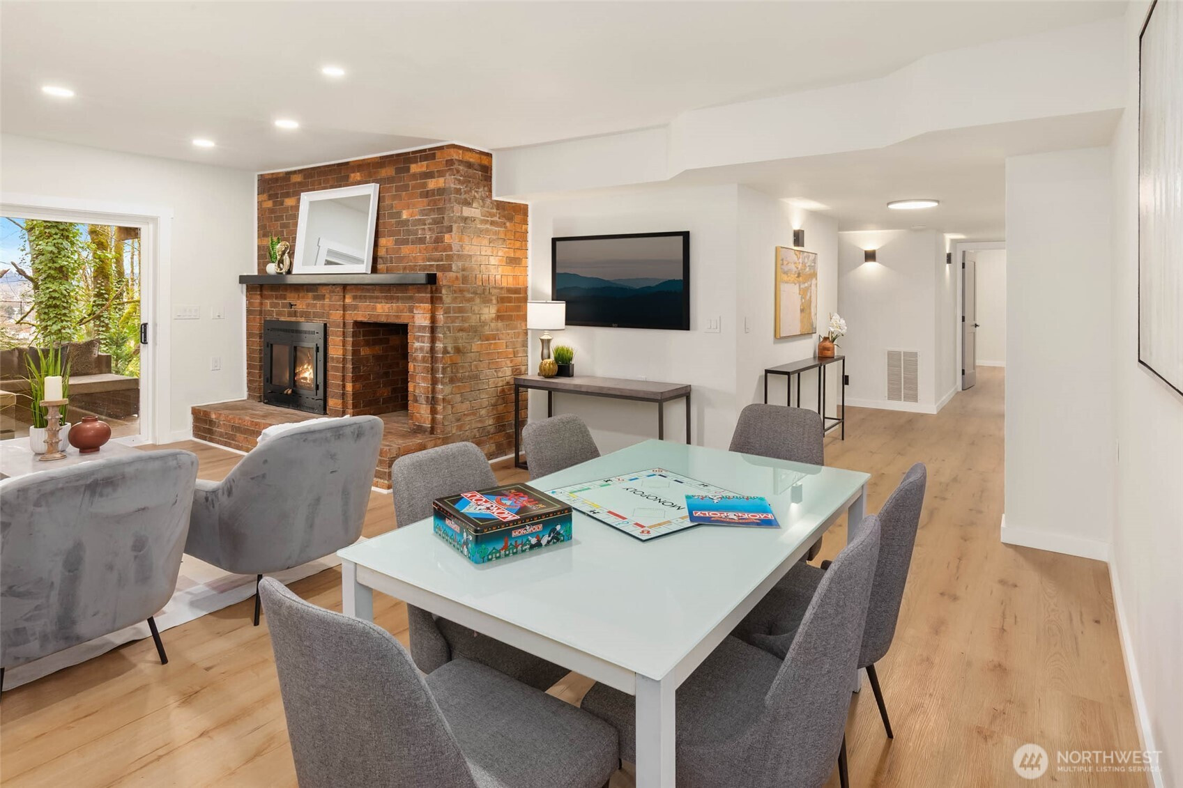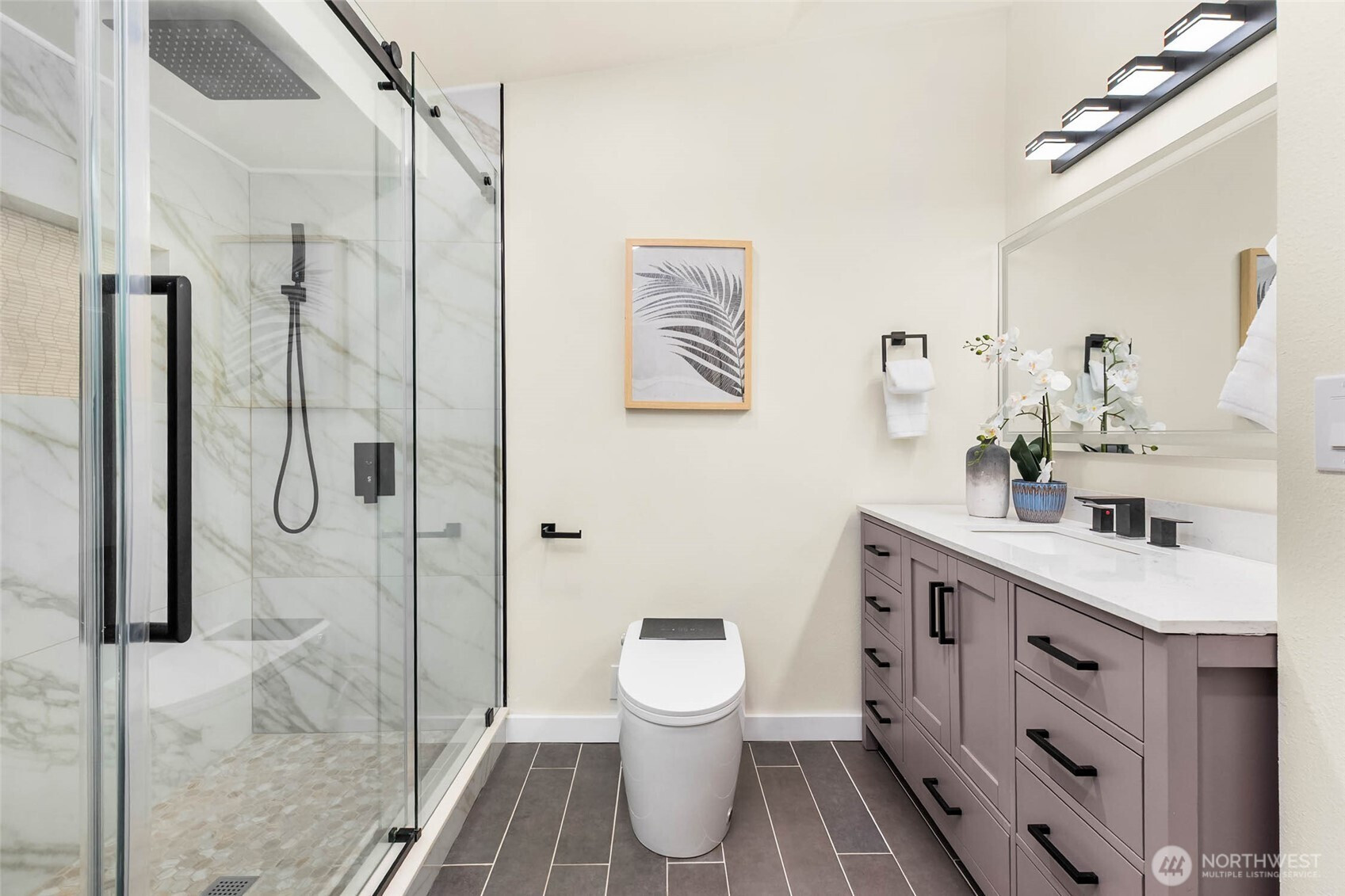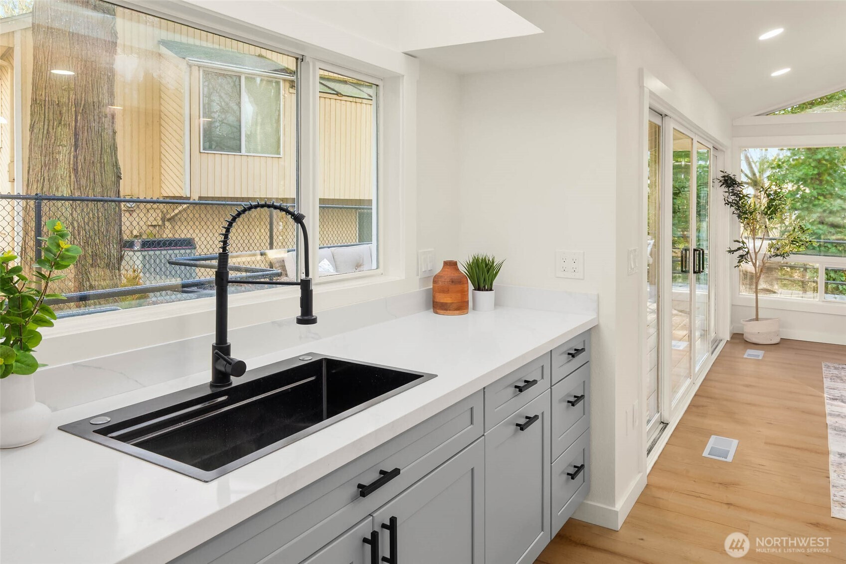 Timeless elegance meets modern sophistication in this fully remodeled home, where no surface has been left untouched. Like new and thoughtfully redesigned, the home showcases upscale, designer finishes throughout, accented by striking wood beams and expansive windows that anchor the light-filled main level. The open layout welcomes you into a bright, airy living space, seamlessly flowing into the heart of the home - the beautifully appointed kitchen, featuring a large gathering island, exquisite tilework and surfaces, and all-new appliances. Step outside to the oversized wraparound deck, ideal for entertaining or quiet moments of relaxation. The main-level primary suite offers exceptional convenience and privacy, complete with a luxurious en-suite bath, walk-in closet, and its own private balcony. The lower level provides 3 additional bedrooms, each with generous closet space, a full hall bath, a large utility room, and a versatile secondary living area with fireplace and patio access - perfect for guests, media, or work-from-home needs. Thoughtful storage is found throughout, along with additional/RV parking, fresh landscaping, and new exterior paint. All of this is set in a highly convenient location with easy freeway access, blending refined living with everyday ease. Welcome home!
