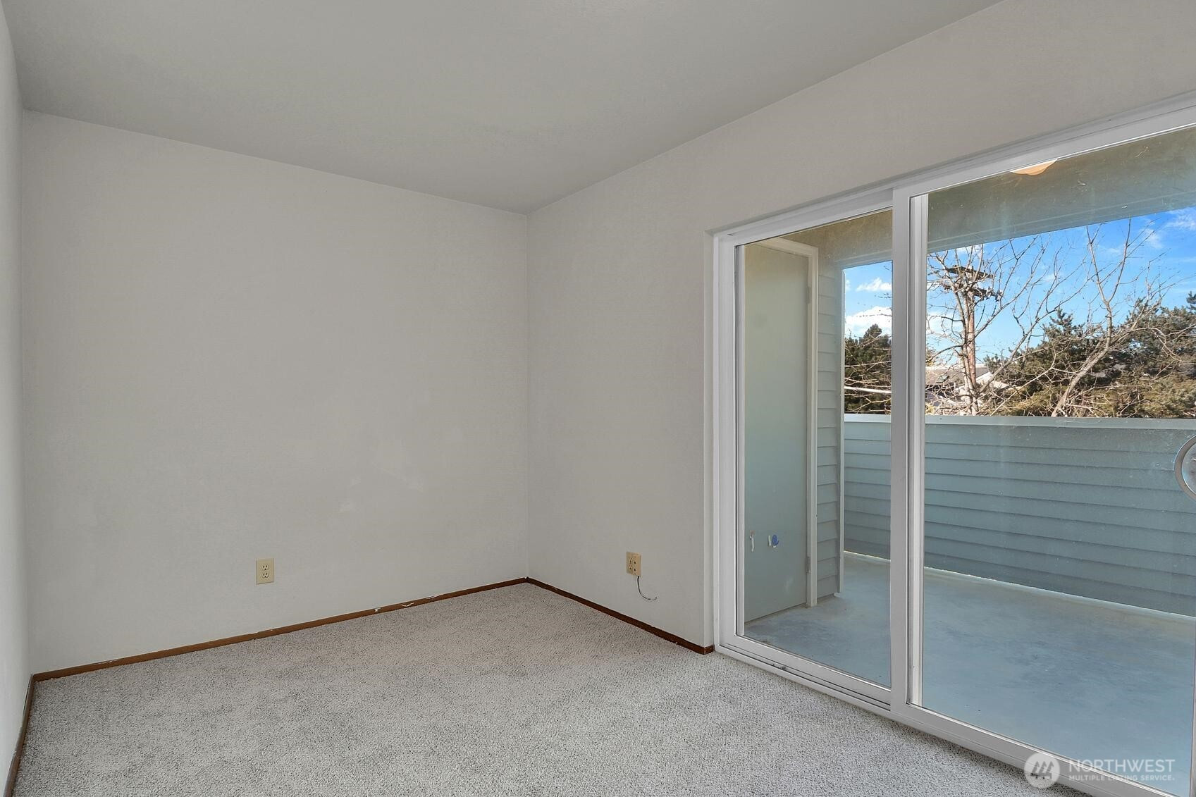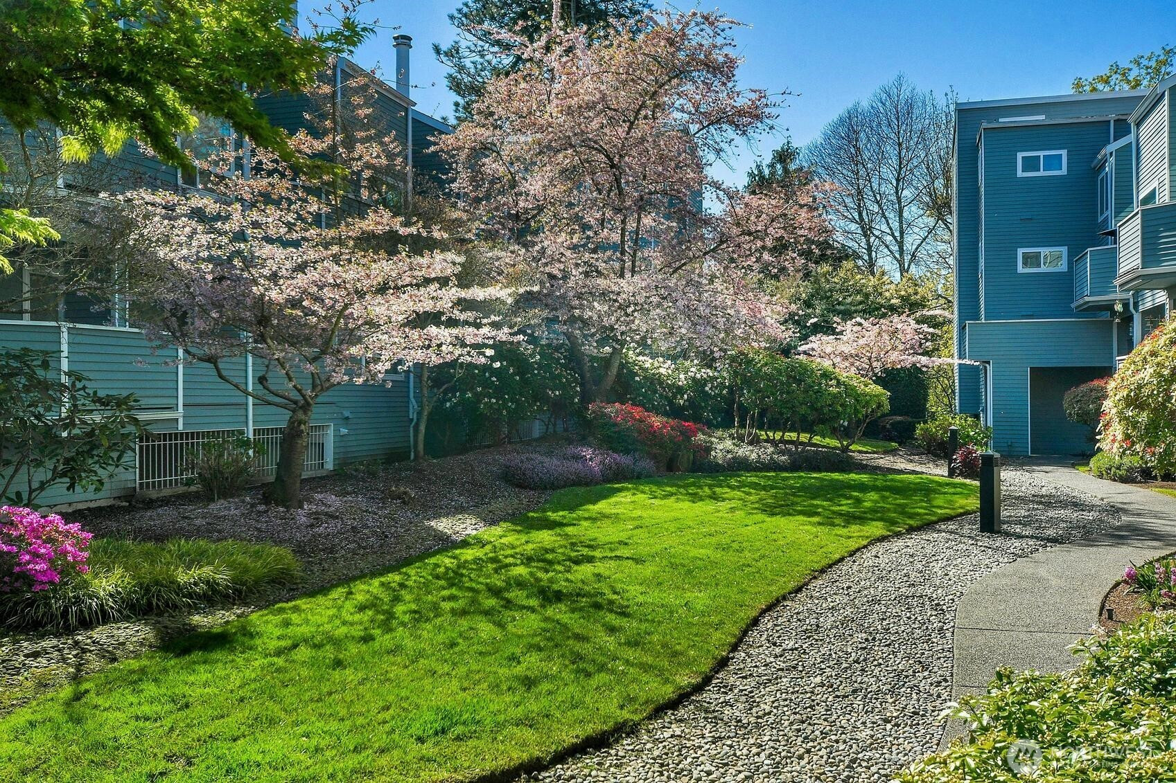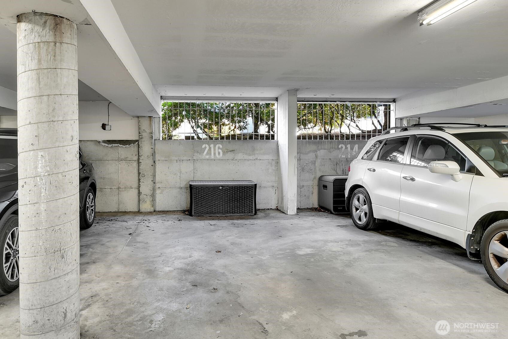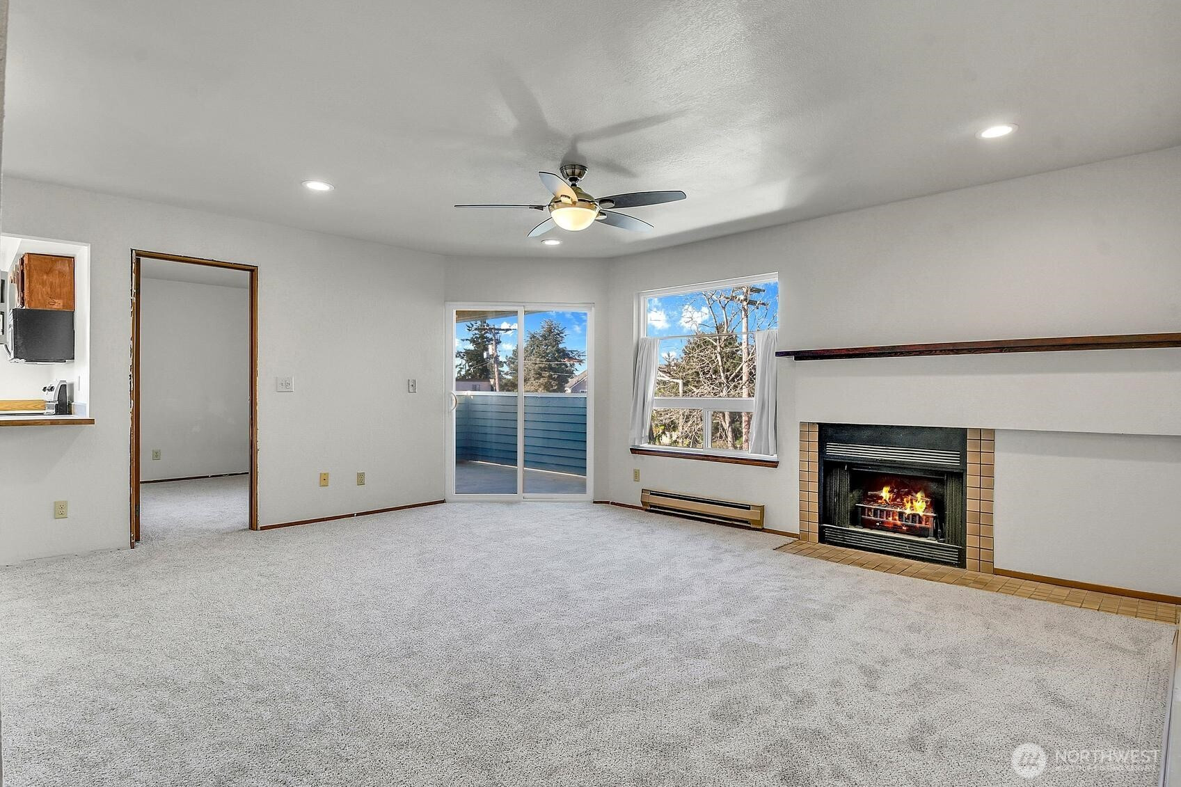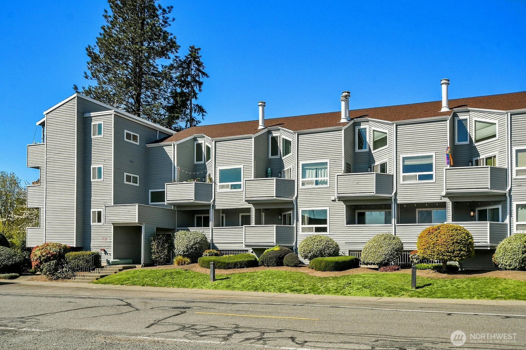 Corner unit. Well-designed condominium with lots of natural light, ready for your updates. This home features the kitchen opening into spacious dining and living area, wood burning fireplace, two bedrooms (1 with no closet), in unit laundry, and 2 external storage closets. New Carpet. Private covered balcony provides an ideal spot to relax and unwind. Secured entry building, with one parking space in controlled access garage, and additional parking on surface lot. Great walkable location, close to nearby restaurants, local shops, scenic waterfront park, and creek trail. This is low-maintenance living at its best in a truly desirable setting.