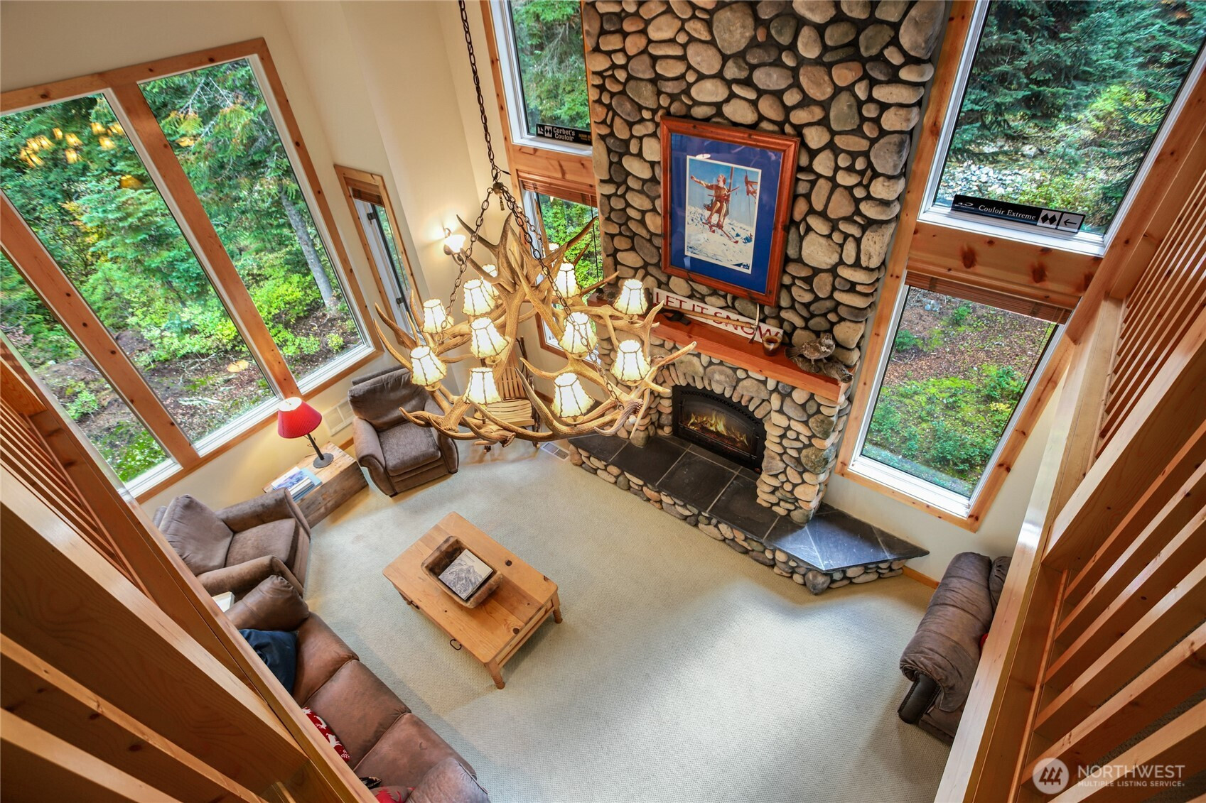 One of a kind riverfront Alpental Ski Chalet. Nestled below Guye Peak and tucked along the shores of the headwaters of the Snoqualmie River, this quintessential Alpental ski cabin sits on 1/2 acre and can be your primary residence, 2nd home or private ski lodge. Vaulted ceilings, 2 sleeping lofts, large open concept living area with room to entertain. Two living areas perfect for large get togethers and multiple groups. Summers will be filled with campfires on the river after exploring the hiking trails out your back yard. Winters you'll be steps from the slopes at Alpental, ski tour right out of your home or snowshoe out the back along the Snoqualmie River. Make memories in the mountains. Private Apré getting cozy by one of two fireplaces