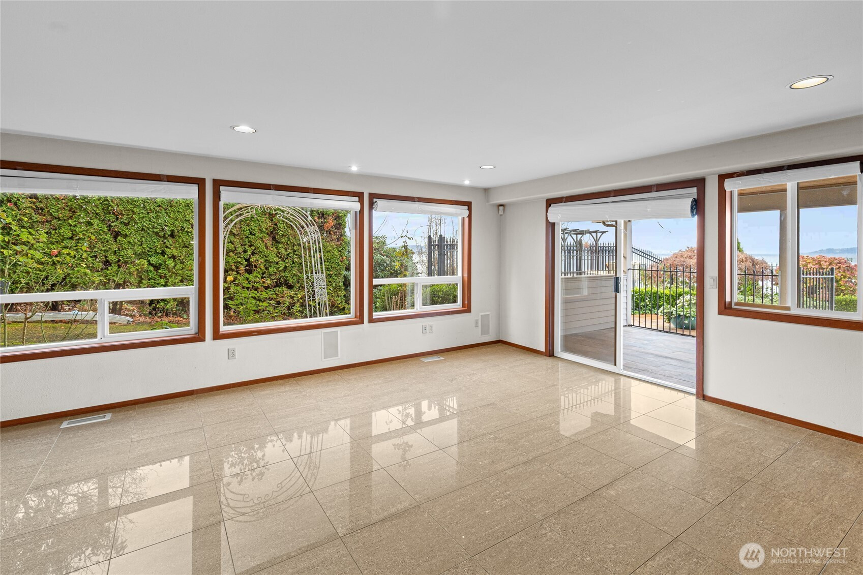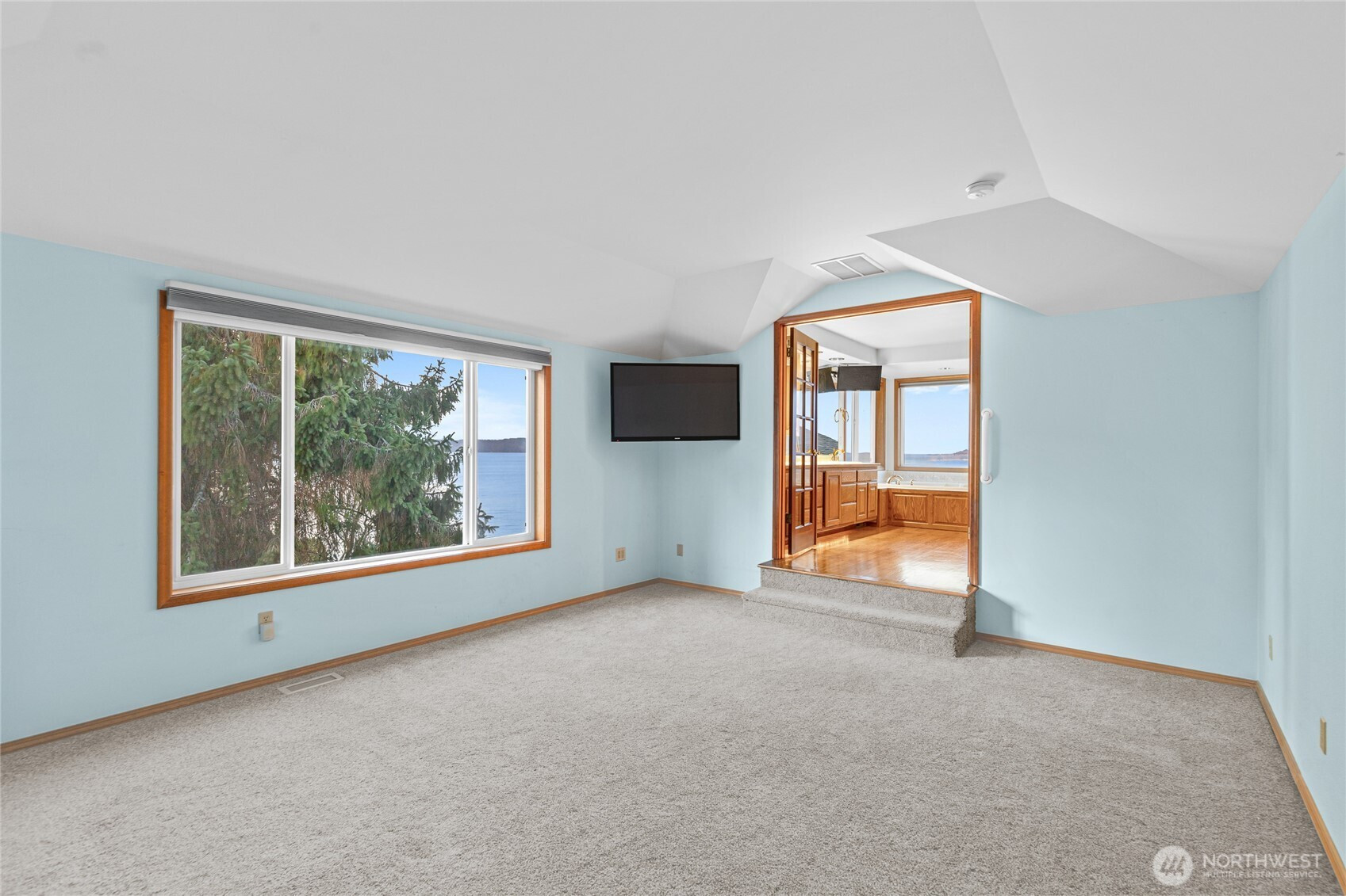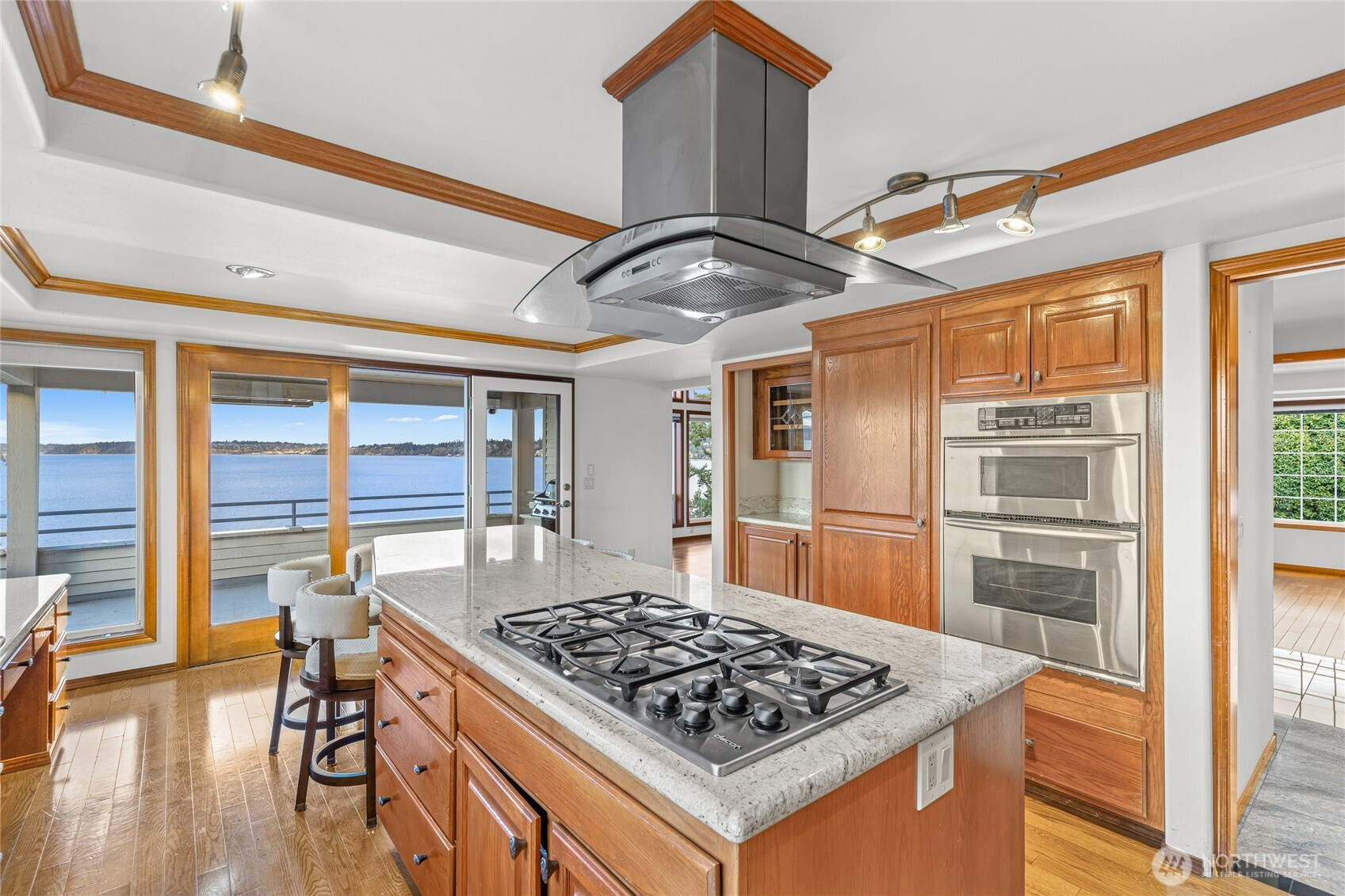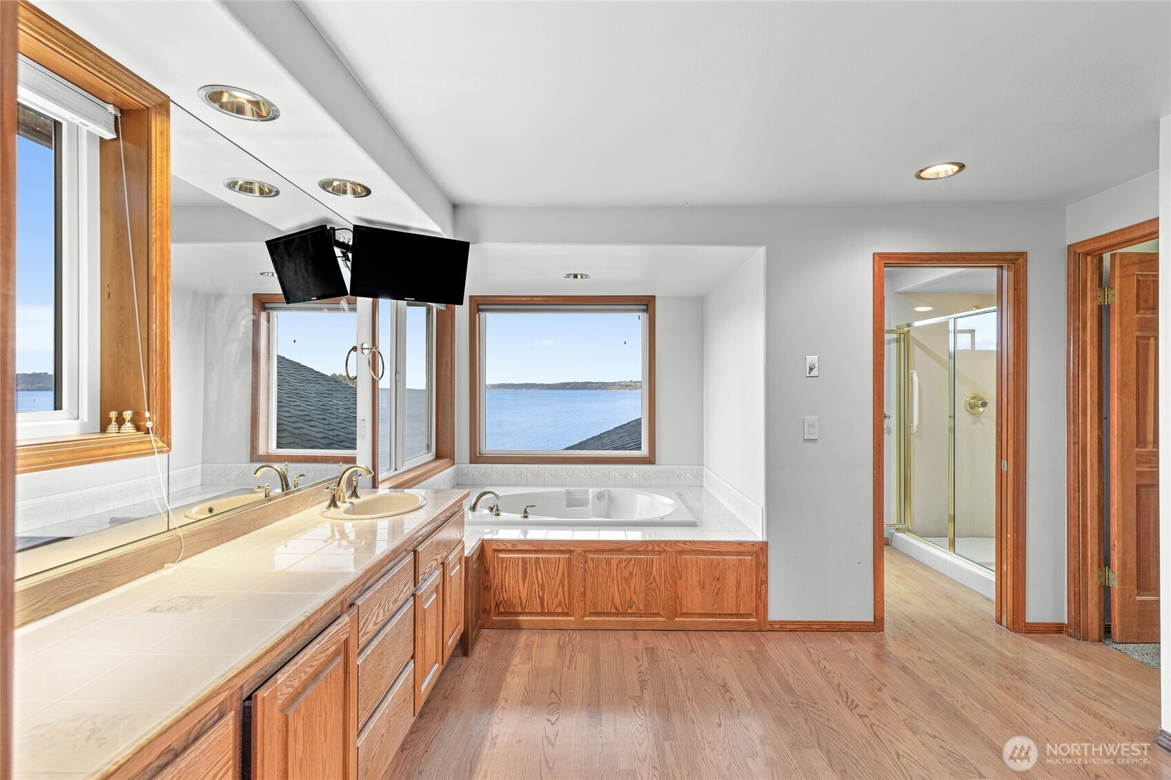 This stunning Redondo home features 50ft of prime waterfront with unobstructed of the Sound and mountains views. offering 5 bedrooms 3.5 baths, a dedicated office and a spacious great room. with two fireplaces on the main level. It blends luxury and comfort. The open floor plan highlights a chef's kitchen with a large island, perfect for entertaining. An in-home elevator provides effortless access to the upper level, completing this exceptional coastal life style property.