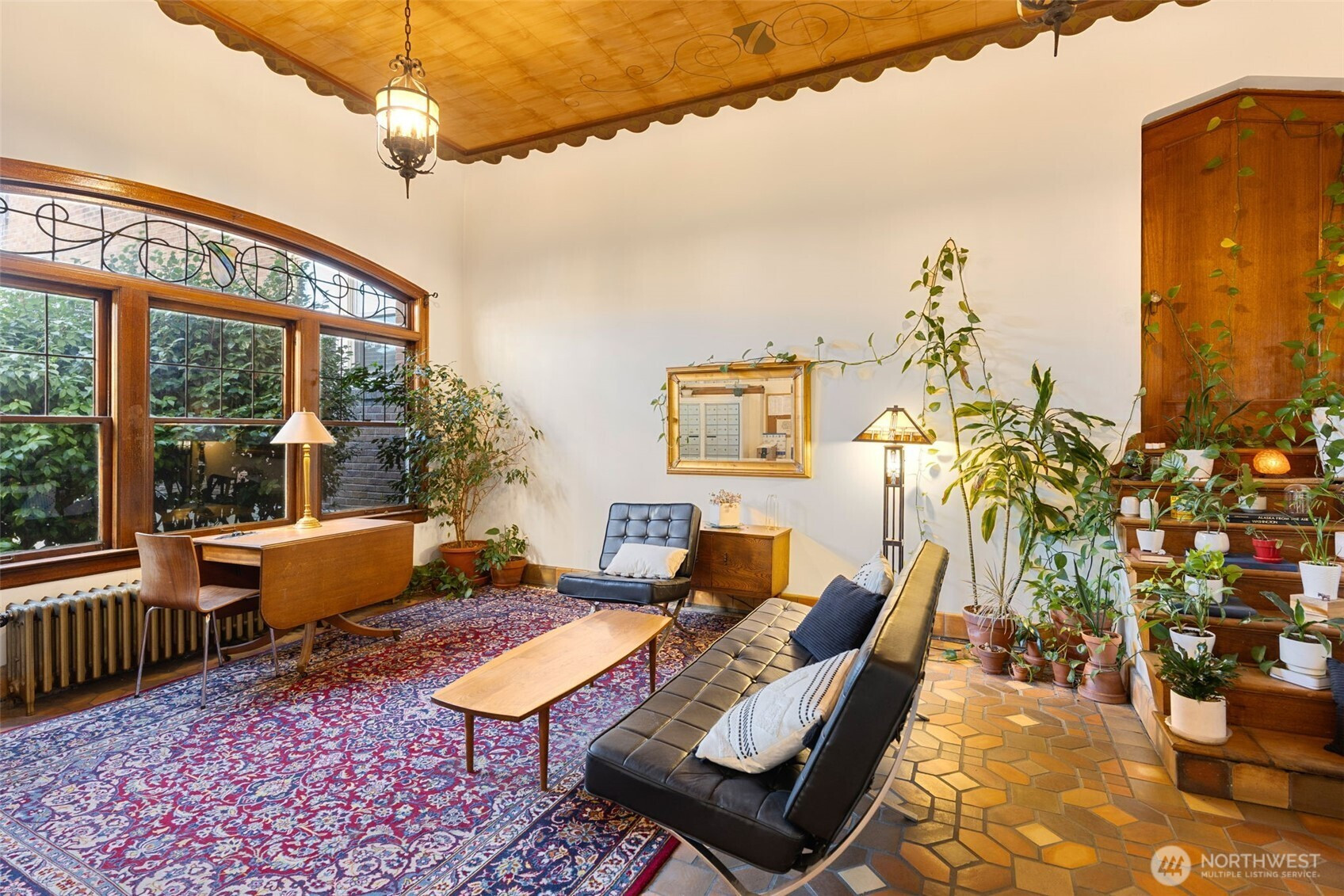 Perfect Pied-e-terre! Olympus Manor is a 1920’s Queen Anne classic. One floor from the lobby with easy access outside (few stairs), this cute studio is spacious and in a great location down a small hallway from the rest of the building. Light and bright with west facing windows. Coved ceilings highlight the period details throughout; Mahogany doors and trim, original hardwoods, charming crown molding and pretty finishes.. Formal entry gives nice separation and the wide living space allows multipurpose arrangement. Great storage with a huge walk-in closet and additional storage in the basement. Wonderful kitchen has dining space with windows, marble counters, cool vintage range, display glass cabinets and a walk-in pantry. Close to Seattle’s iconic landmarks, entertainment and sports, parks and recreation. HOA dues include all the extras; heat, maintenance, insurance and property tax. Laundry room in basement. Some pets allowed, rentals by exception, and a great well organized group of owners make this an excellent place to call home.
