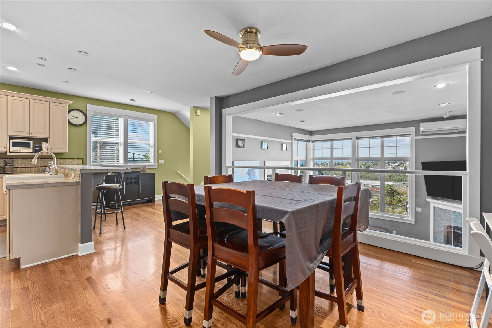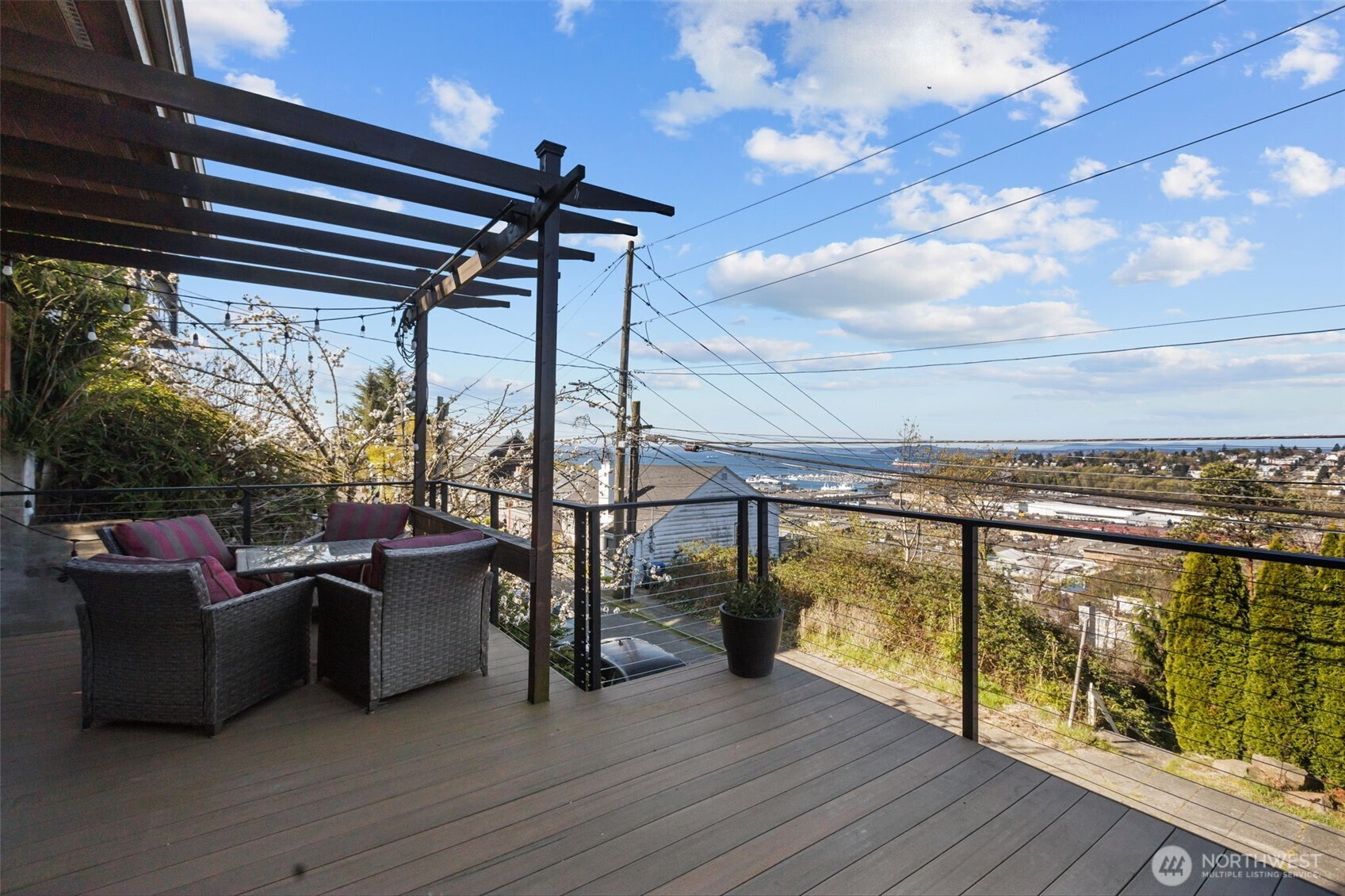 Perched in Queen Anne with sweeping views of Elliott Bay and the Olympic Mountains, this 3-bedroom, 3.25-bath townhome captures stunning sunsets from every room. Built in 2006 and spanning 2,100 square feet, the home blends comfort, style, and thoughtful updates in one of Seattle’s most sought-after neighborhoods. The kitchen is both elegant and functional, featuring marble countertops, stainless steel appliances, and an inviting eat-in area. The living room offers a warm, welcoming atmosphere with a gas fireplace, while the spacious primary suite is a true retreat with its private deck and luxurious 5-piece bath with soaking tub. Designed for enjoying the scenery year-round, the home offers multiple view decks, including a newly improved composite deck with new railings. Recent upgrades such as ductless mini splits and EV charging add modern convenience. Complete with a 2-car garage, this residence is just a stone’s throw from Queen Anne’s favorite restaurants, shops, and neighborhood amenities, with easy access to Seattle Center, downtown Seattle, and all the best the city has to offer.